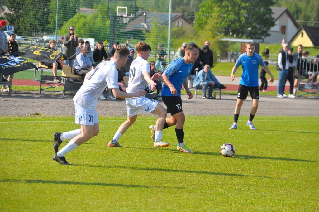 “Dienvidkurzemes SS” futbolisti maču iesāka lieliski, savā pirmajā uzbrukumā gūstot vārtos. Pirmajā minūtē Jānis Freimanis bija precīzs – 1:0. Viesi neizšķirtu panāca 25. minūtē, kad vārtus guva Niklāvs Treimanis. 70. minūtē “Leevon PPK” vienībai uzvaras vārtus guva Gabriels Kirkils.