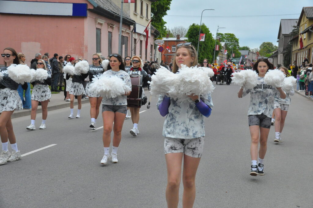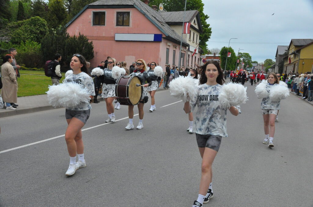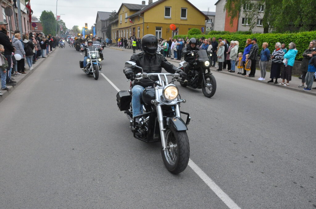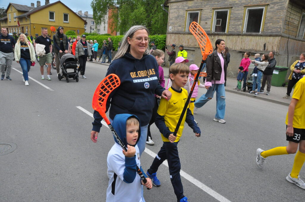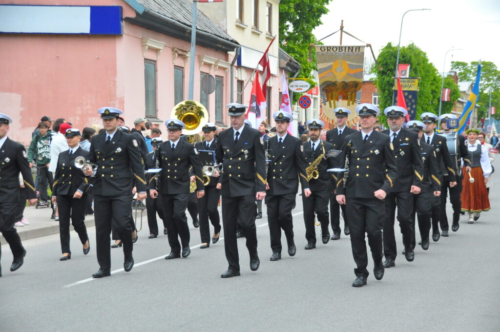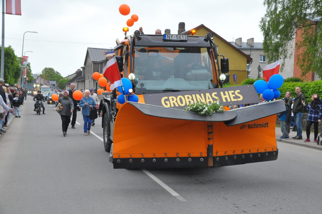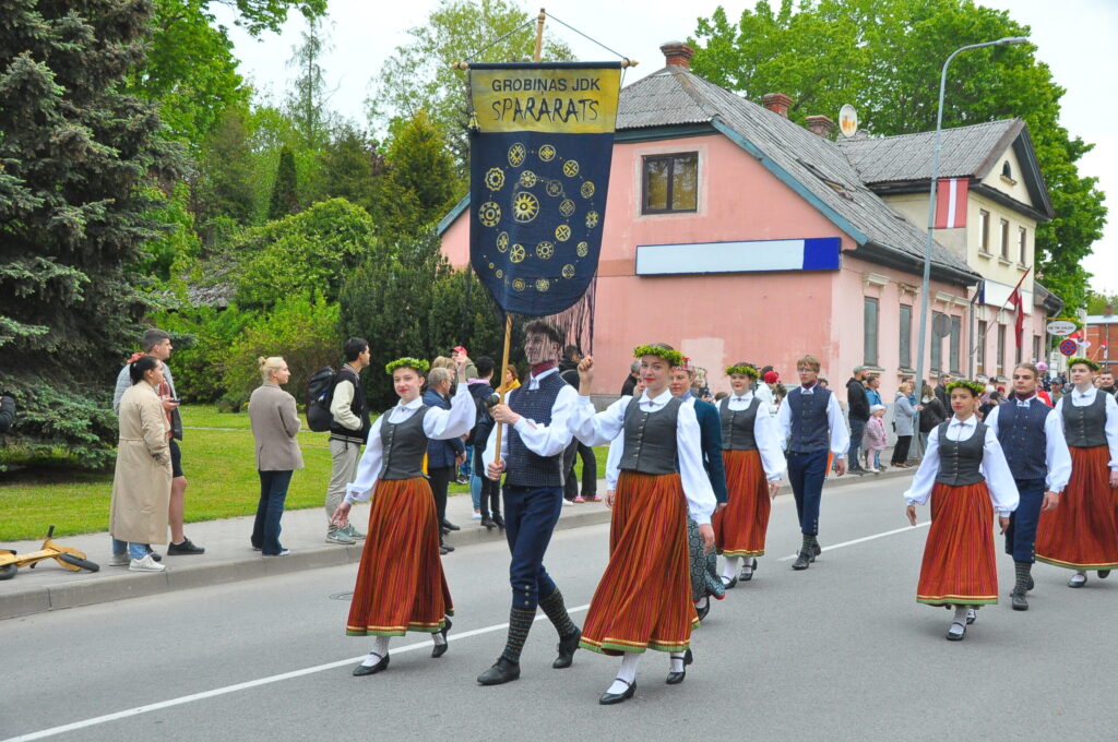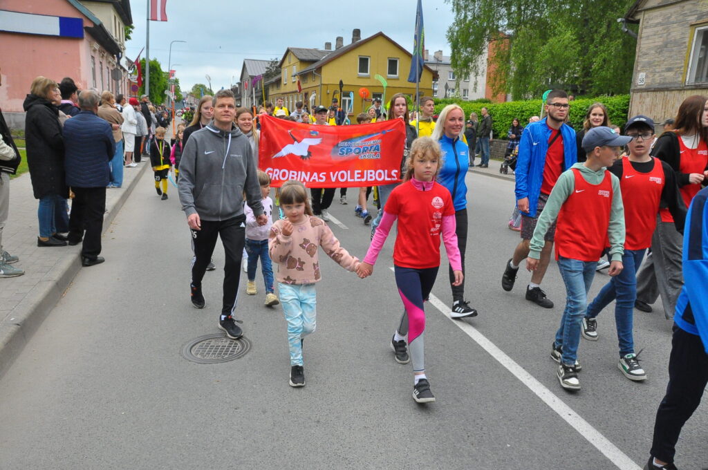 Grobiņas pilsētas svētku gājienā devās gan grobiņnieki, gan pilsētas viesi, dodoties no stadiona līdz pilsdrupām, kur pēc tam uzstājās “Queentessence” un Rihards Saule.