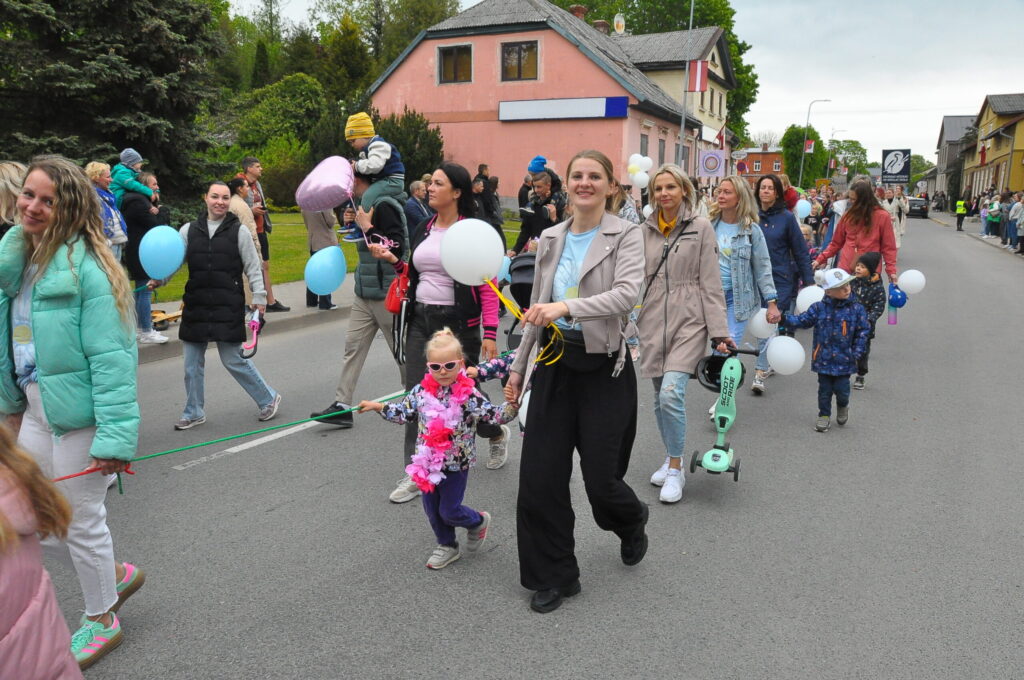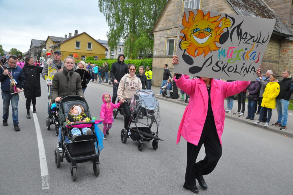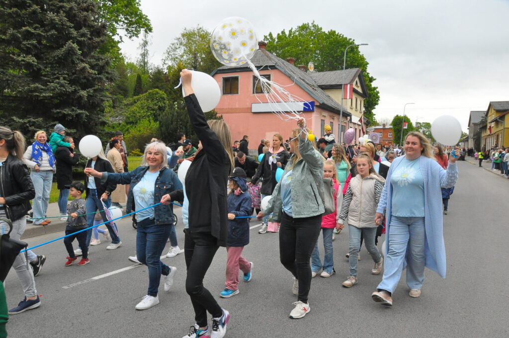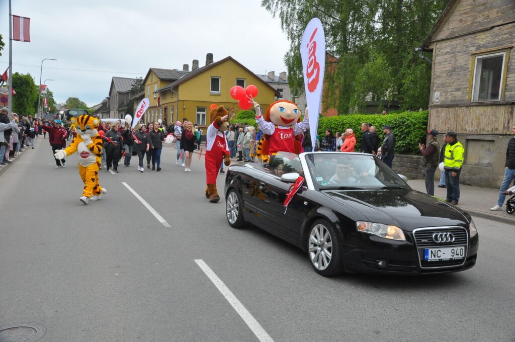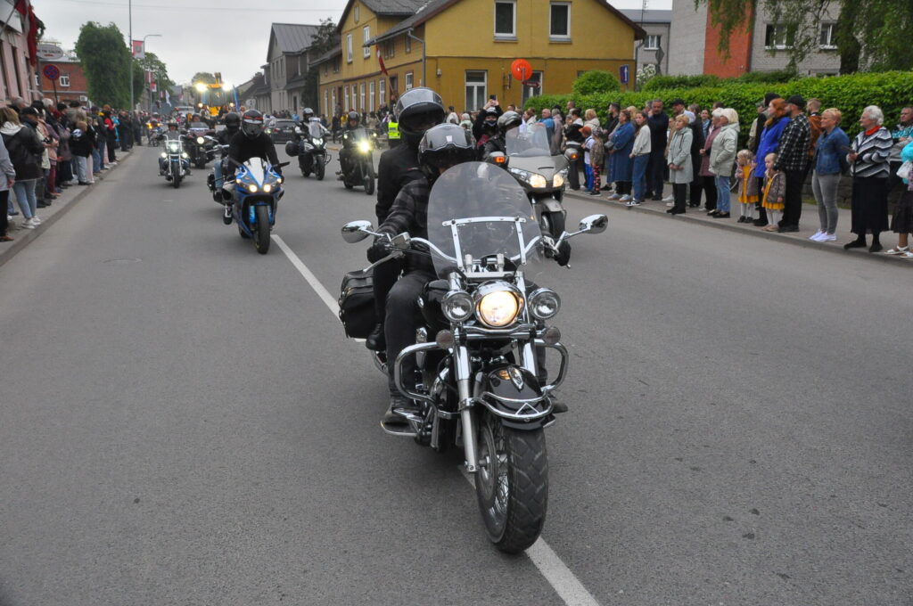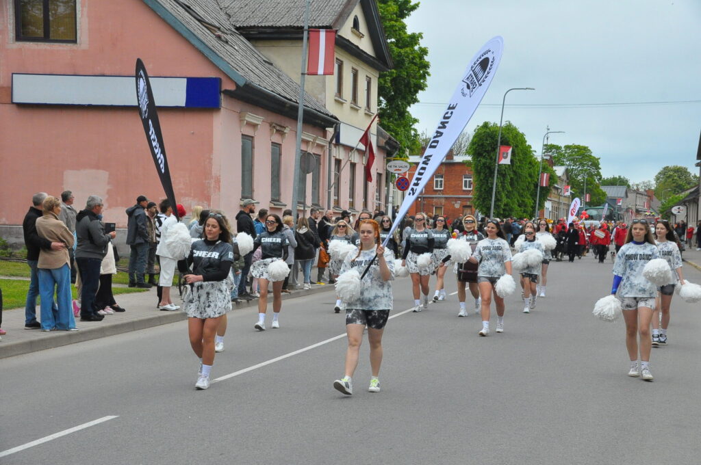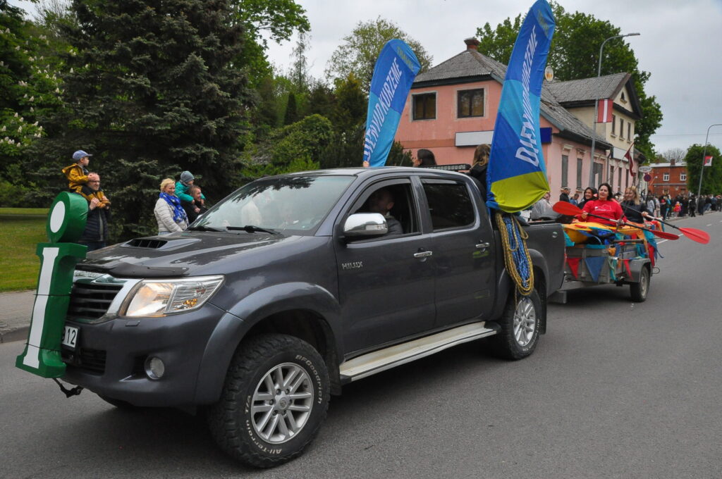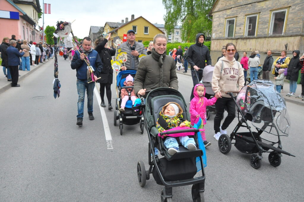 Grobiņas pilsētas svētku gājienā devās gan grobiņnieki, gan pilsētas viesi, dodoties no stadiona līdz pilsdrupām, kur pēc tam uzstājās “Queentessence” un Rihards Saule.