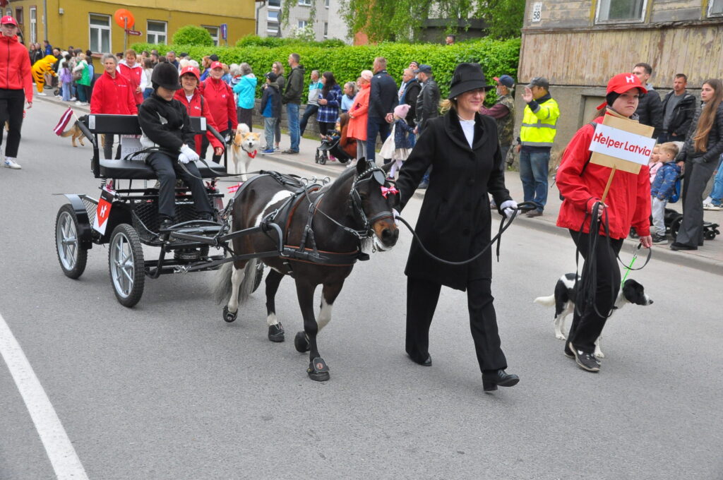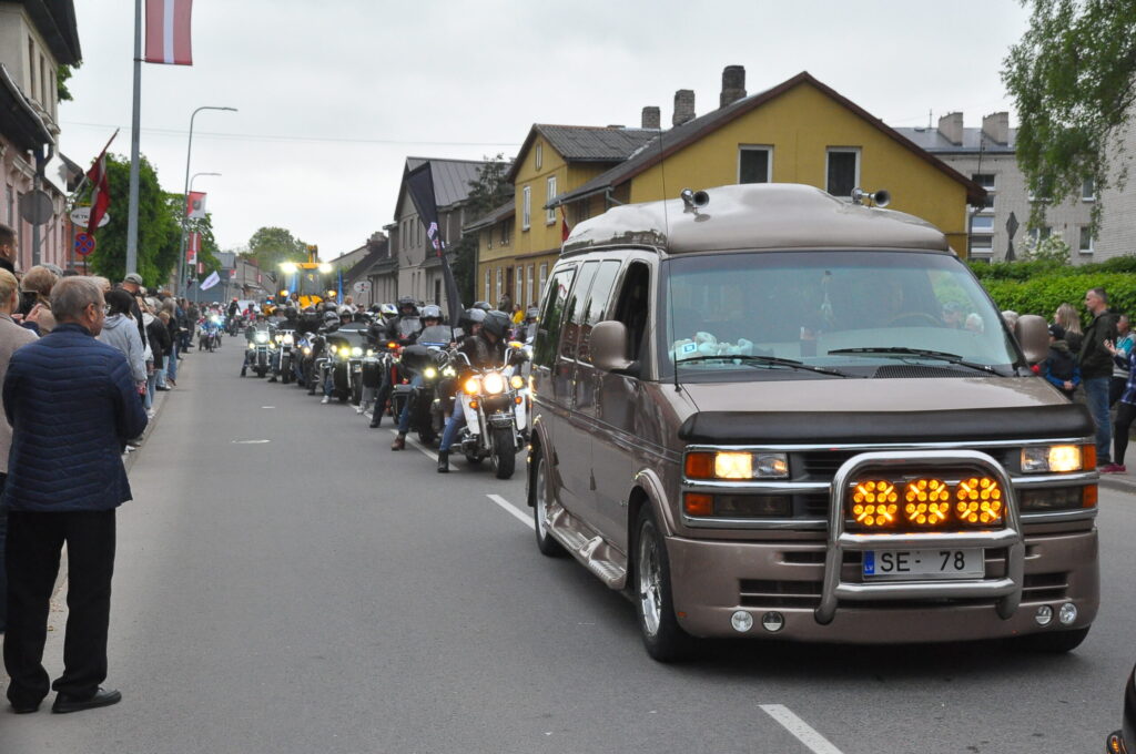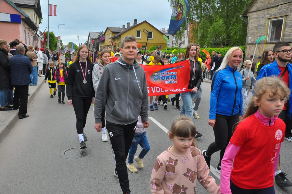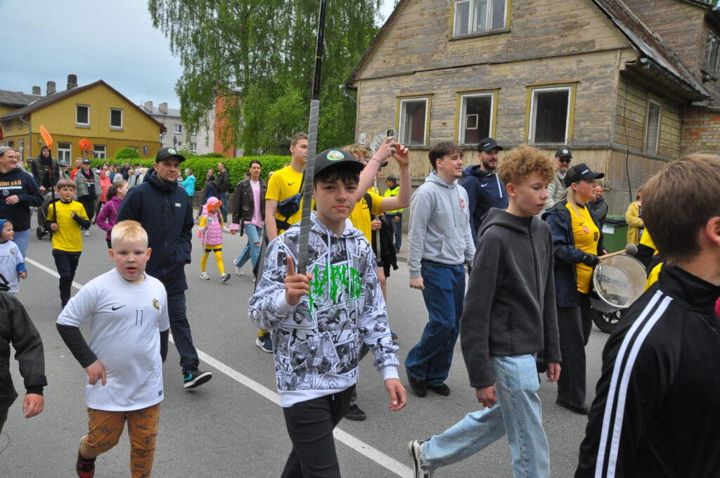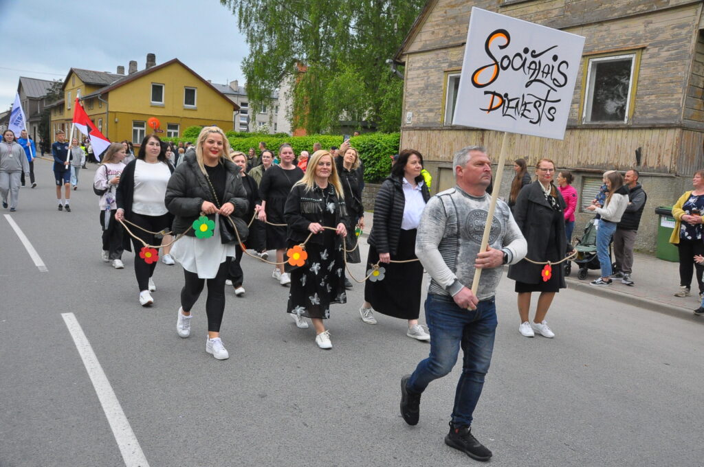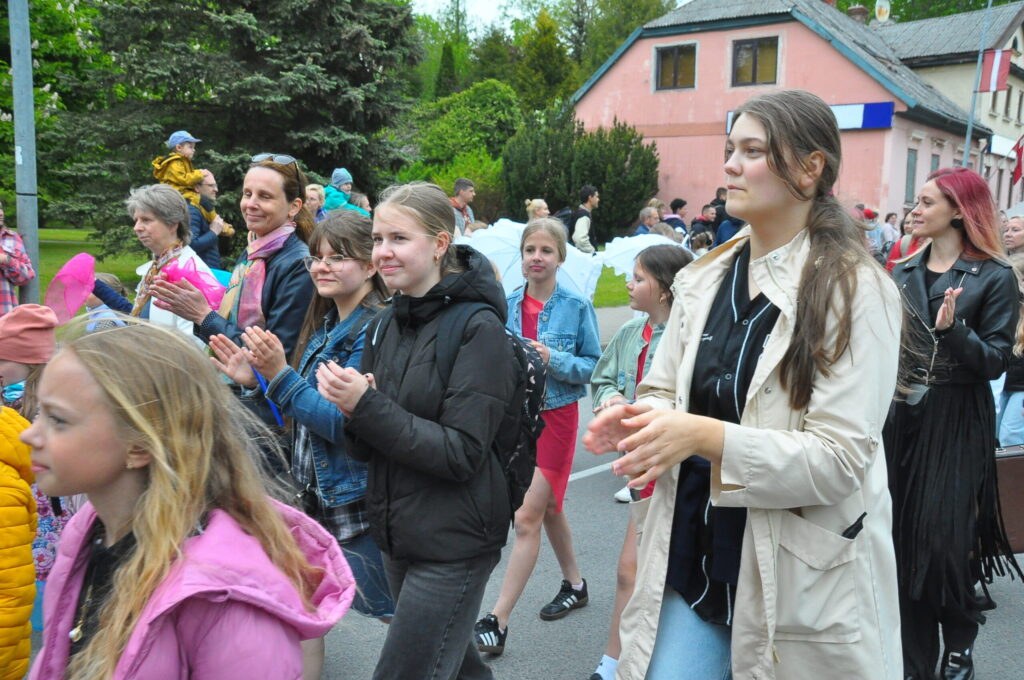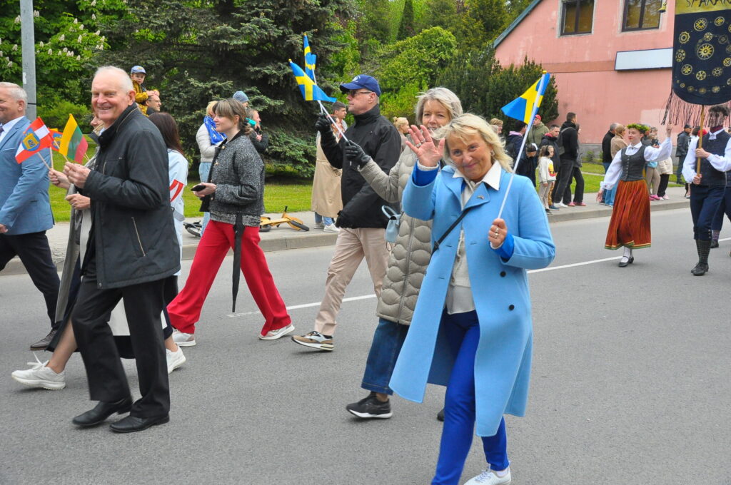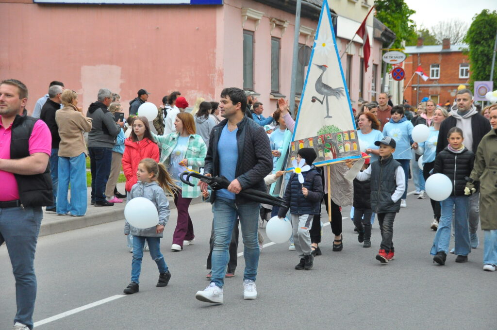 Grobiņas pilsētas svētku gājienā devās gan grobiņnieki, gan pilsētas viesi, dodoties no stadiona līdz pilsdrupām, kur pēc tam uzstājās “Queentessence” un Rihards Saule.