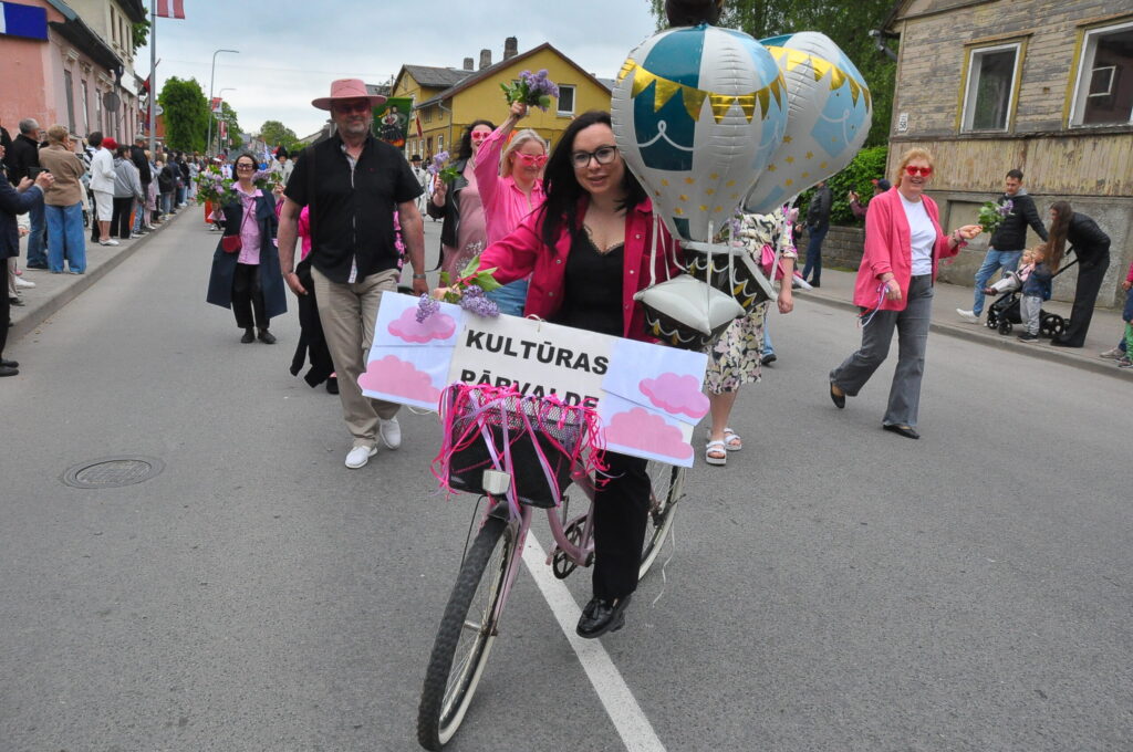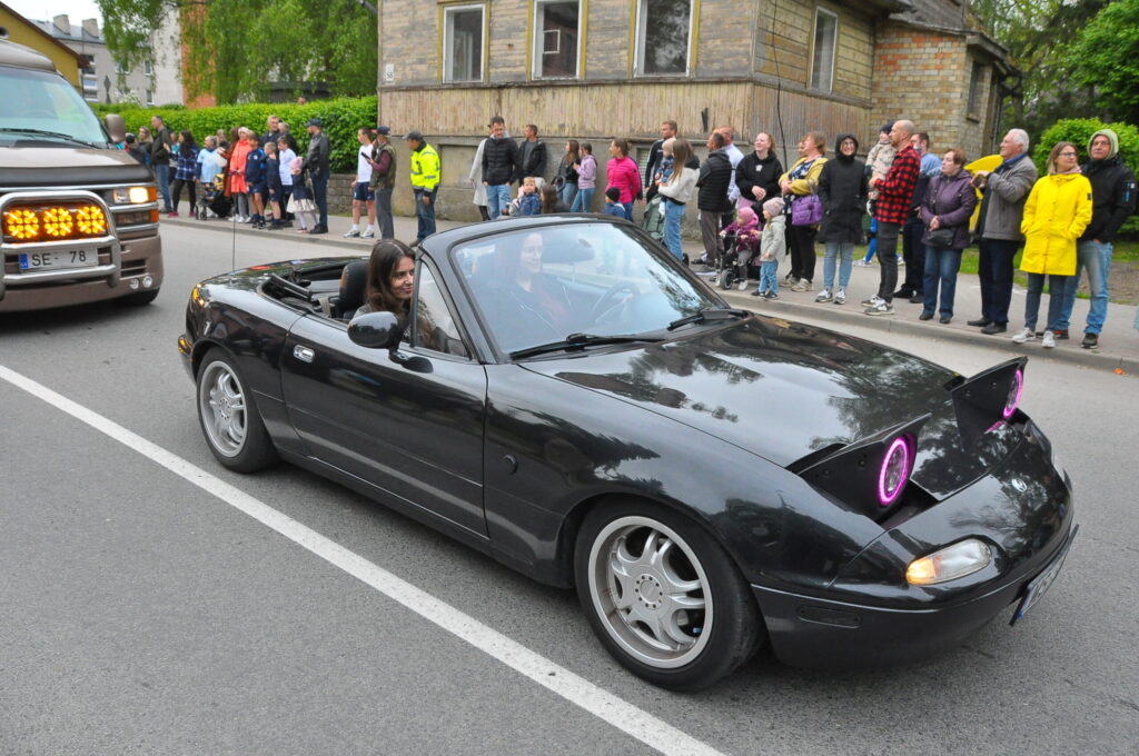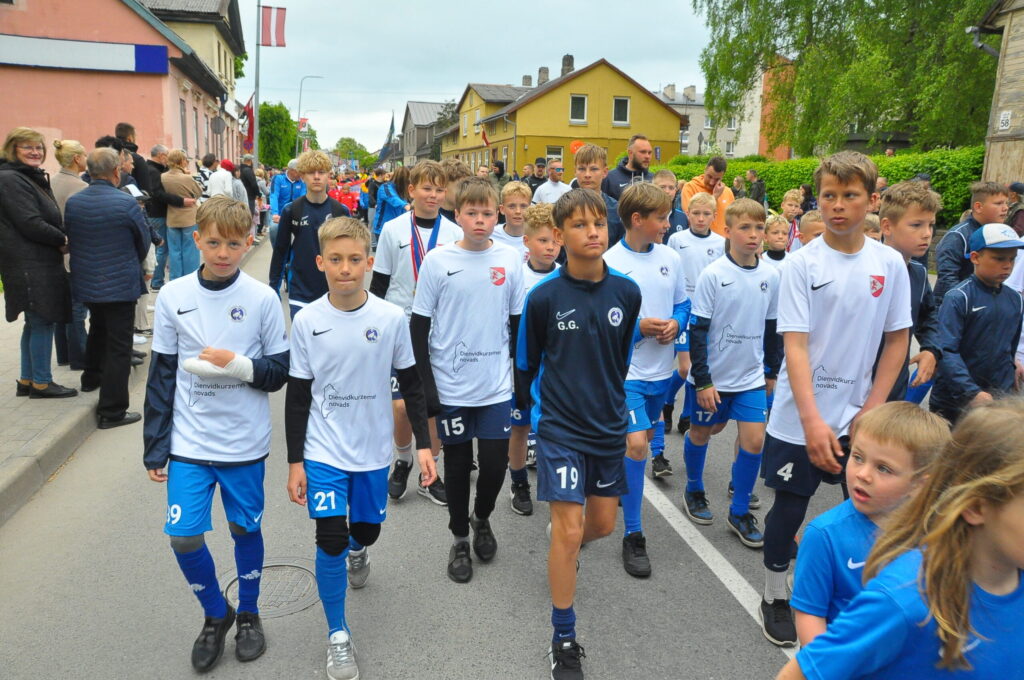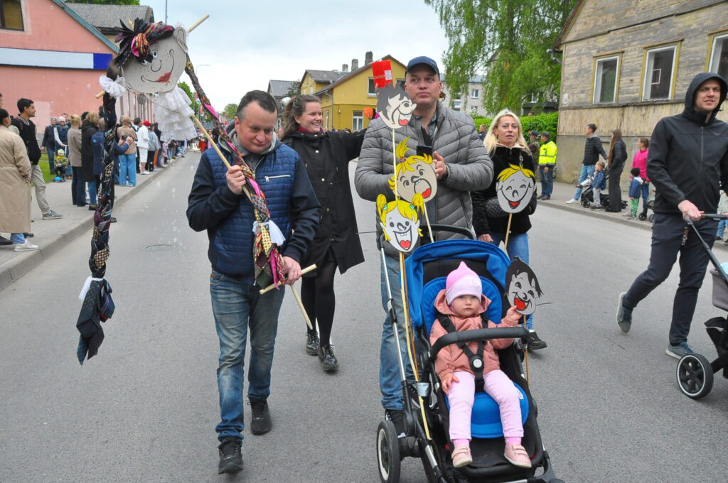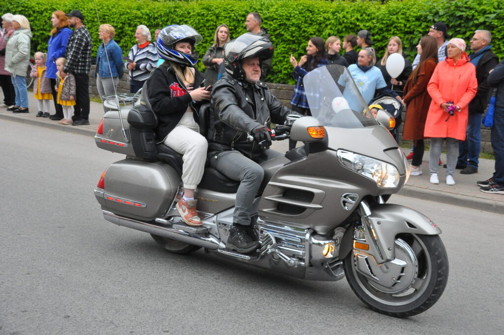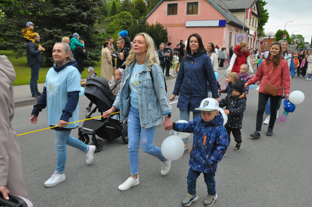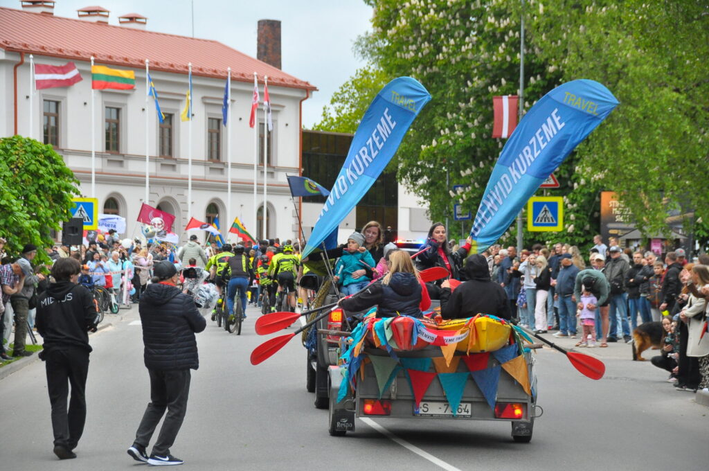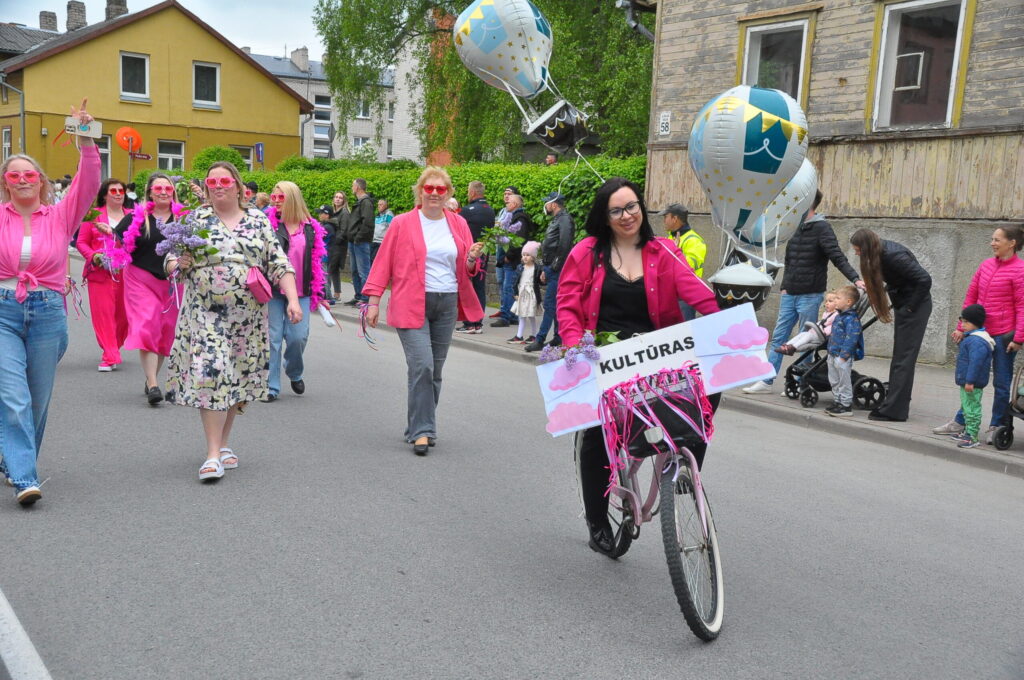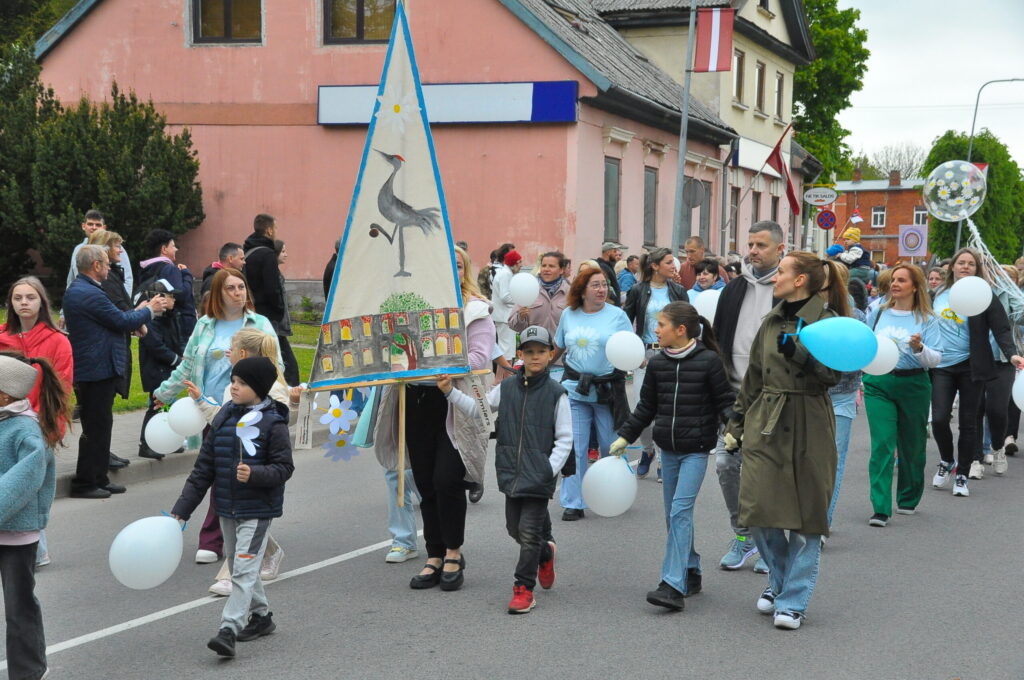 Grobiņas pilsētas svētku gājienā devās gan grobiņnieki, gan pilsētas viesi, dodoties no stadiona līdz pilsdrupām, kur pēc tam uzstājās “Queentessence” un Rihards Saule.