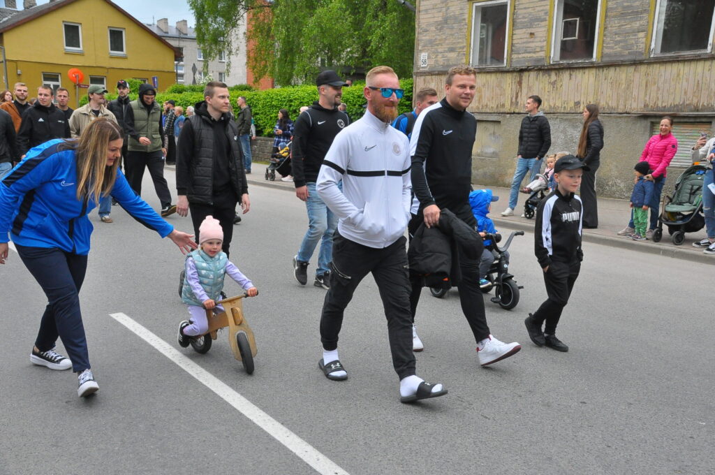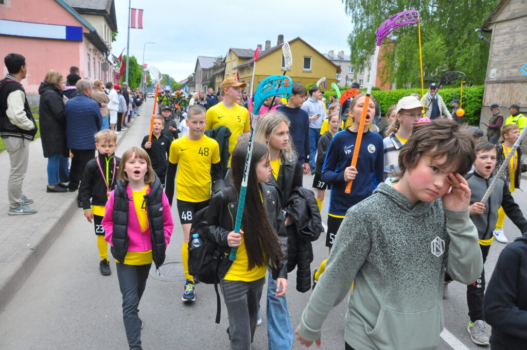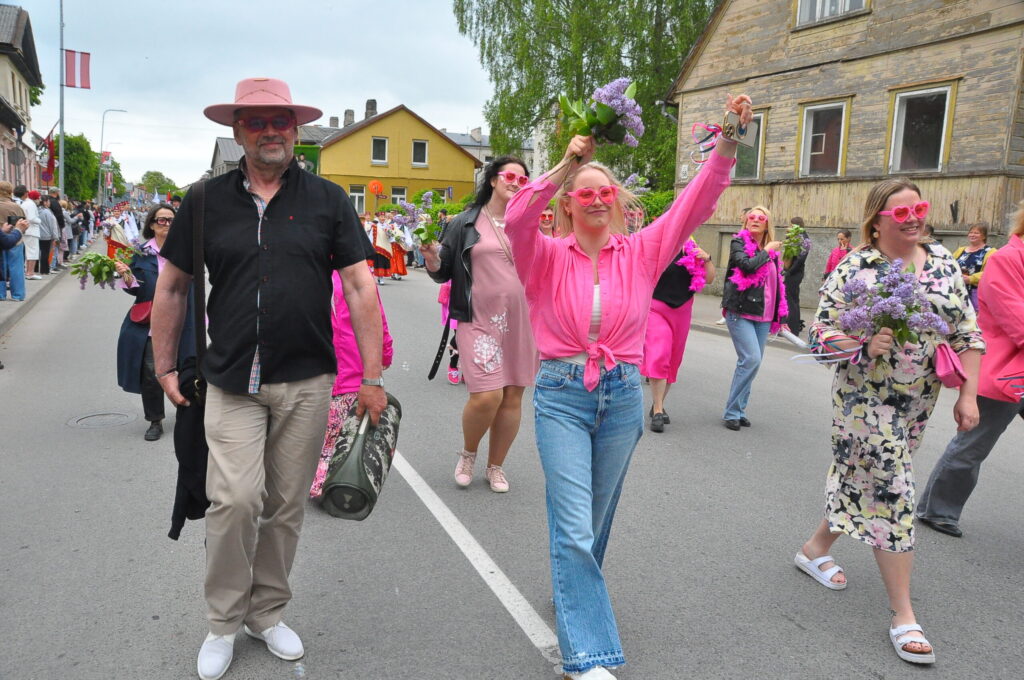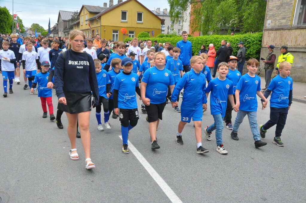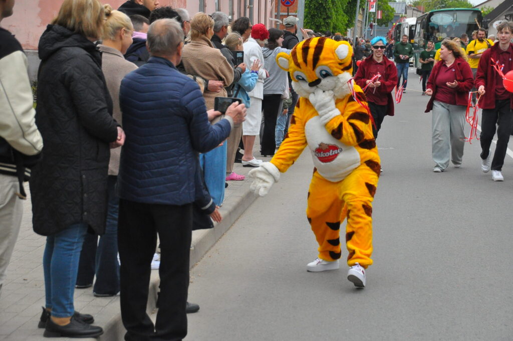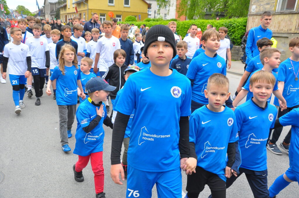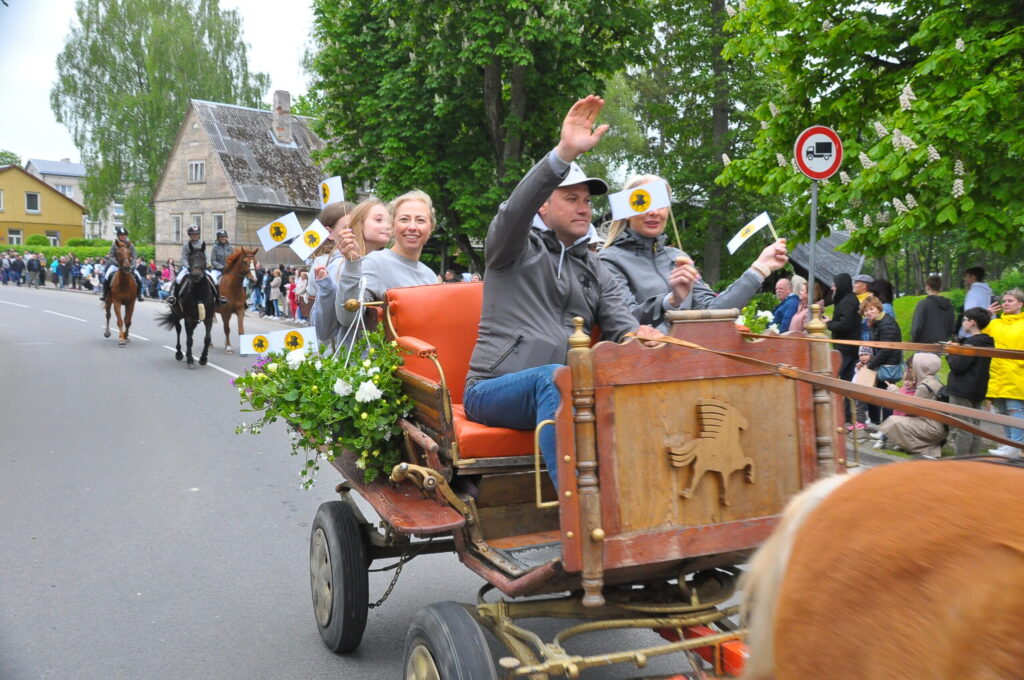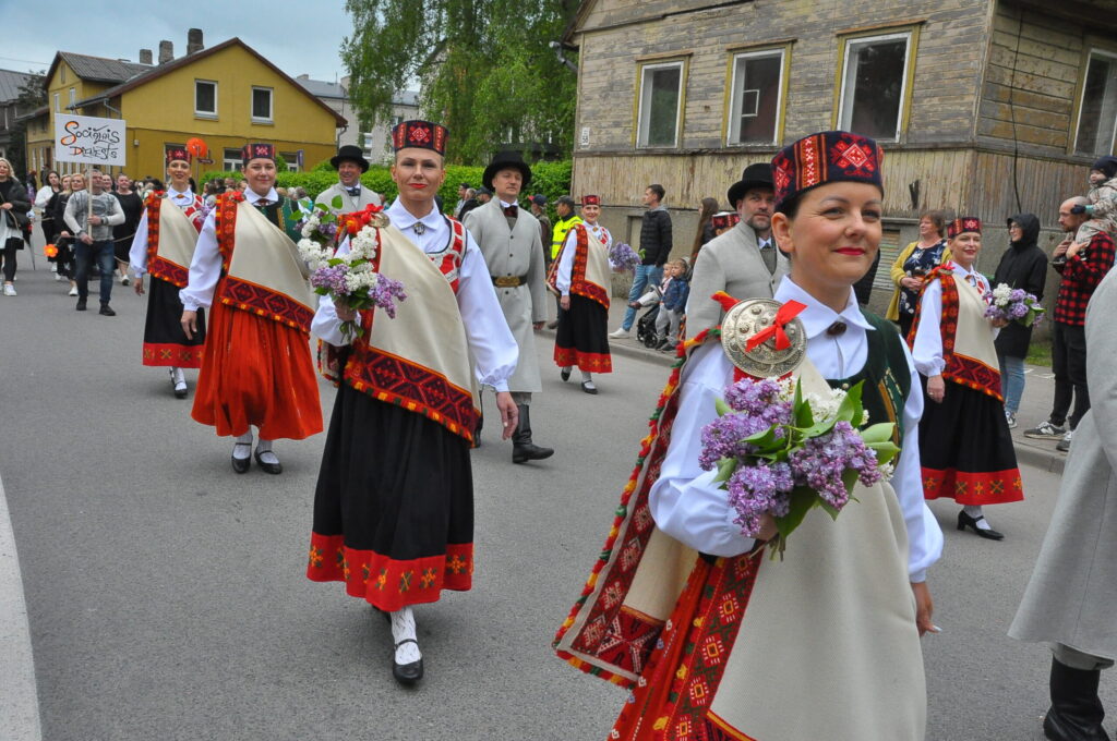 Grobiņas pilsētas svētku gājienā devās gan grobiņnieki, gan pilsētas viesi, dodoties no stadiona līdz pilsdrupām, kur pēc tam uzstājās “Queentessence” un Rihards Saule.