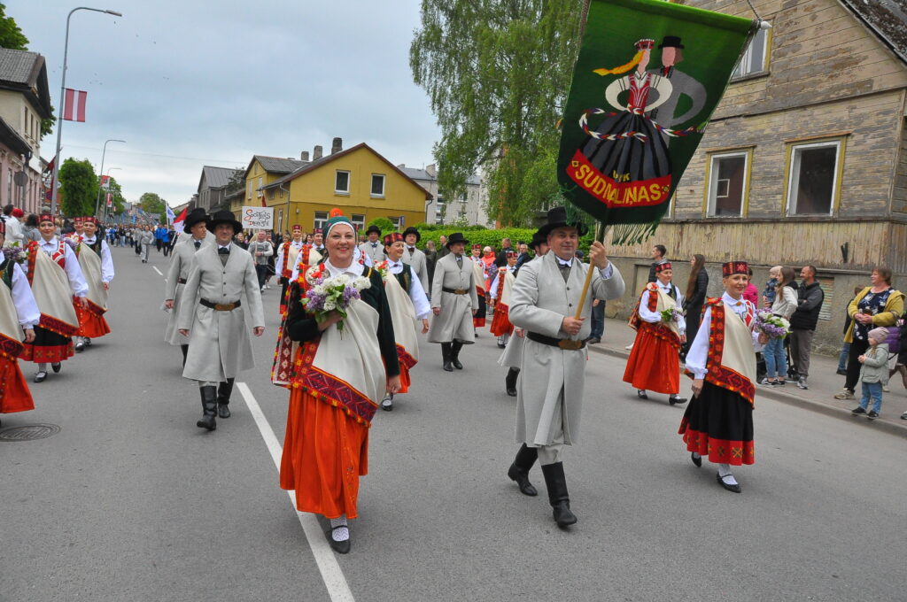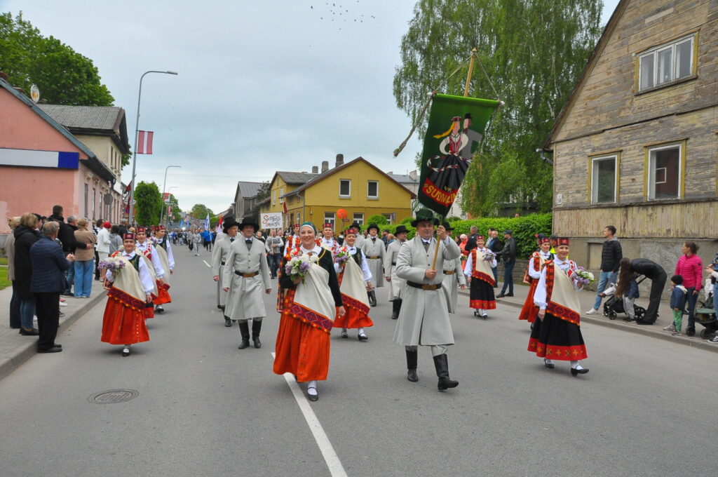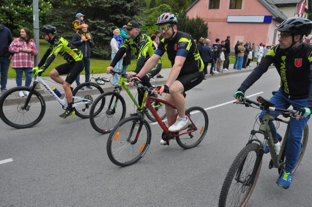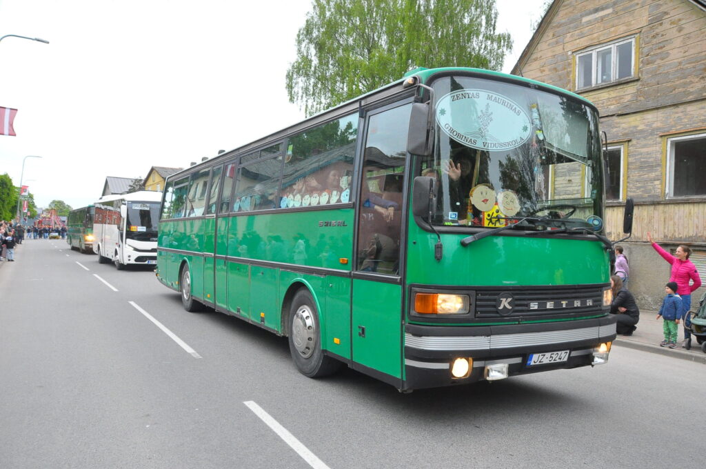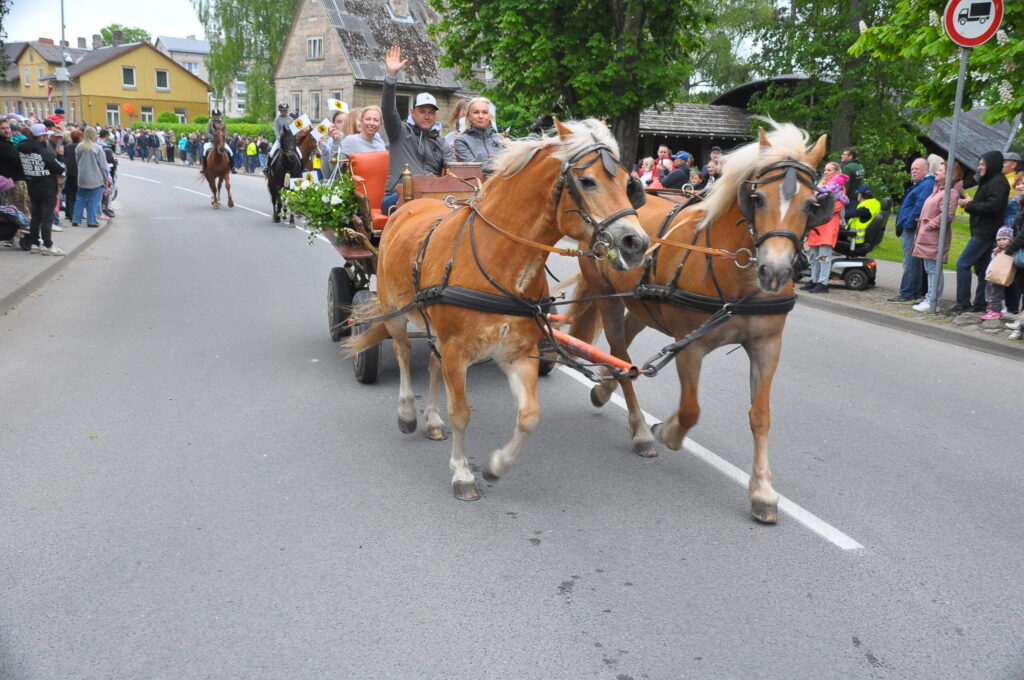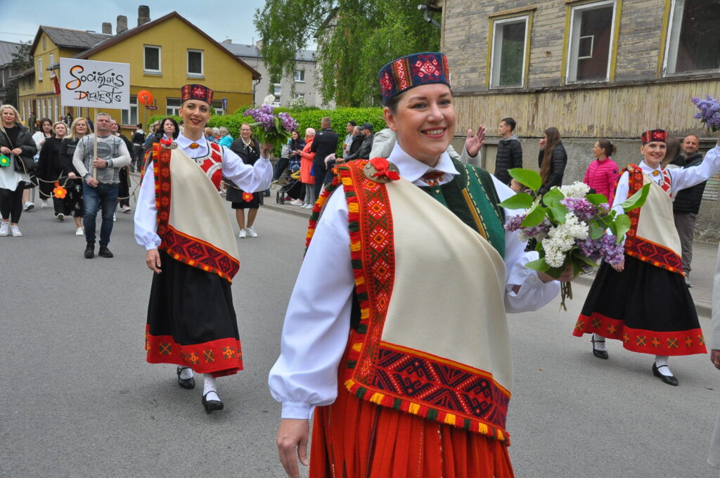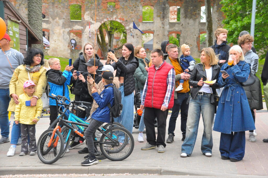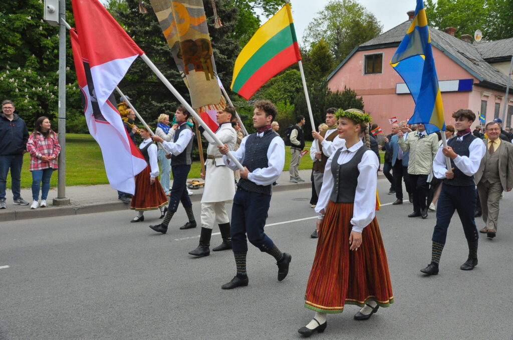 Grobiņas pilsētas svētku gājienā devās gan grobiņnieki, gan pilsētas viesi, dodoties no stadiona līdz pilsdrupām, kur pēc tam uzstājās “Queentessence” un Rihards Saule.