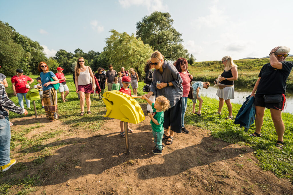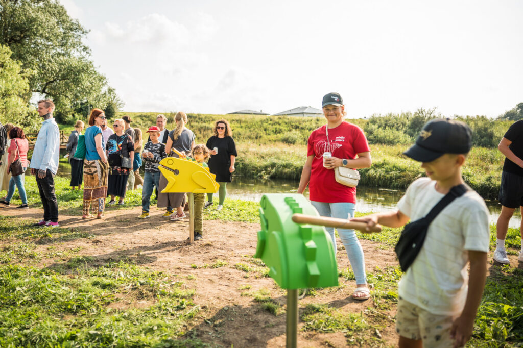 FOTO: "Liepāja 2027" Grobiņā pie Ālandes upes atklāj jaunu mākslas taku