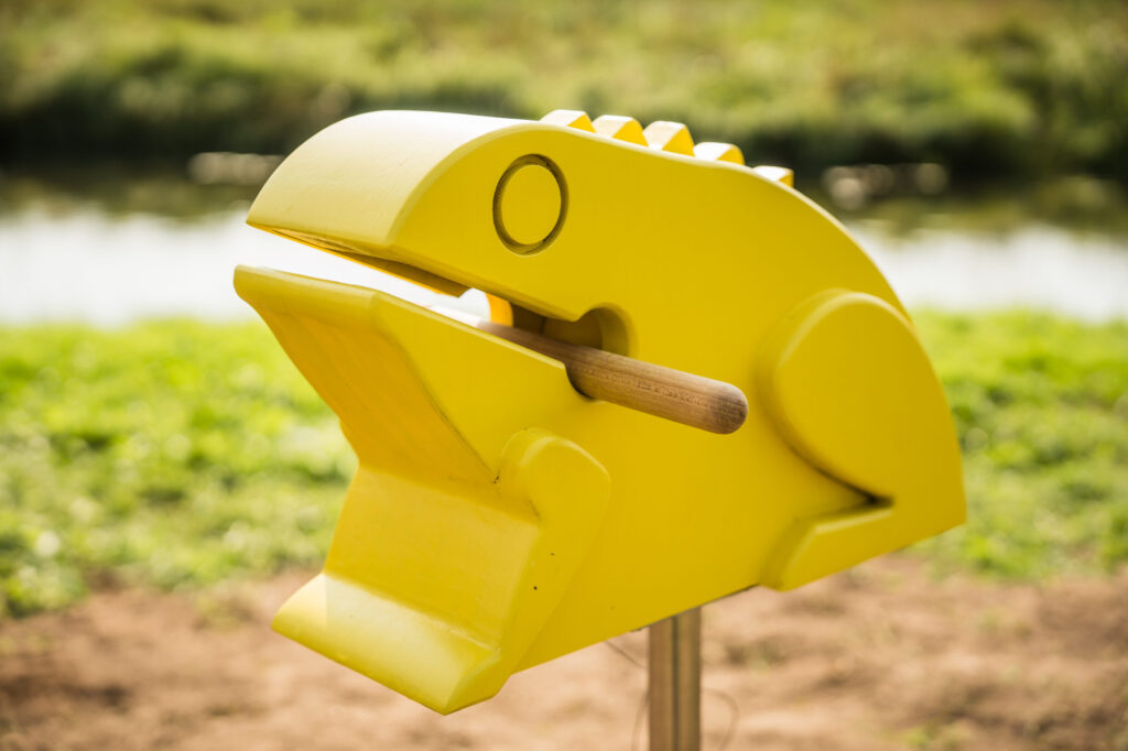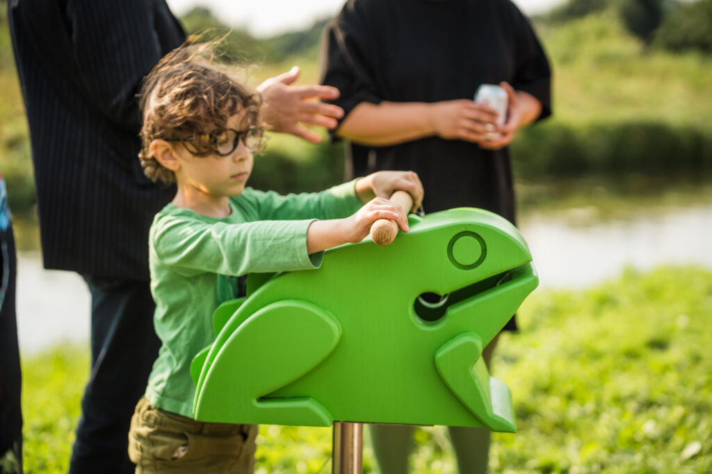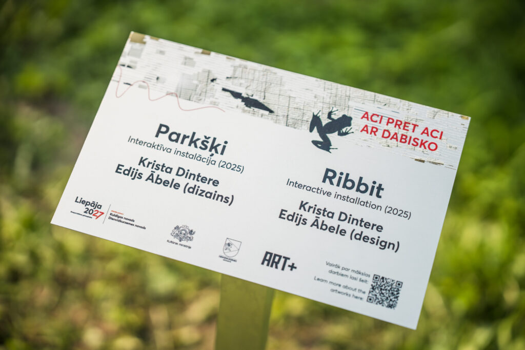 Mākslinieces Kristas Dinteres interaktīvais darbs “Parkšķi” iedzīvina Kurzemes dabas skaņu pasauli – apmeklētāji varēs spēlēt īpaši veidotus instrumentus, kas imitē aizsargājamās austrumu kokvardes dziesmas. Instalācija aicina klausīties kokvaržu koros un iesaistīties ritmiskā dialogā ar šo reto sugu. Daba, skaņa un līdzdalība saplūst vienotā mākslas un vides piedzīvojumā.