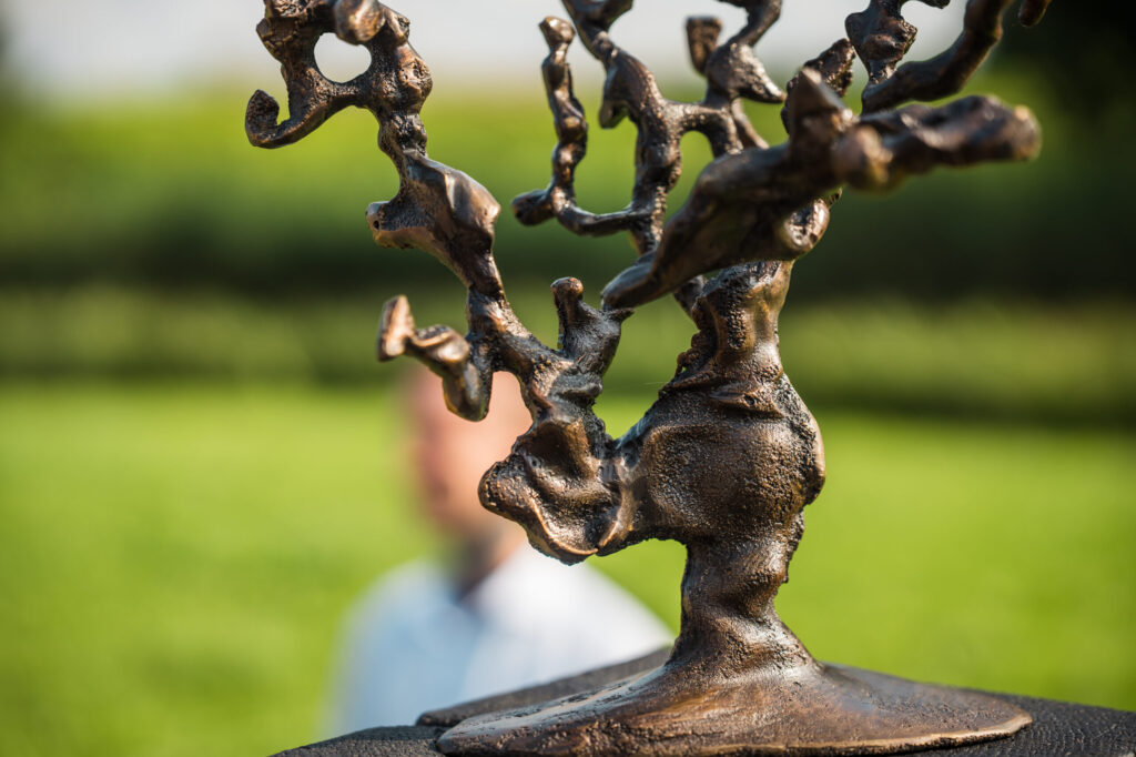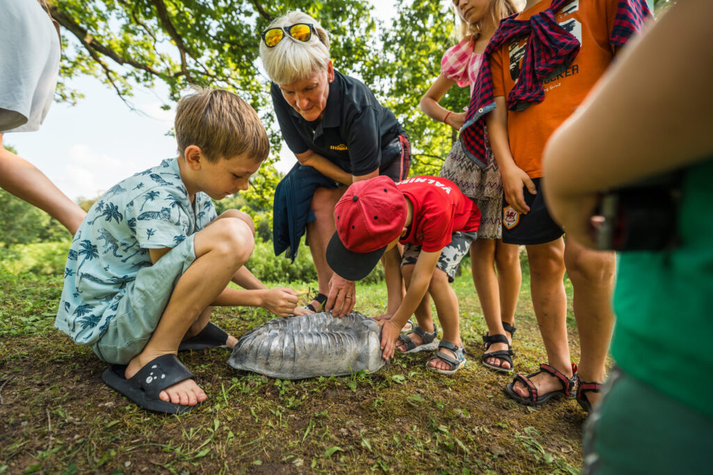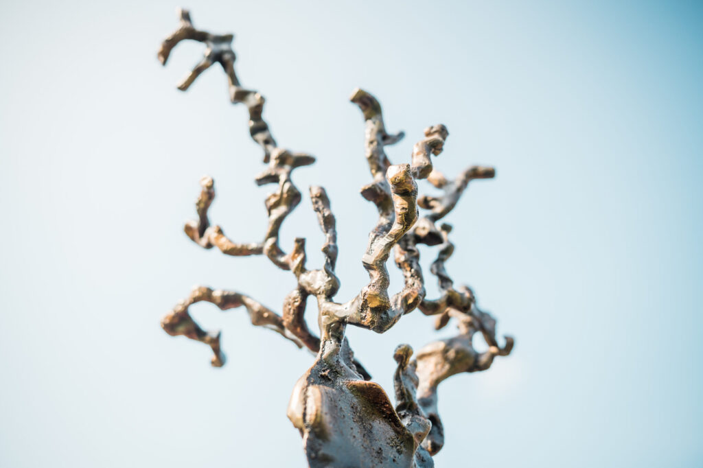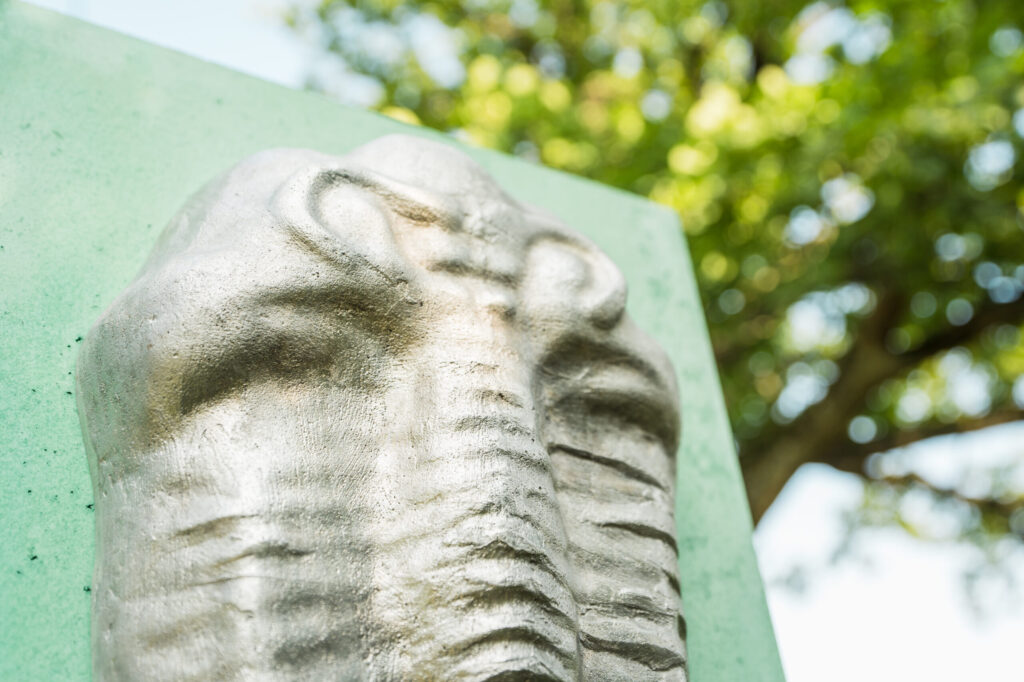 Ievas Vieses vairāku mediju instalācija “Trialitāte” ar čugunā lietiem trilobītiem – sen izmirušiem jūras posmkājiem – simboliski “ievieto” senatni mūsdienu ainavā. Darbs reflektē par kustību, laika slāņiem un trešo skatījuma plakni – kā saikni starp cilvēku, vidi un līdz šim nezināmo.