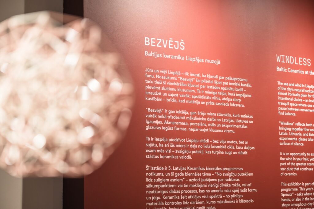 Piektdien, 12. septembrī, Liepājas muzejā (Kūrmājas prospektā 16/18) atklāta Baltijas keramikas izstāde “Bezvējš”, kas ir 5. Latvijas Keramikas biennāles noslēdzošais notikums un piedāvā skatītājiem vairāk nekā trīsdesmit mākslinieku darbus no Latvijas, Lietuvas un Igaunijas.