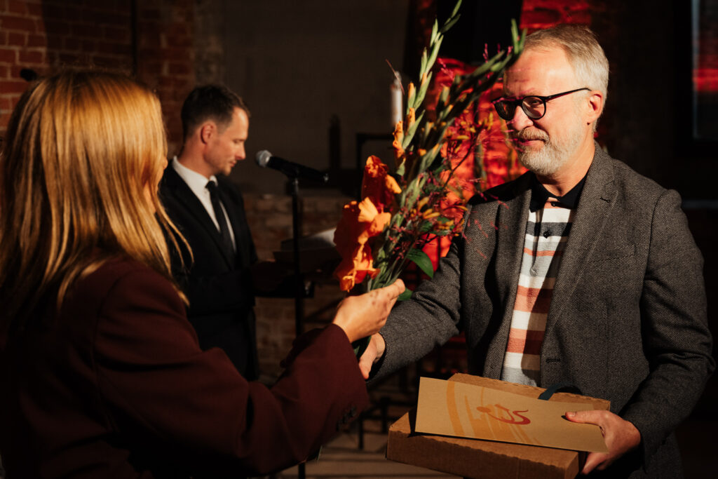 “Manā un Egona Līva dzīvē ir kopīgi trīs gadi astoņdesmito nogalē. Kamēr es guvu pirmos iespaidus par šo pasauli, viņš, iespējams, gremdējās siltajās atmiņās par jūrnieka dzīvi un amata brāļiem. Nedz viņš, nedz es noteikti neiedomājāmies, ka mūsu ceļi kaut kad krustosies: es tolaik nedomāju, ka rakstīšu grāmatas, savukārt viņš noteikti neiztēlojās 21. gadsimta 20. gadu sabiedriskās pārmaiņas un to, cik dažādi un daudzveidīgi mēs kļūsim. Tādā ziņā stāstu krājumu “Flora un fauna” ir šķietami grūti savietot ar Egona Līva literāro un kultūras mantojumu, taču, manuprāt, ir gluži pretēji. Kā zinām, Egonam Līvam ļoti rūpēja kopiena, no kuras viņš bija cēlies un kas veidoja viņa identitāti un dzīves vidi. Arī “Flora un fauna” ir grāmata, kuras uzmanības centrā ir identitātes un to veidojošās kopienas, kas man gan ikdienas dzīvē, gan literatūrā interesē un rūp. Un te nu mēs esam – domās un darbos satikušies Liepājā. Jo mums rūp,” pateicās autore Elīna Kokareviča.