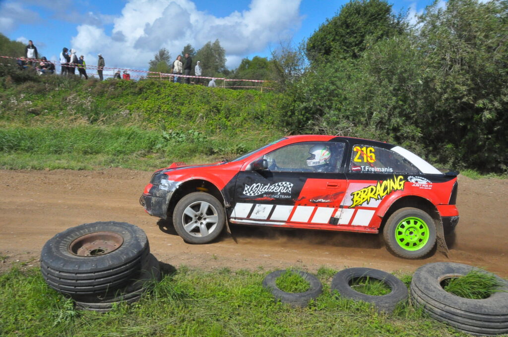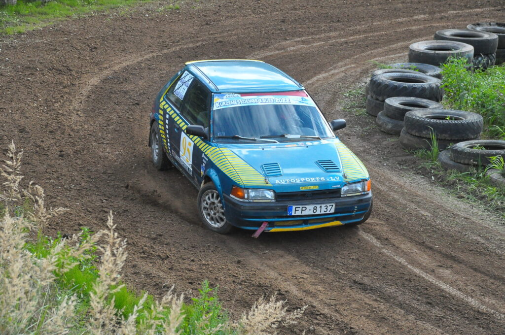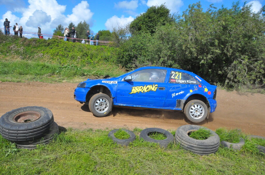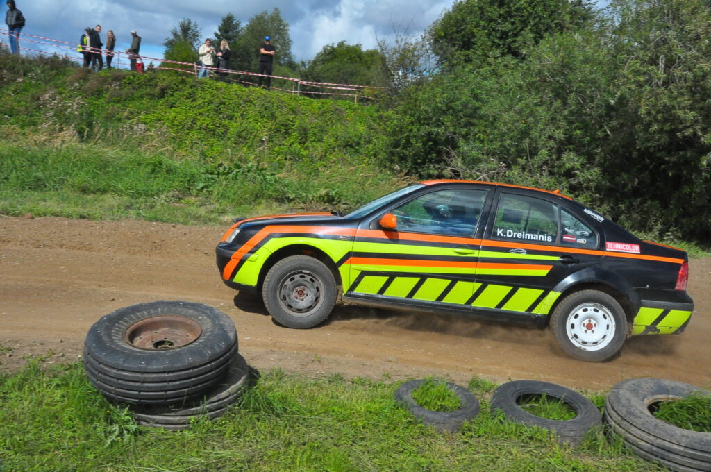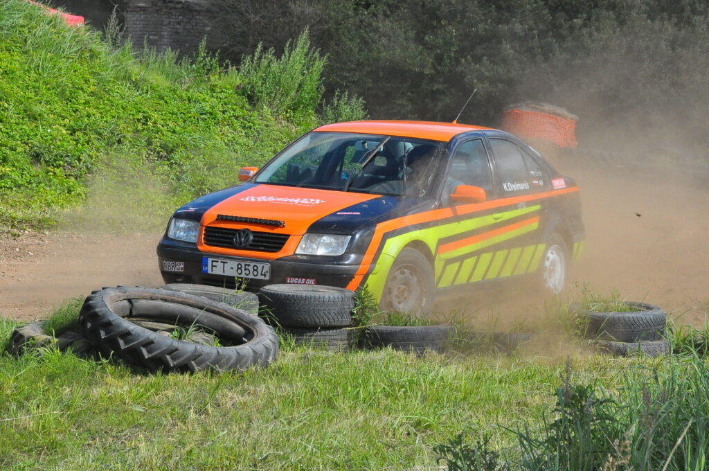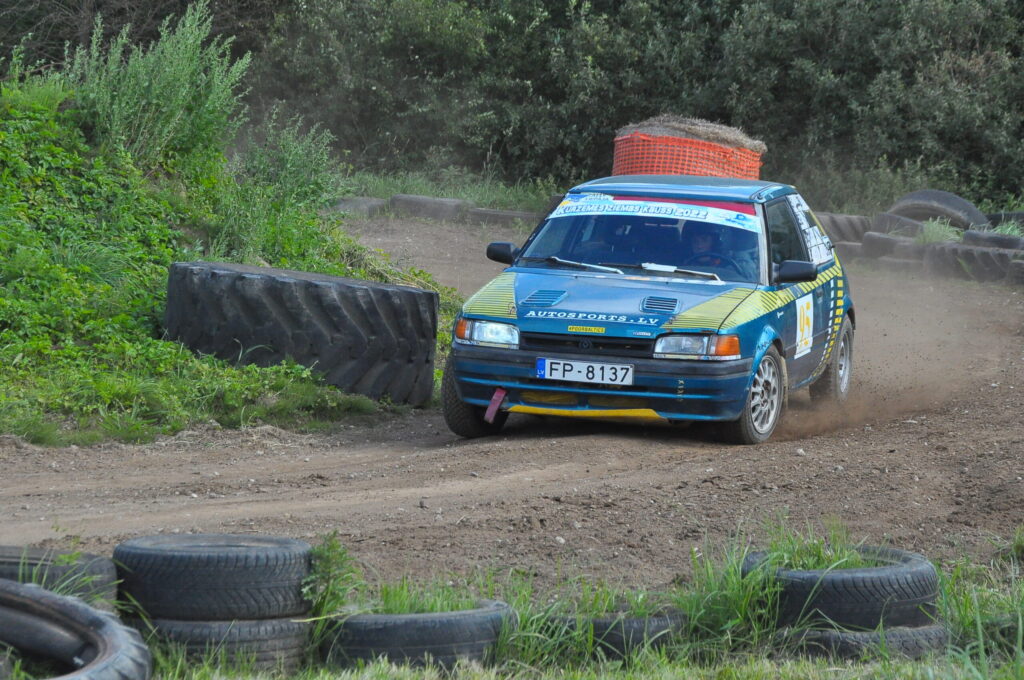 FOTO: Nīcā paliek uz jumta autosprinta sacensībās Pļavmalas" trasē