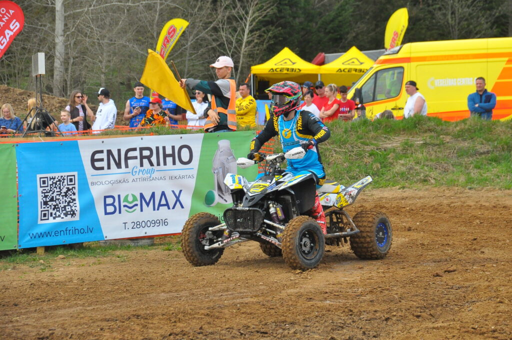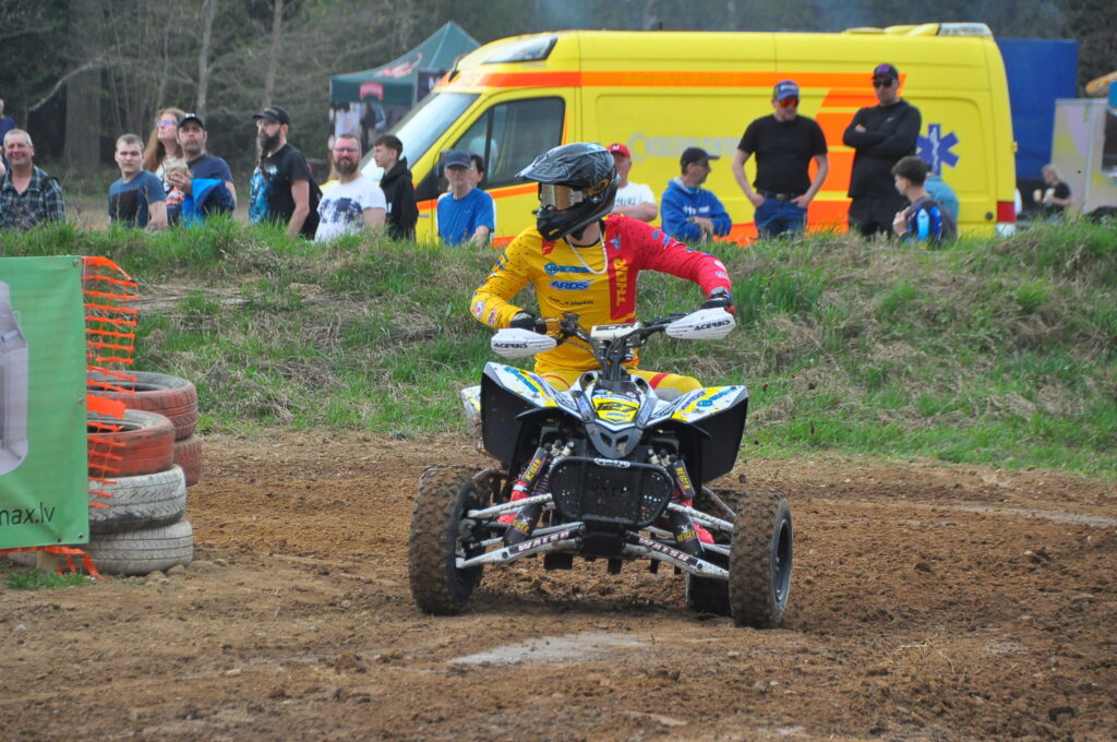 Kvadriciklu klasē konkurentiem neaizsniedzams bija igaunis Karls Robins Rillo, bet pirmajā braucienā smagu krietienu guva un mediķu rokās nonāca Kārlis Neija.