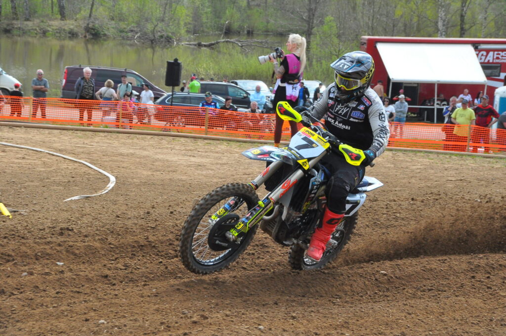 FOTO. VIDEO: Aizputē motokrosa svētku pirmajā dienā skatītāju uzmanības centrā brāļi Lielbārži