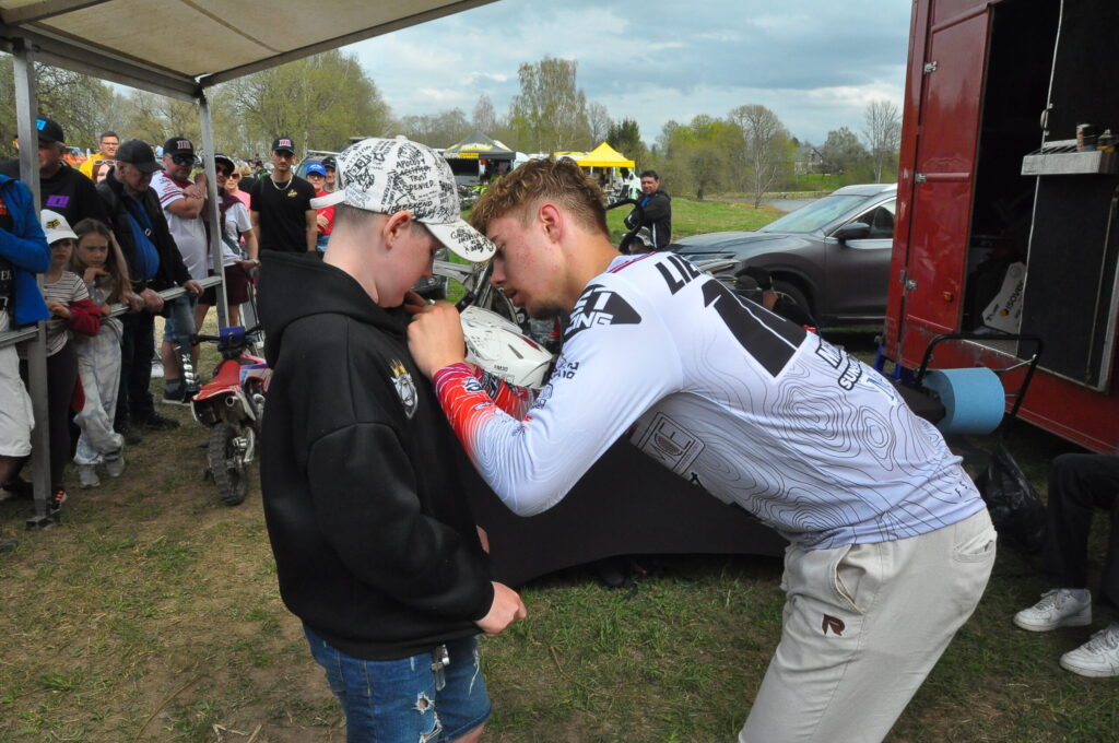 Brāļi Lielbārži Aizputē līdzjutējus iepriecināja ar pārliecinošu uzvaru abos braucienos, bet pēc pirmā brauciena neskopojās ar autogrāfiem fanu teltī. Interese par 2024. gada pasaules vicečempioniem bija milzīga, fani stāvēja rindā pēc iespējas nobildēties ar motosportistiem un tikt pie viņu autogrāfa.