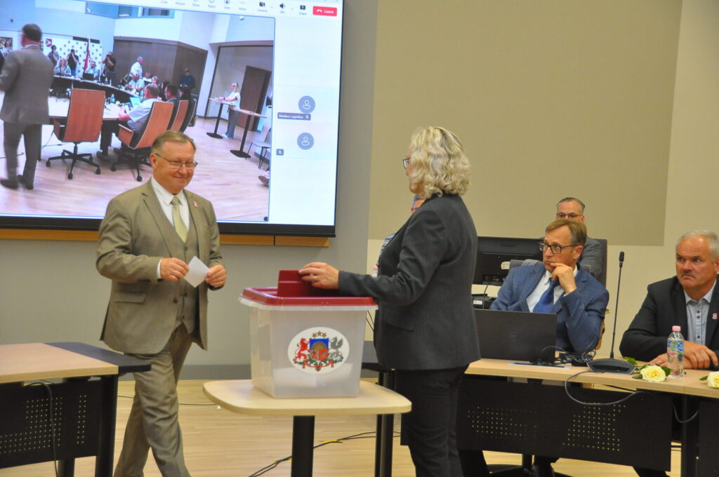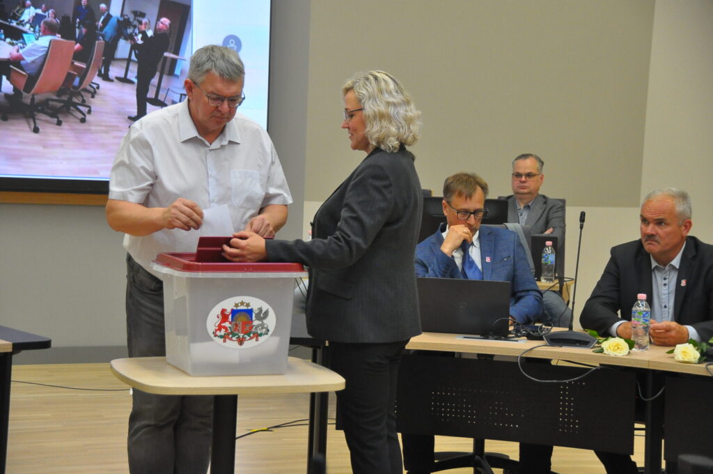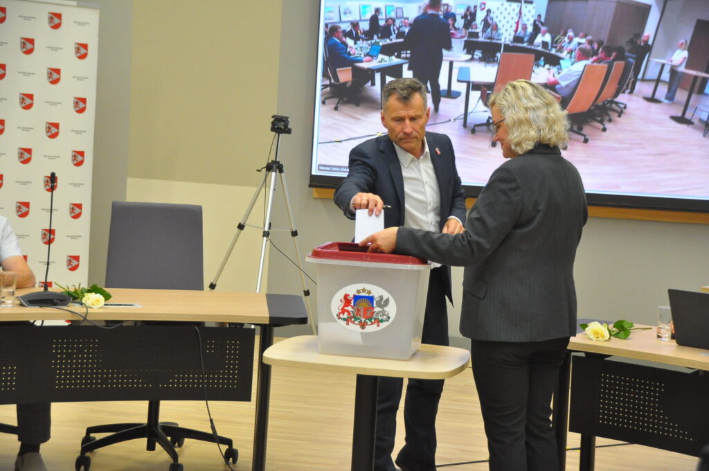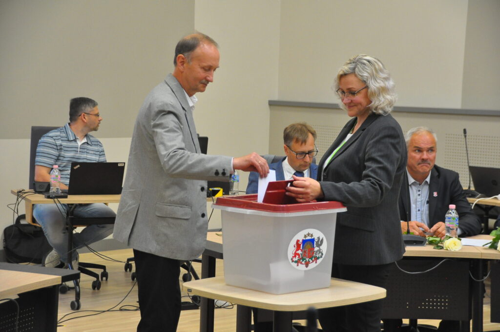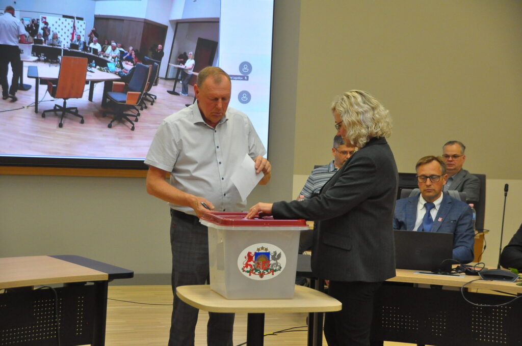Par domes priekšsēdētāja vietnieku tautsaimniecības jautājumos ar 17 balsīm “par” un vienu balsi “pret” ievēlēja Andreju Radzeviču (LRA). Par domes priekšsēdētāja vietnieku attīstības jautājumos vienbalsīgi ievēlēja Uldi Kristapsonu (JV).