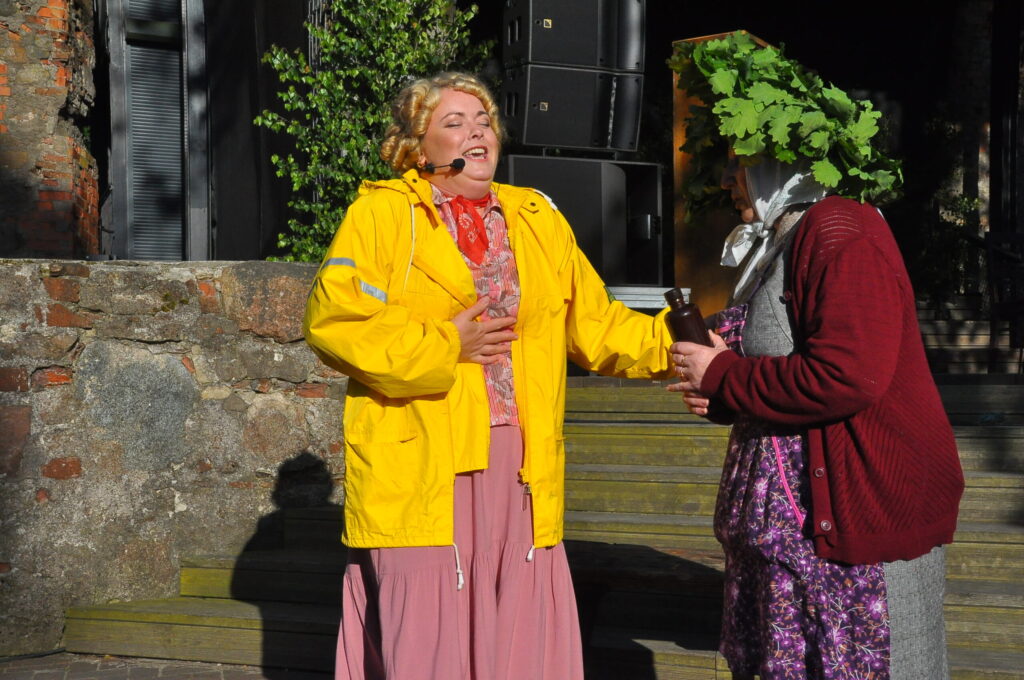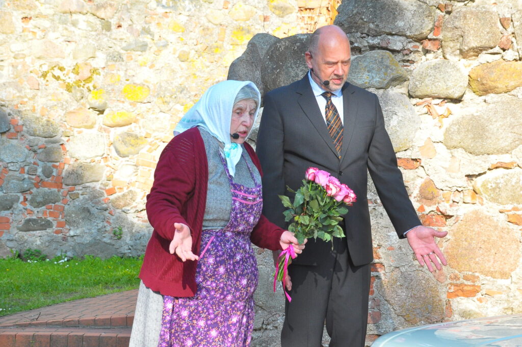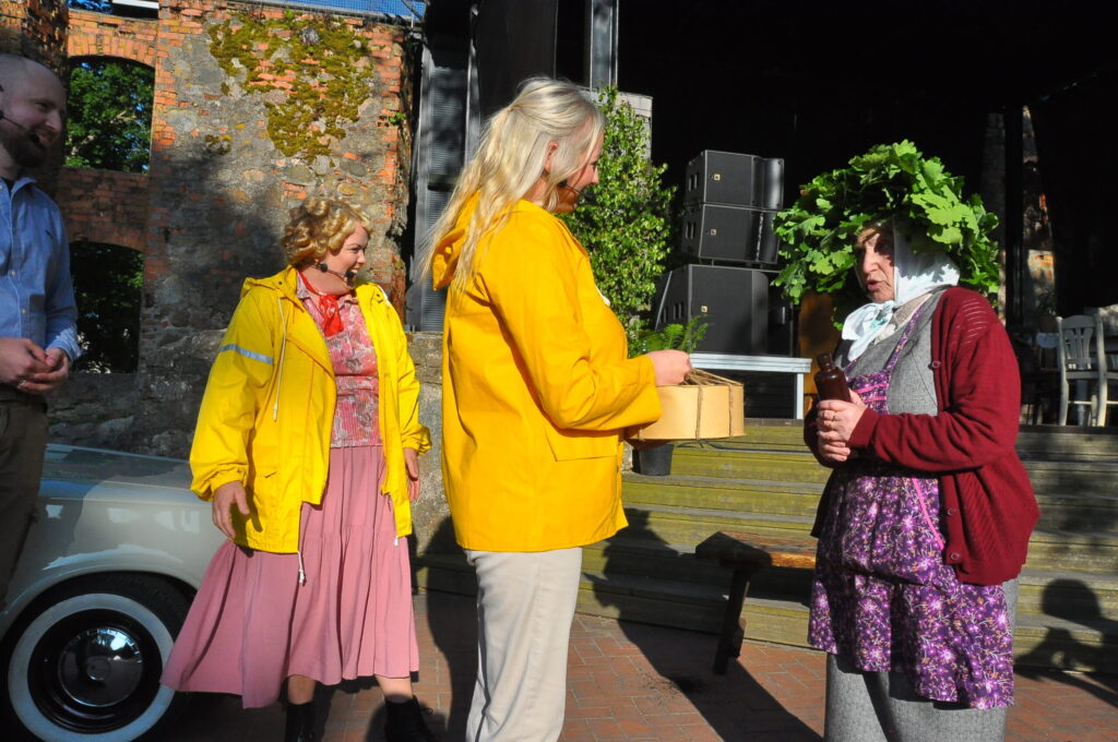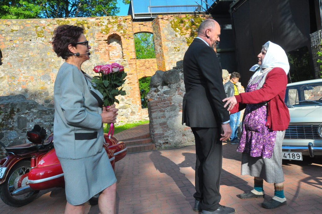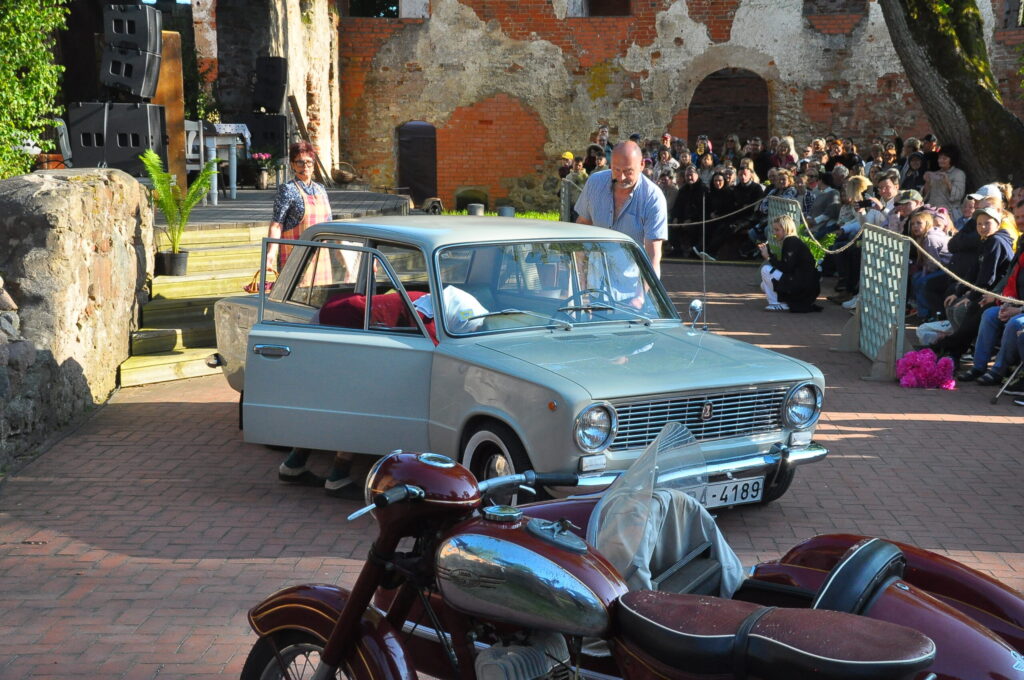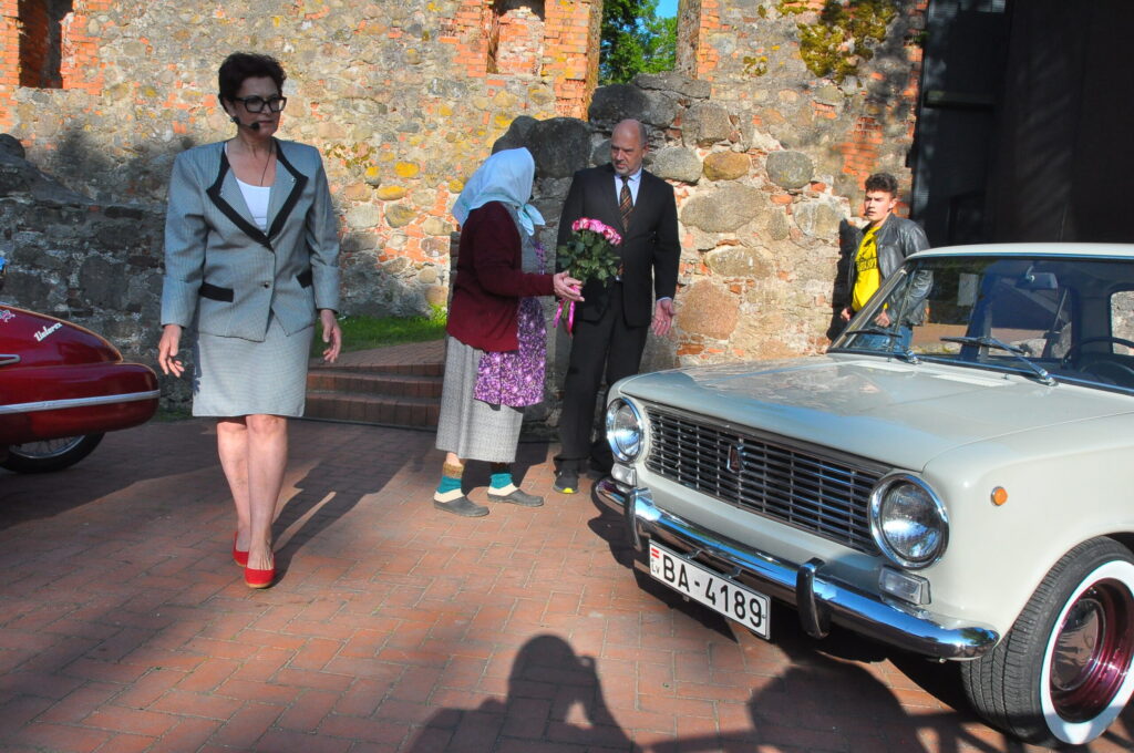 FOTO.VIDEO: Grobiņas pilsdrupās ar skaļām ovācijām uzņem vietējo talantu izspēlēto "Limuzīnu Jāņu nakts krāsā"