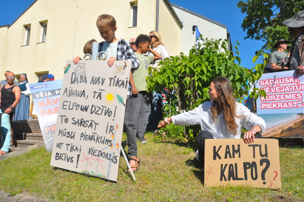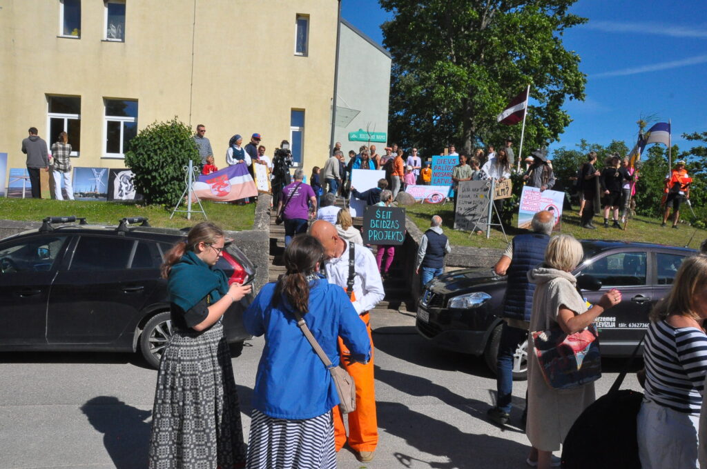 Pirmdien, 30. jūnijā, pie Pāvilostas kultūras namā notika protesta akcija pret plānoto vēja elektrostaciju parku Dienvidkurzemes novada Sakas pagasta mežu teritorijā. Savukārt Pāvilostas kultūras namā un Alsungas kultūras namā pirmdien notika sabiedriskās apspriešanas sanāksmes par trešo pārstrādāto ietekmes uz vidi ziņojumu (IVN) plānotajam vēja elektrostaciju parkam.