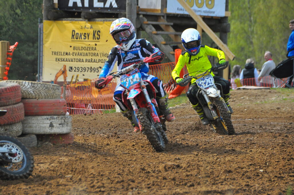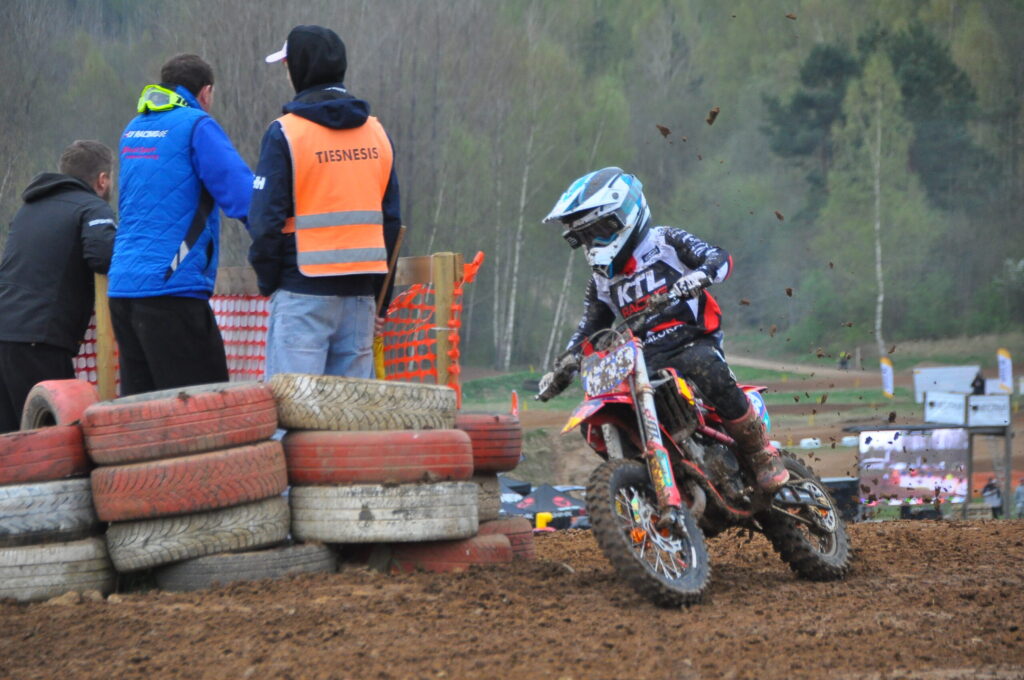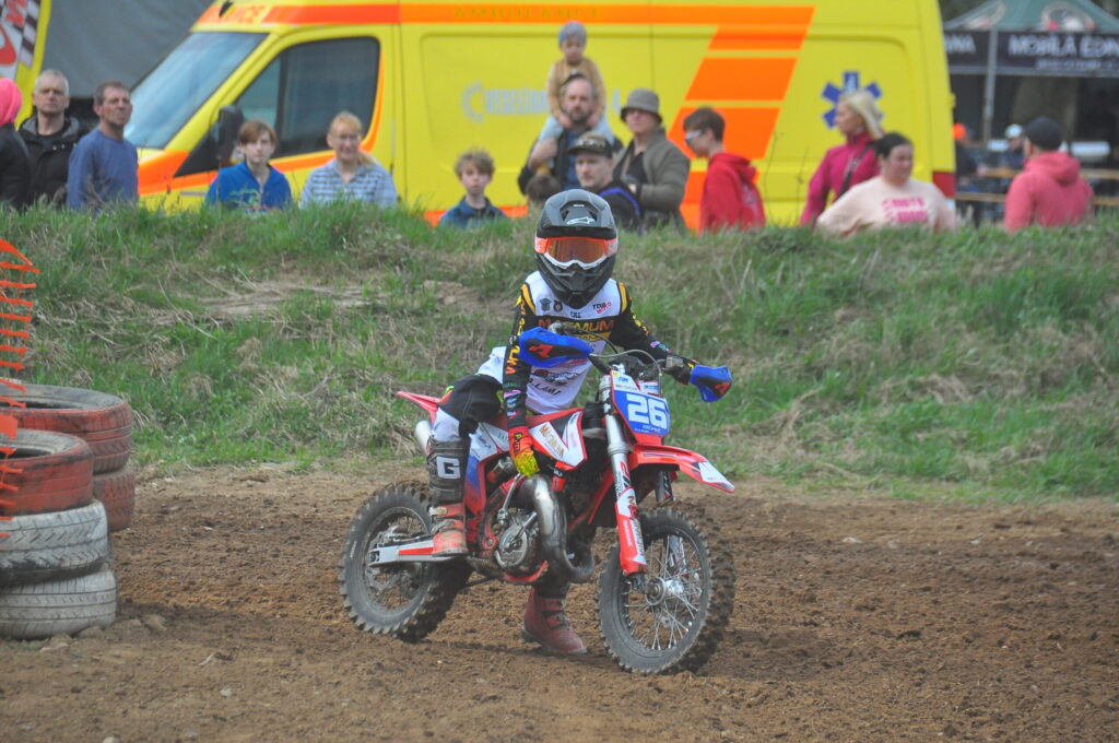 Svētdien Lieldienās Aizputē startēja MX65, MX85, MX125, MX1 un MX2 klases braucēji.