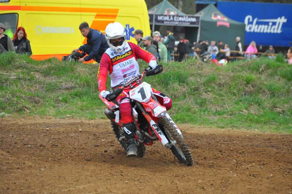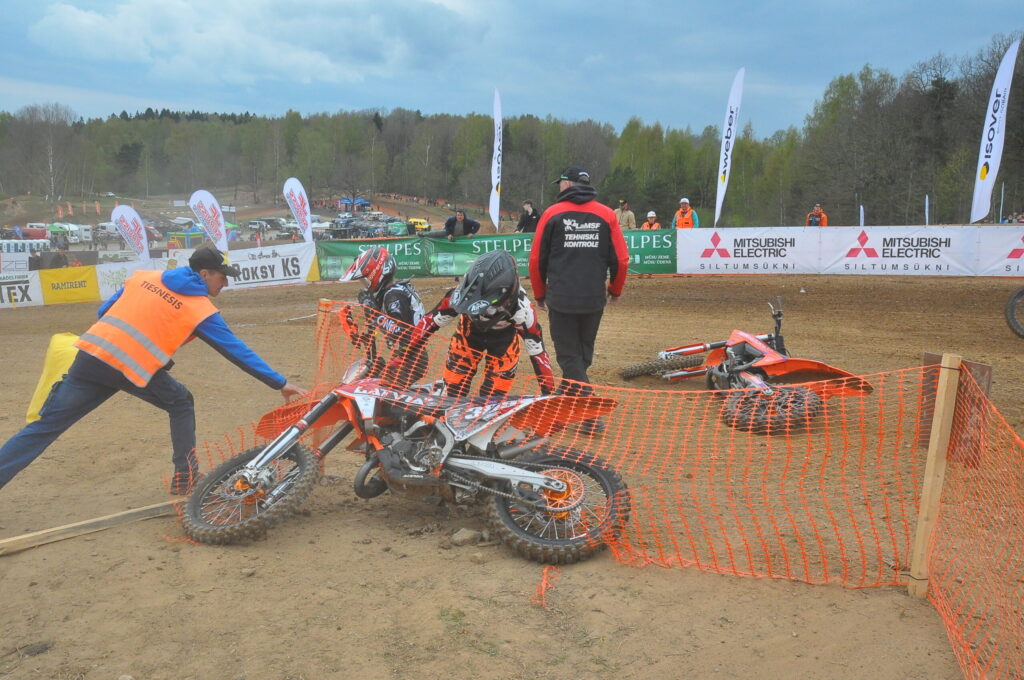 Svētdien, 20. aprīlī, Aizputē, Misiņkalna mototrasē, notika Latvijas čempionāta motokrosā pirmā posma otrā diena, kad uz starta izgāja “MX1”, “MX2” un citu klašu braucēji.