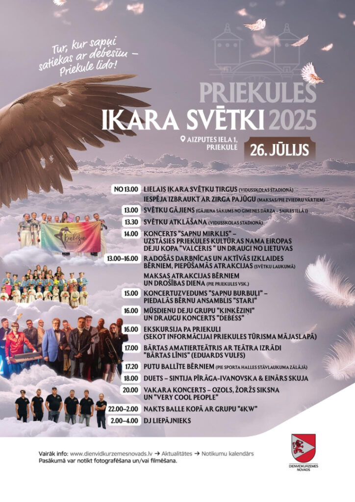 Ikara svētki ir viena no nozīmīgākajām vasaras tradīcijām Priekulē un Dienvidkurzemes novadā, pulcējot gan vietējos iedzīvotājus, gan viesus no tuvākām un tālākām vietām. Šogad svētku programma piedāvās dažādus notikumus – no radošām darbnīcām un teātra izrādēm līdz vakara koncertiem un nakts ballēm.