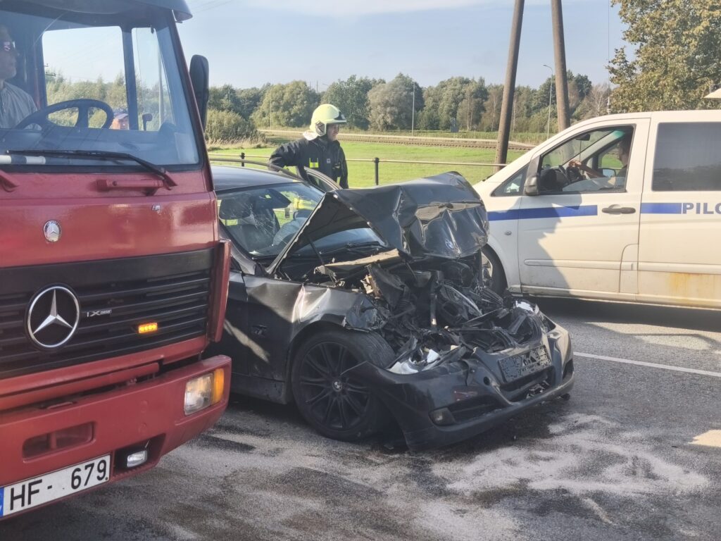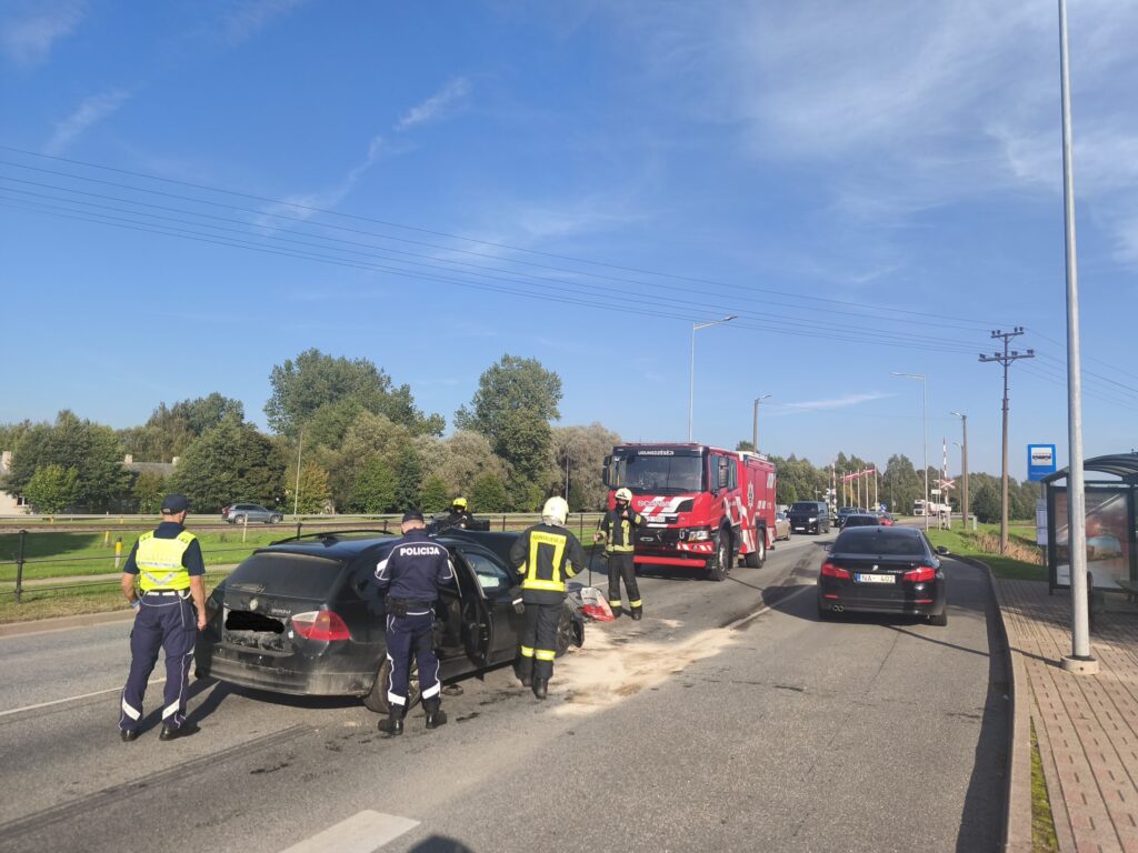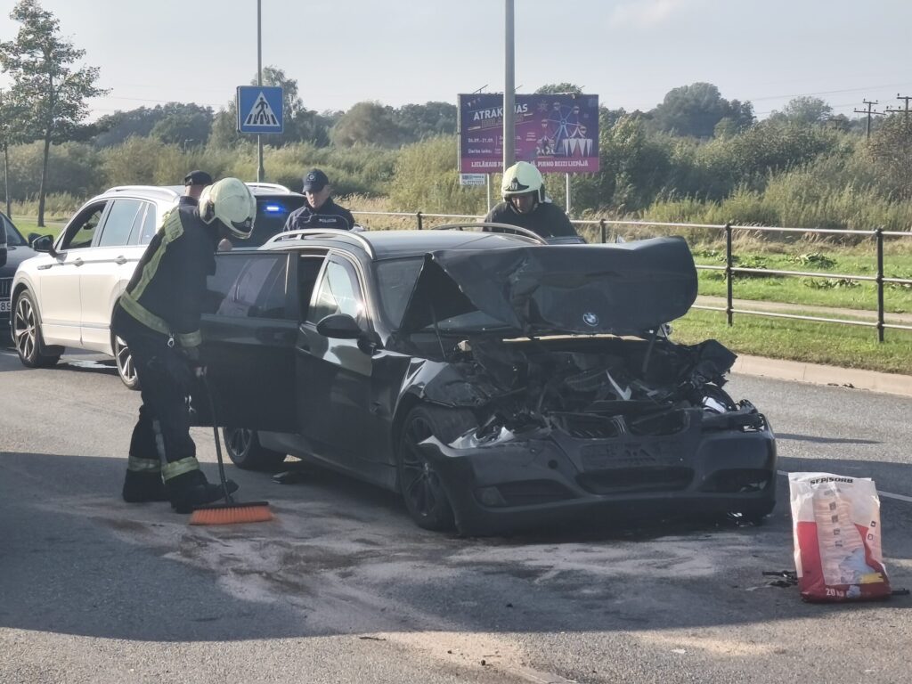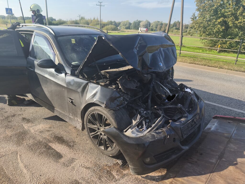 Pie autobusa pieturas “Krustojums” pamatīgi sasista bija automašīna “BMW”, bet ugunsdzēsēji glābēji pēc avārijas sakārtoja ceļa braucamo daļu.