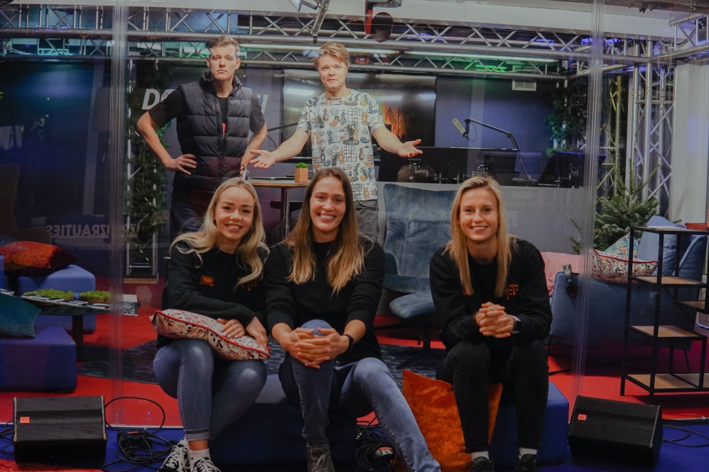 „Dod pieci!” piektdienas viesi – Baltijas pētnieciskās žurnālistikas centra Re:Baltica žurnāliste Ilze Vēbere, basketbola komandas „TTT” pārstāves, uztura speciāliste Baiba Grīnberga.