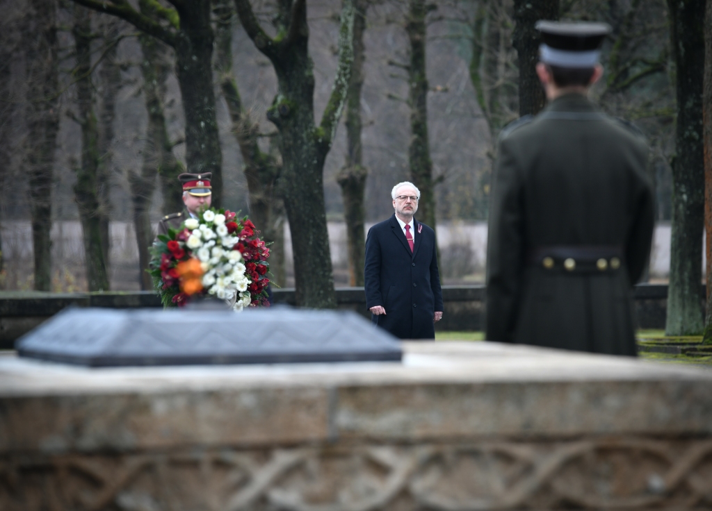 Lāčplēša dienā, 11. novembrī, Valsts prezidents Egils Levits, godinot Latvijas brīvības cīnītāju piemiņu, nolika ziedus Rīgas Brāļu kapos.