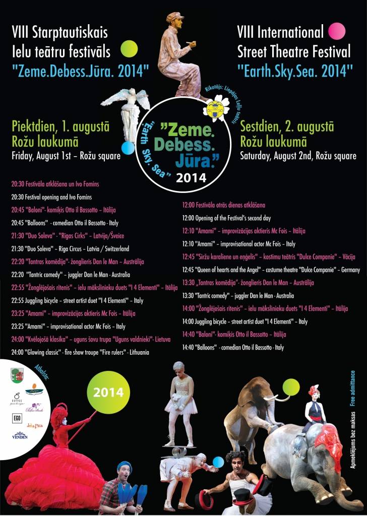 2.augustā, pasākums atsāksies pulksten 12:00, daudzveidīgajā programmā uzstāsies vairāki mākslinieki no Itālijas ,kā piemēram, Ielu mākslinieku duets „I 4 Elementi“, kuru uzstāšanās laikā ir vērojami divu metru lieli ziepju burbuļi, žonglēšana ar lāpām, jautras, ritmiskas mūzikas pavadībā. Komiķis – Otto il Bassotto, kurš izlīdīs no milzu balona, kā arī ielu mākslinieks – Mc Fois, kas uzjautrinās ar smagnēju baletu un iesaistīs skatītājus, bet klauns un humorists Dan le Man no Austrālijas savā izrādē ar muti veiksmīgi žonglēs ping – pong bumbiņas.