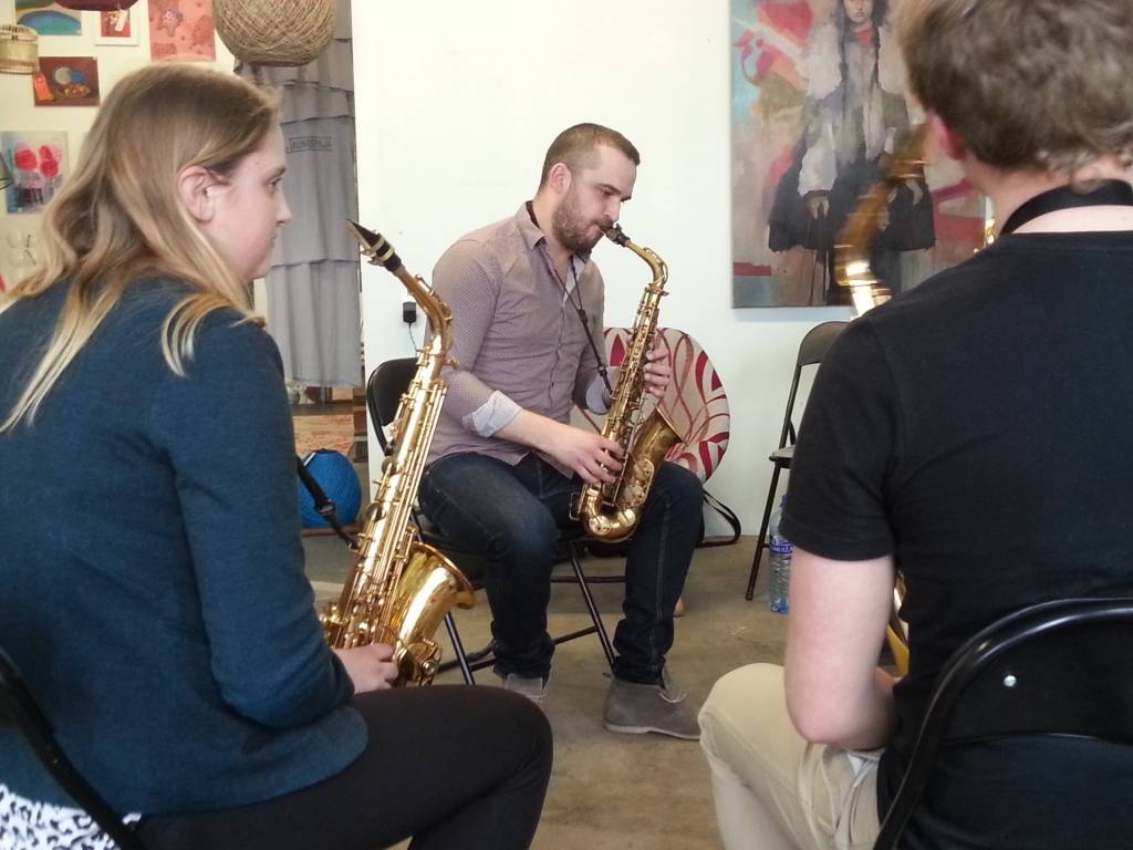 Toms Rudzinskis vadīja arī praktisku nodarbību, daloties savā saksofona spēles meistarībā, atklājot tā saucamos knifus, mudinot uz improvizāciju un katra mūziķa savu ieguldījumu džeza mūzikas atskaņošanā.