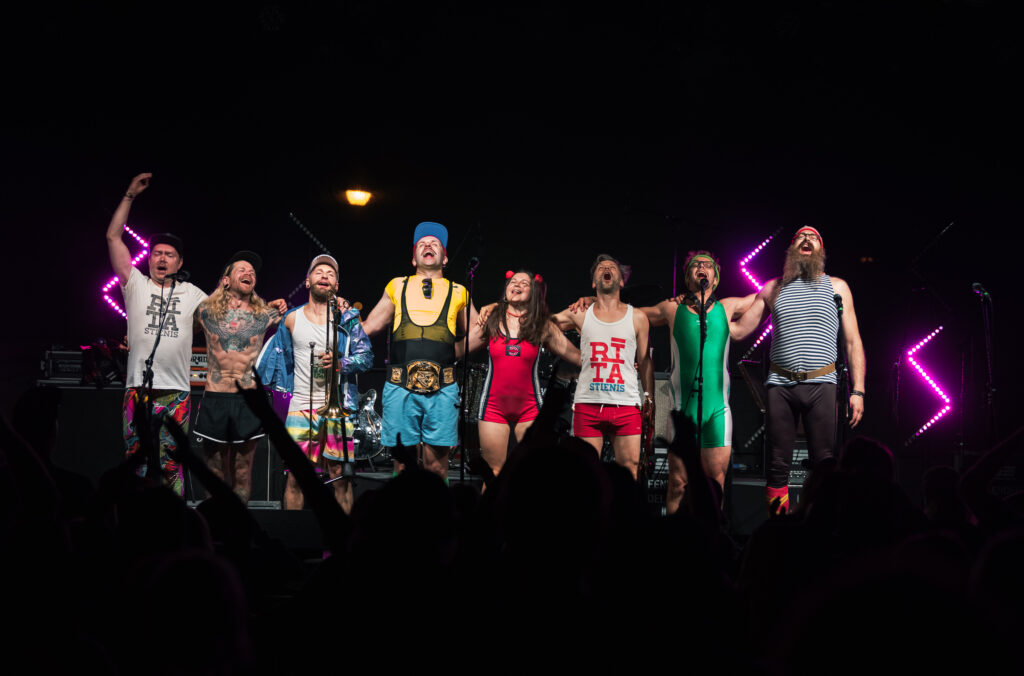Piektdien, 3. oktobrī uz skatuves kāps RĪTA STIENIS – Latvijas alternatīvās skatuves fenomens, kas sevi dēvē par pasaules slavenāko SportPunk orķestri ar dalībniekiem no tādām zināmām apvienībām kā Oranžās Brīvdienas un Indygo, bet grupas priekšgalā ir šarmantais improvizators Kozmens. Viņu mūzika ir dzīvespriecīga un dzirkstoša – pankroka, grunge un stoner rock sajaukums ar melodiskiem pārsteigumiem un sarkastisku poētiku. Katrs koncerts izceļas arī vizuāli – krāšņi sporta tērpi un pieguļoši legingi ir neatņemama priekšnesuma sastāvdaļa.