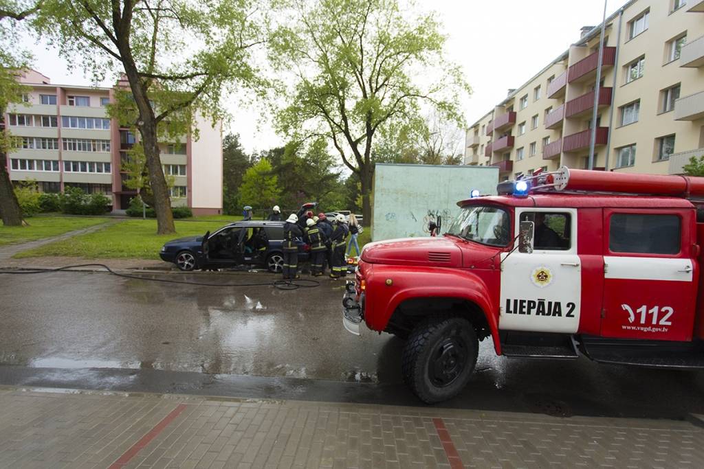 Kā informē VUGD, Liepājā dega vieglās automašīnas salons divu kvadrātmetru platībā. Cietušo nav.