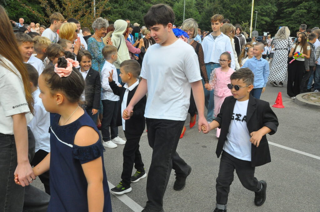 Fotoieskats Liepājas Liedaga vidusskolas 1. septembra svinīgajā pasākumā, kas notika LOC Tenisa halles stāvlaukumā.