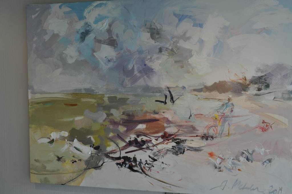 A.Meldere, izliekot savus pārdzīvojumus uz audekla, ieved mūs savu tēlu pasaulē, liekot nojaust fantāziju, emociju un noslēpumu burvību.