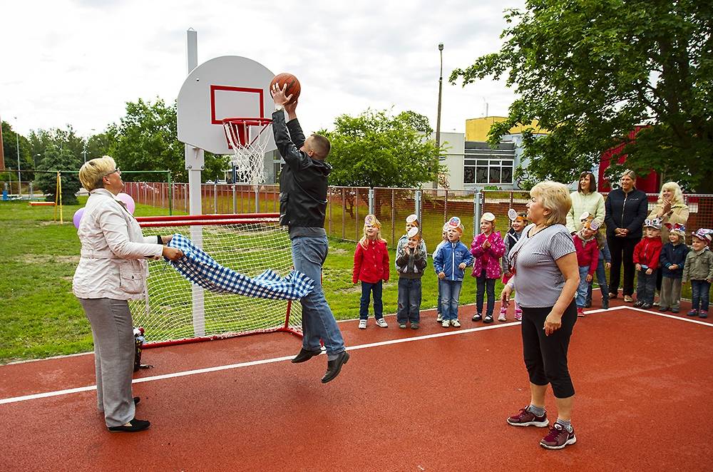 Otrdien, 17. jūnijā, ar jautrām bērnu rotaļām un vingrojumiem, piedaloties pašvaldības un būvnieku pārstāvjiem, svinīgi atklāja jauno sporta laukumu bērnudārzā „Dzintariņš”. Tas šobrīd ir pirmais tik mūsdienīgi aprīkotais sporta laukums pilsētas pirmsskolas iestādēs – ar volejbola tīklu, basketbola groziem, futbola vārtiem un speciālu, mīkstu gumijas segumu bērnu drošībai, informē Gunta Jākobsone, Liepājas pilsētas Izglītības pārvaldes sabiedrisko attiecību speciāliste.