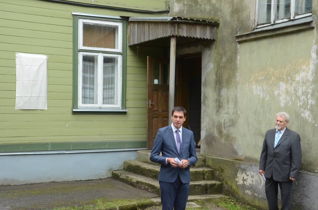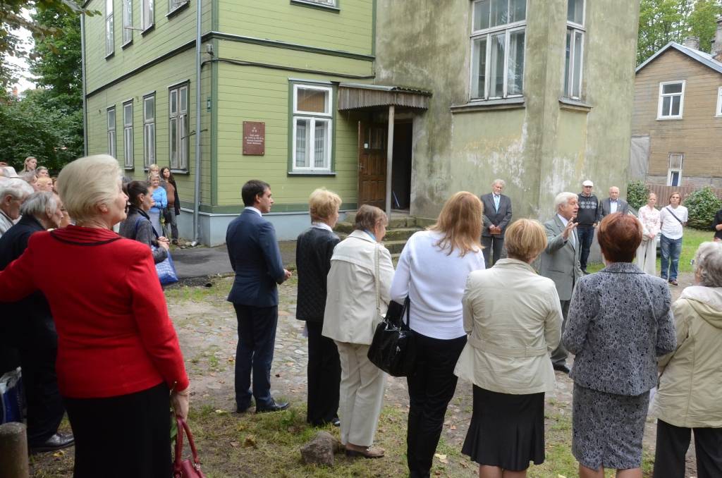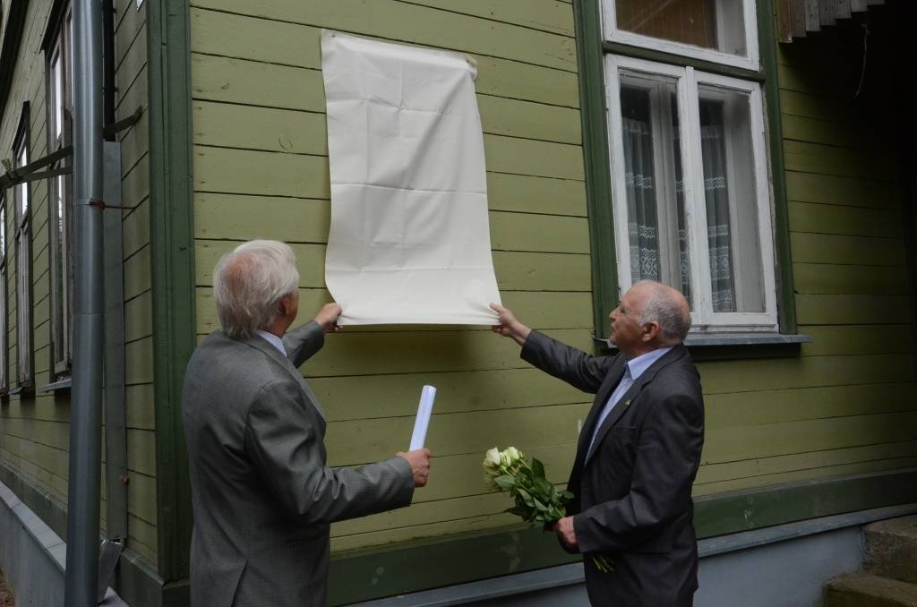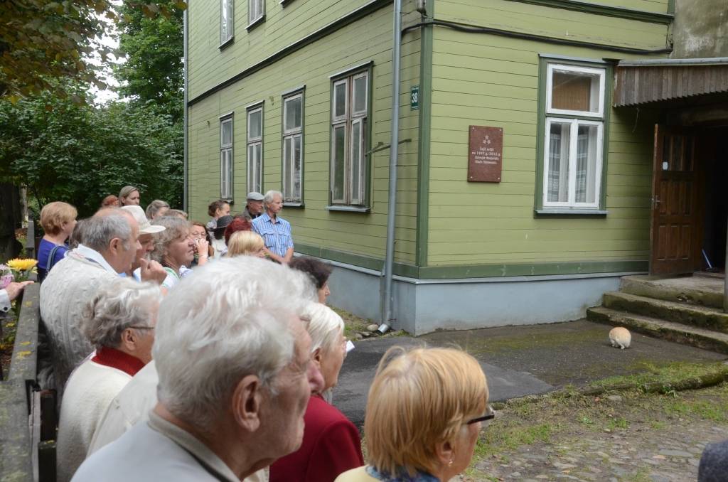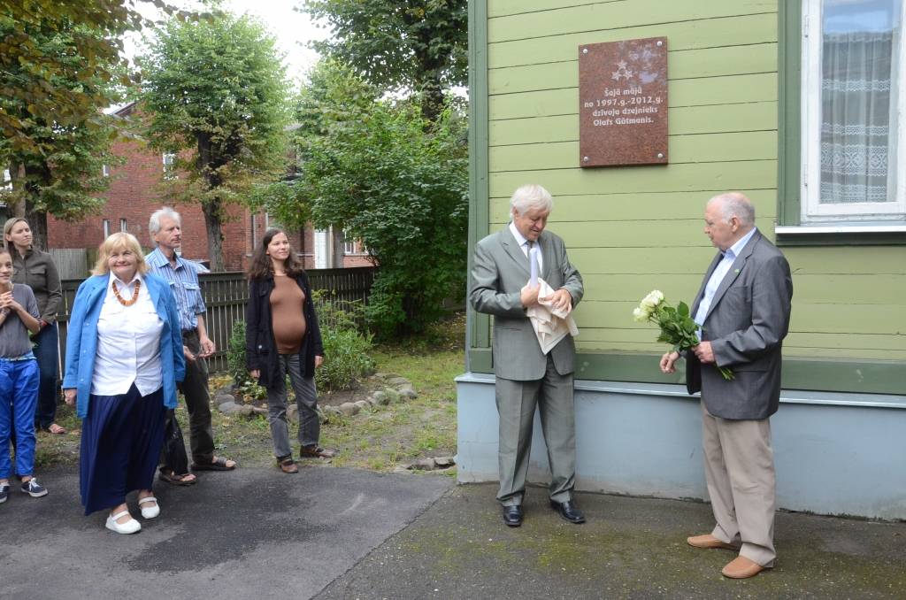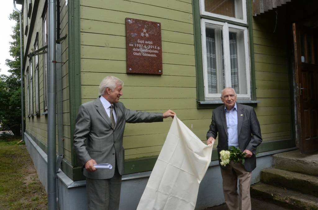 FOTO: Atklāj piemiņas plāksni pie dzejnieka Olafa Gūtmaņa mājas