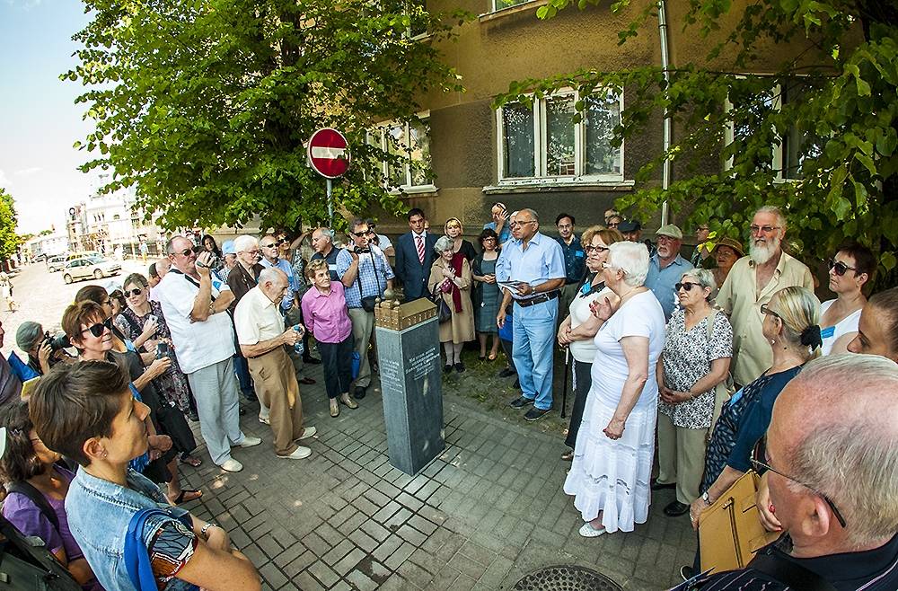 Plāksnes atklāšanā piedalījās arī Izraēlas ārkārtas un pilnvarotā vēstniece Latvijā Hagita Ben-Jākova.
