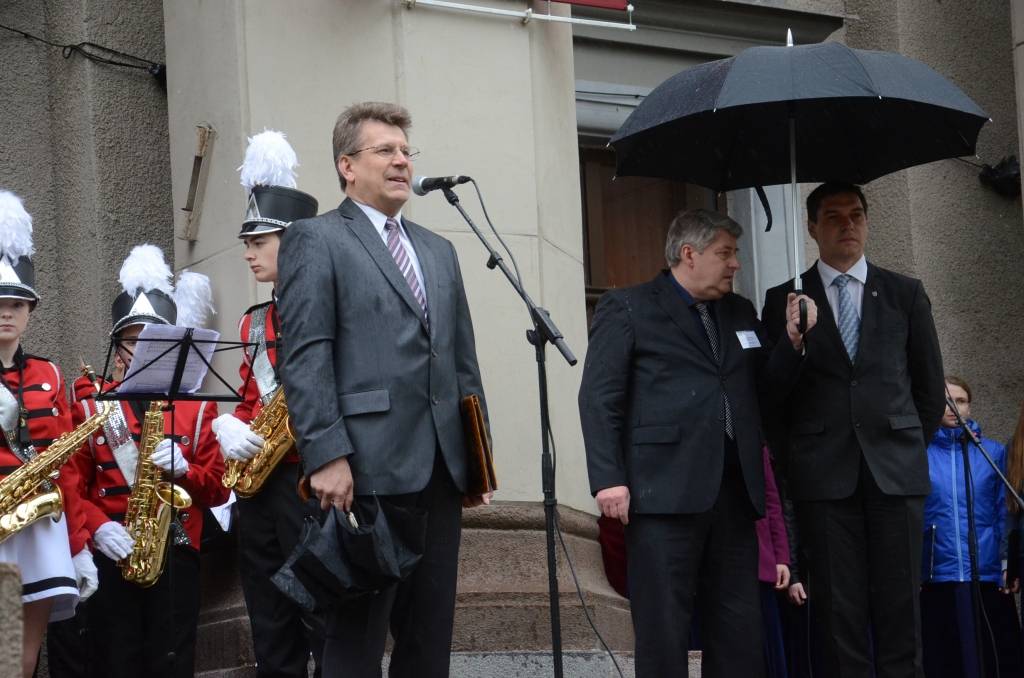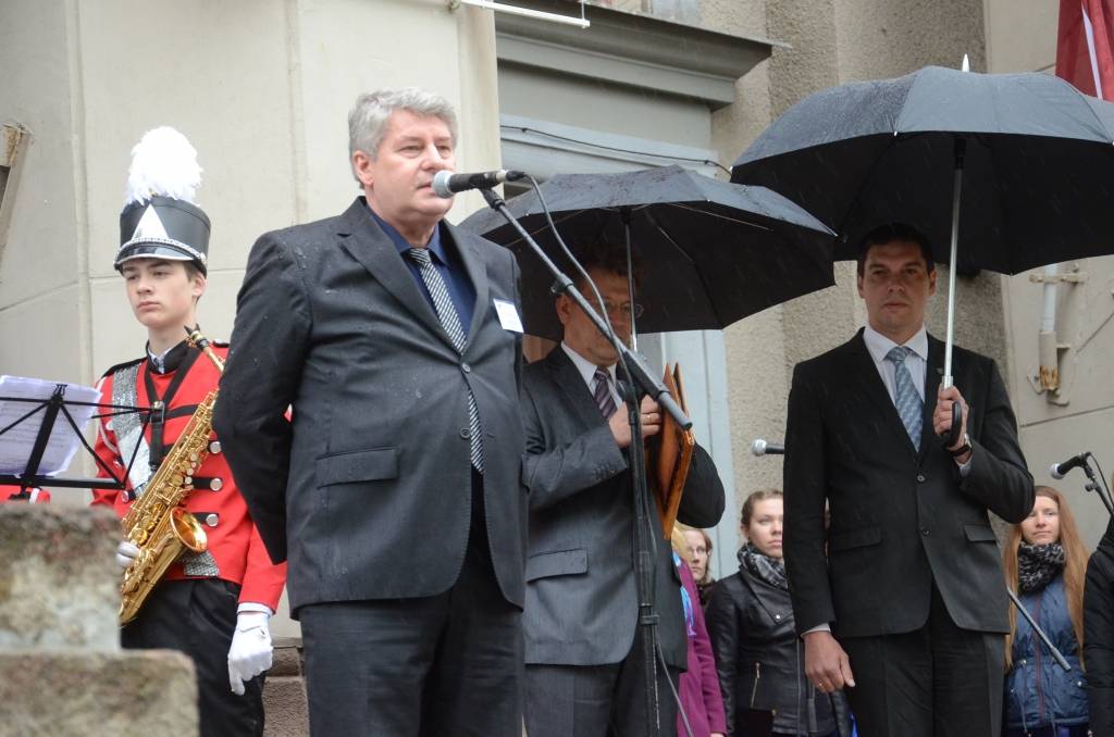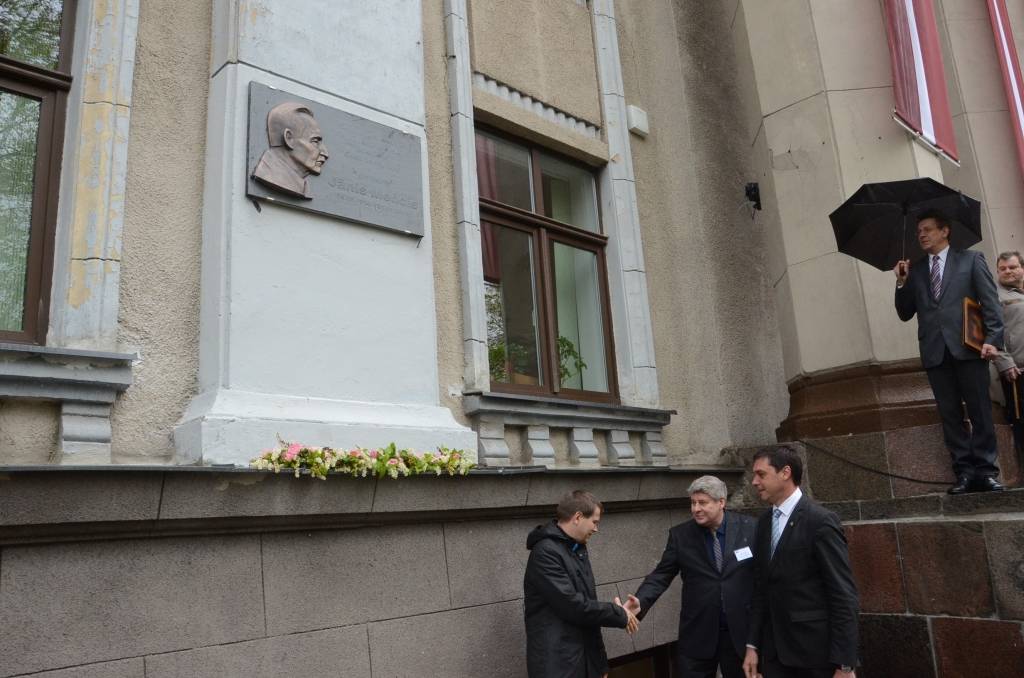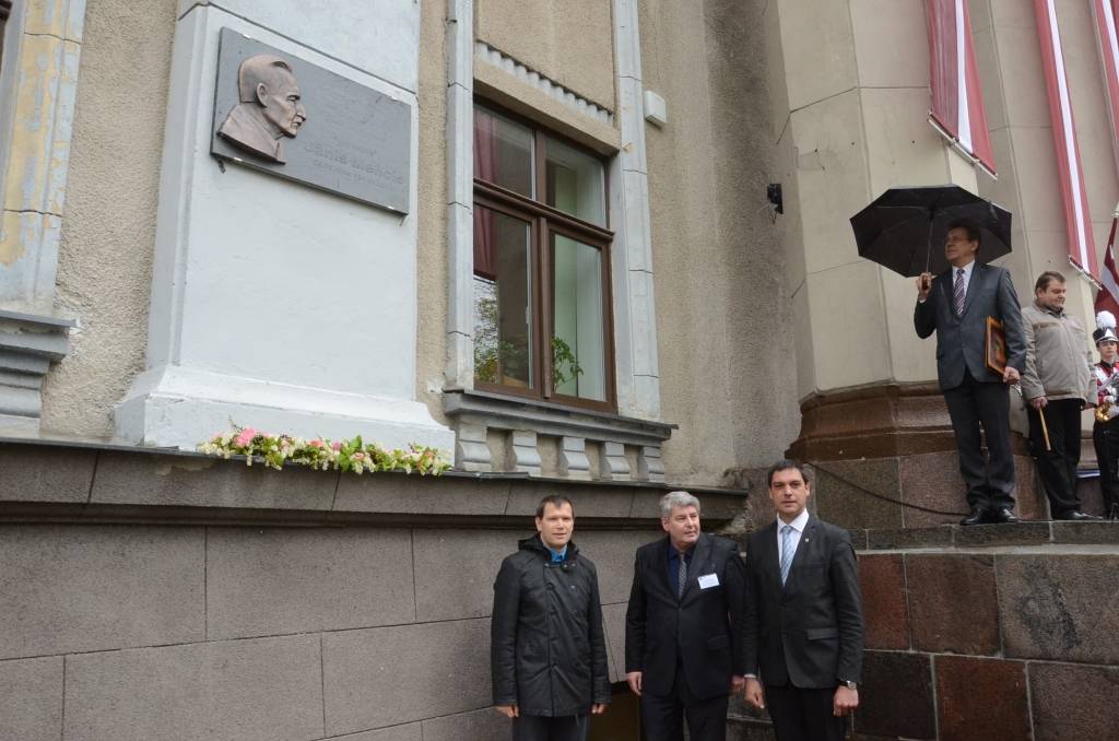 Piemiņas plāksni bija veidojis tēlnieks Uldis Kurzemnieks. Svinīgajā notikumā uzrunu teica Liepājas Universitātes rektors Jānis Rimšāns un Liepājas pilsētas domes priekšsēdētāja vietnieks Gunārs Ansiņš.