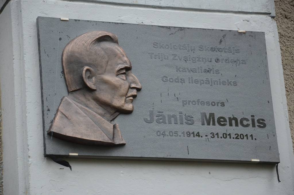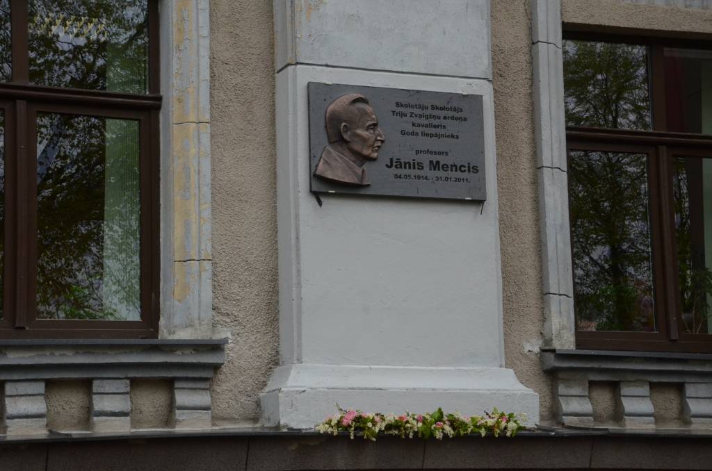 Piektdien, 9. maijā, pie Liepājas Universitātes ēkas atklāja profesoram Jānim Mencim (1914–2011) veltītu piemiņas plāksni – par godu profesora simtgadei.