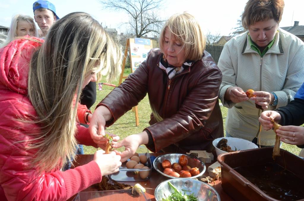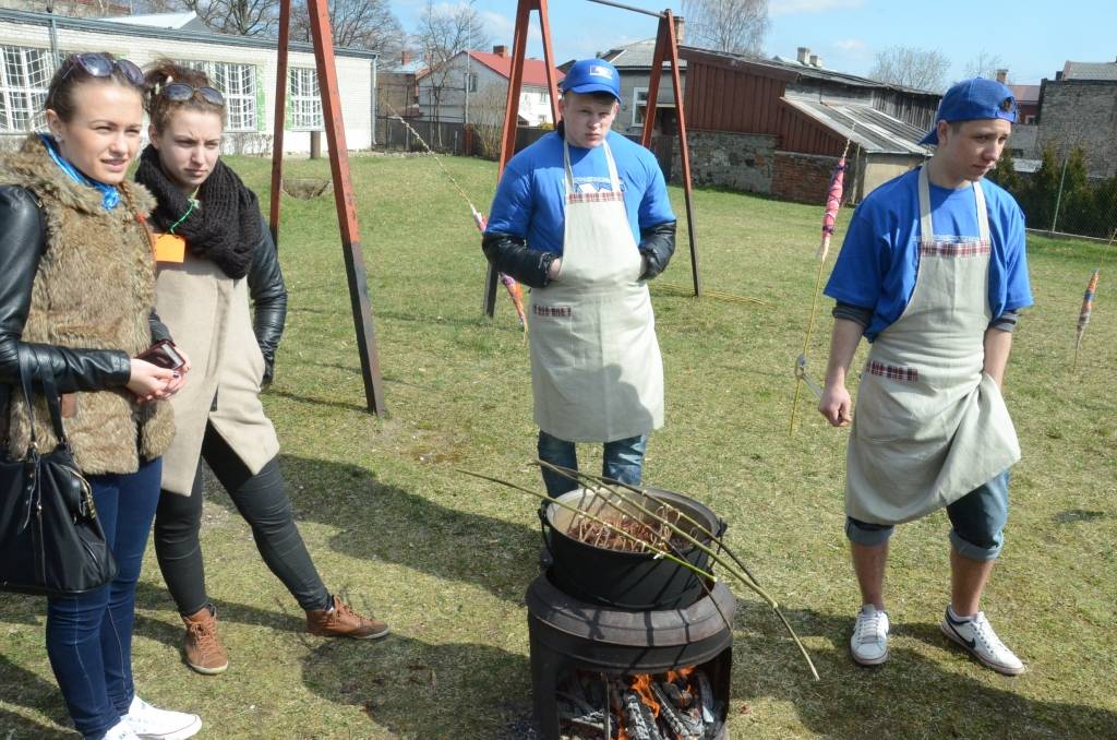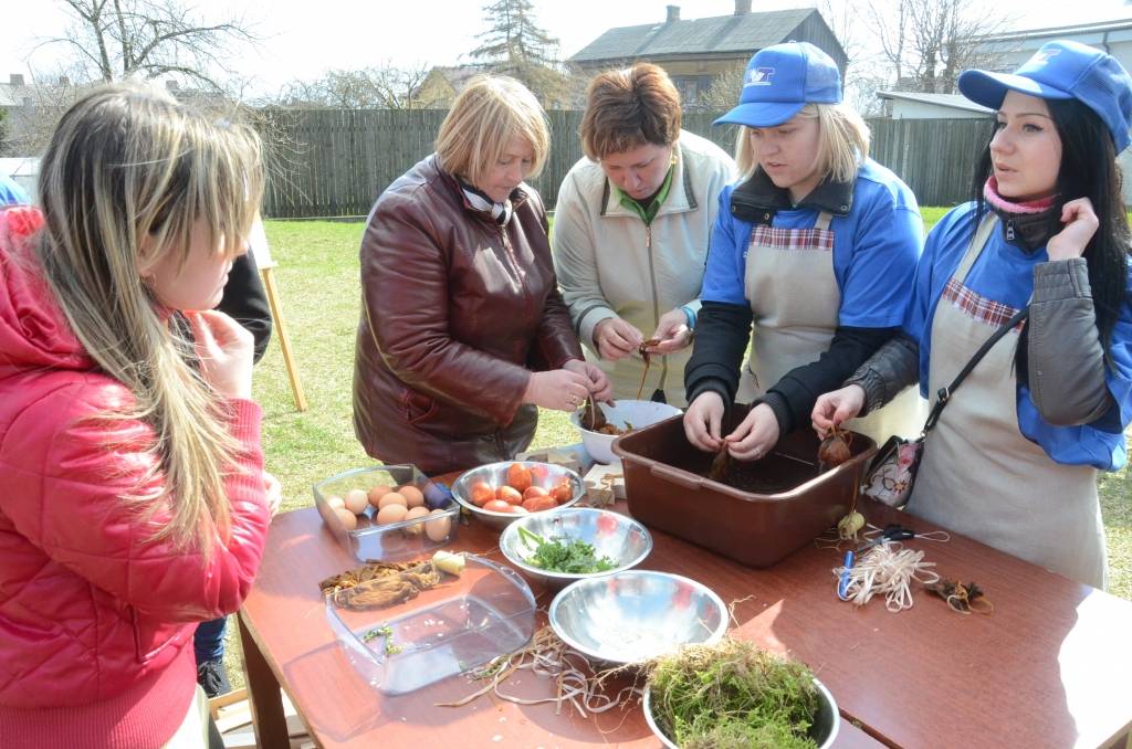 Liela interese bija arī tehnikuma pagalmā izvietotajai sava veida lauku virtuvei, kur varēja rast Lieldienu noskaņu – izvirpot koka olu, krāsot olas dabīgās krāsvielās un piedalīties ripināšanā.