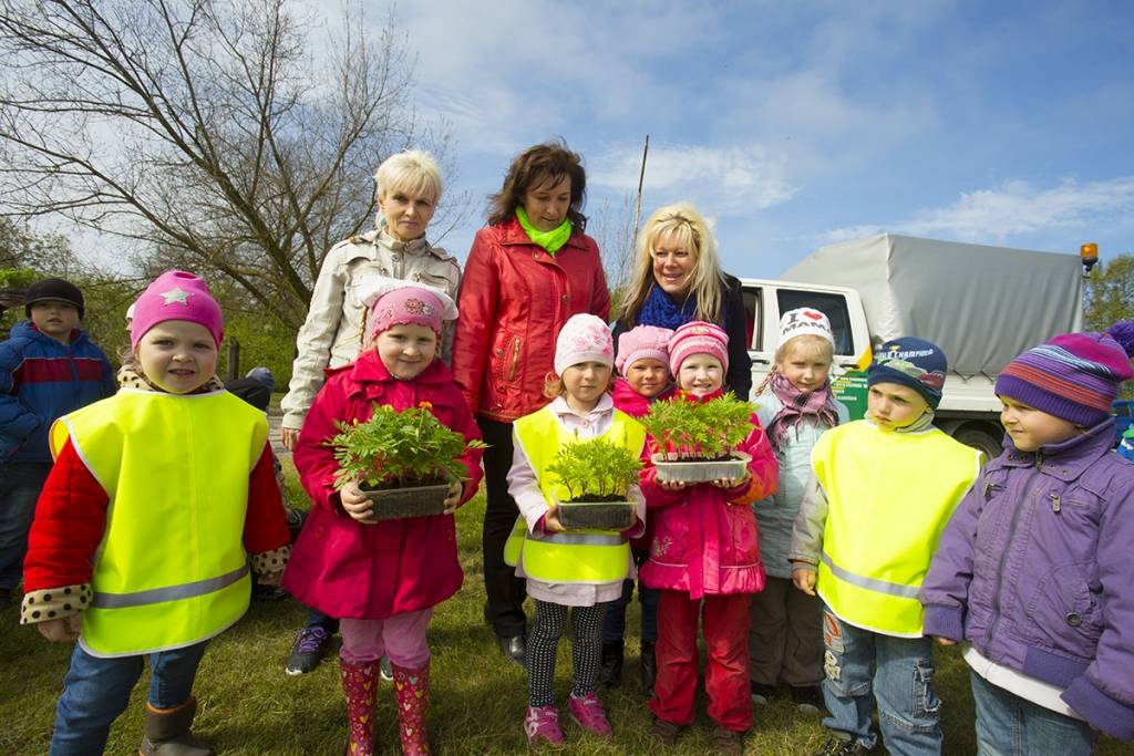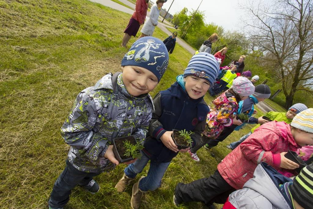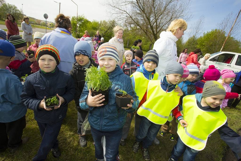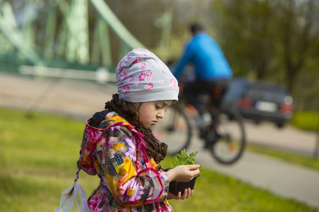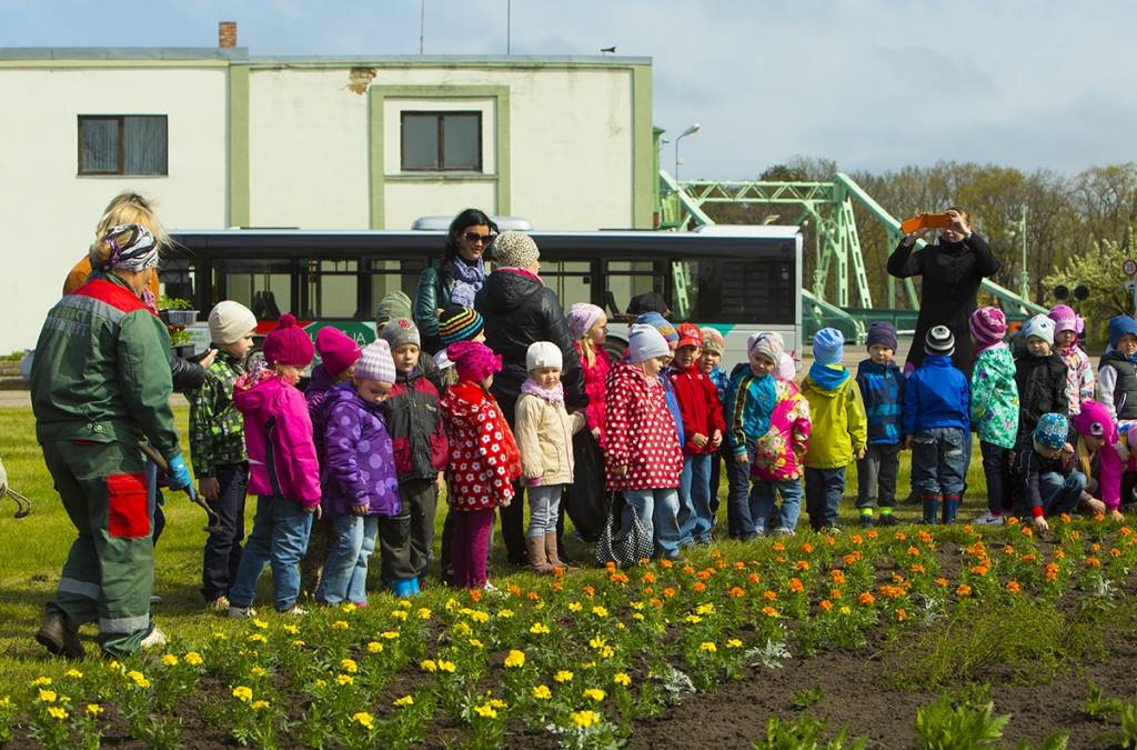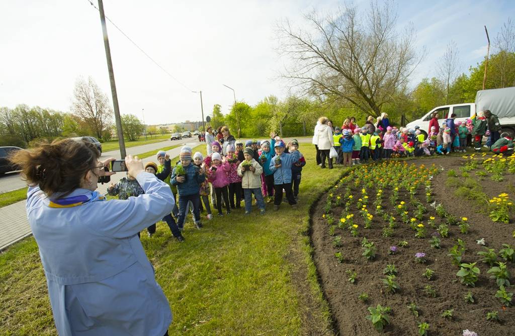 Mazie liepājnieki ceturtdien apzaļumoja arī Kalpaka tilta apkārtni.