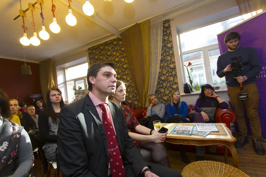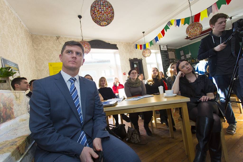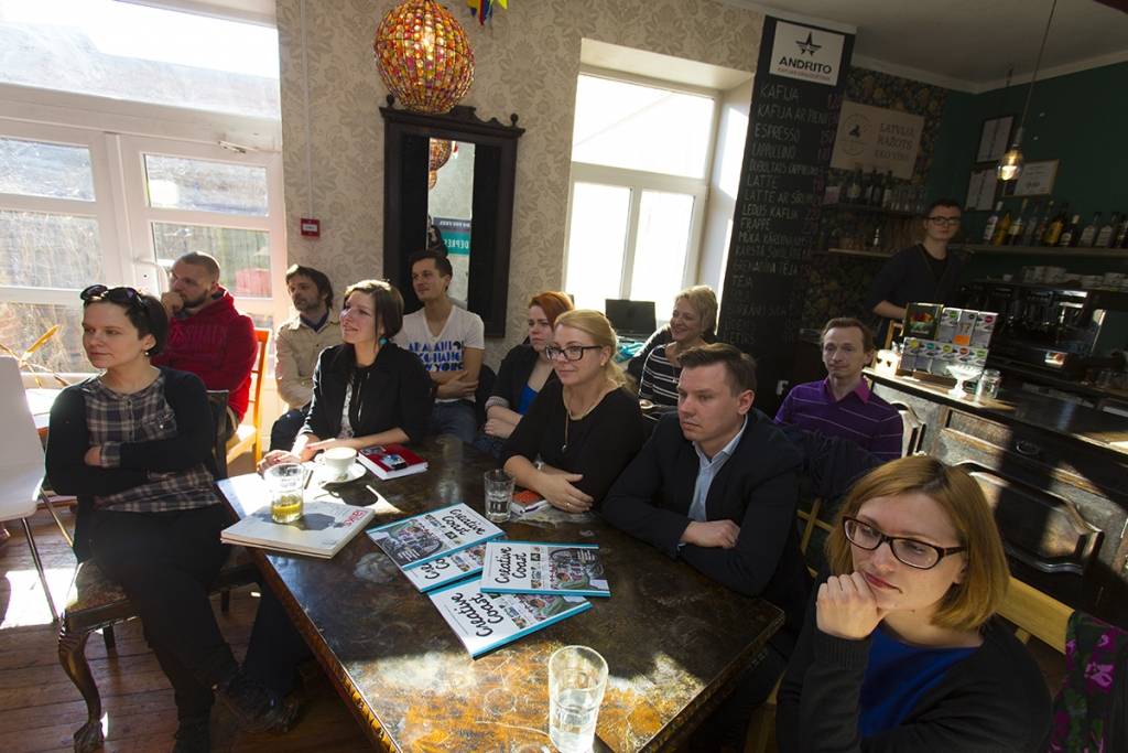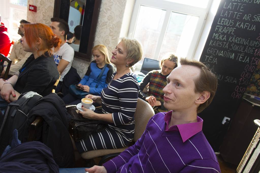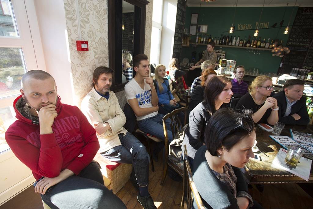 Foto no kafejnīcas “Kursas putni” Fr. Brīvzemnieka ielā 28, kur ceturtdien notika diskusija “Radošā Liepāja – kritiskais saturs”.