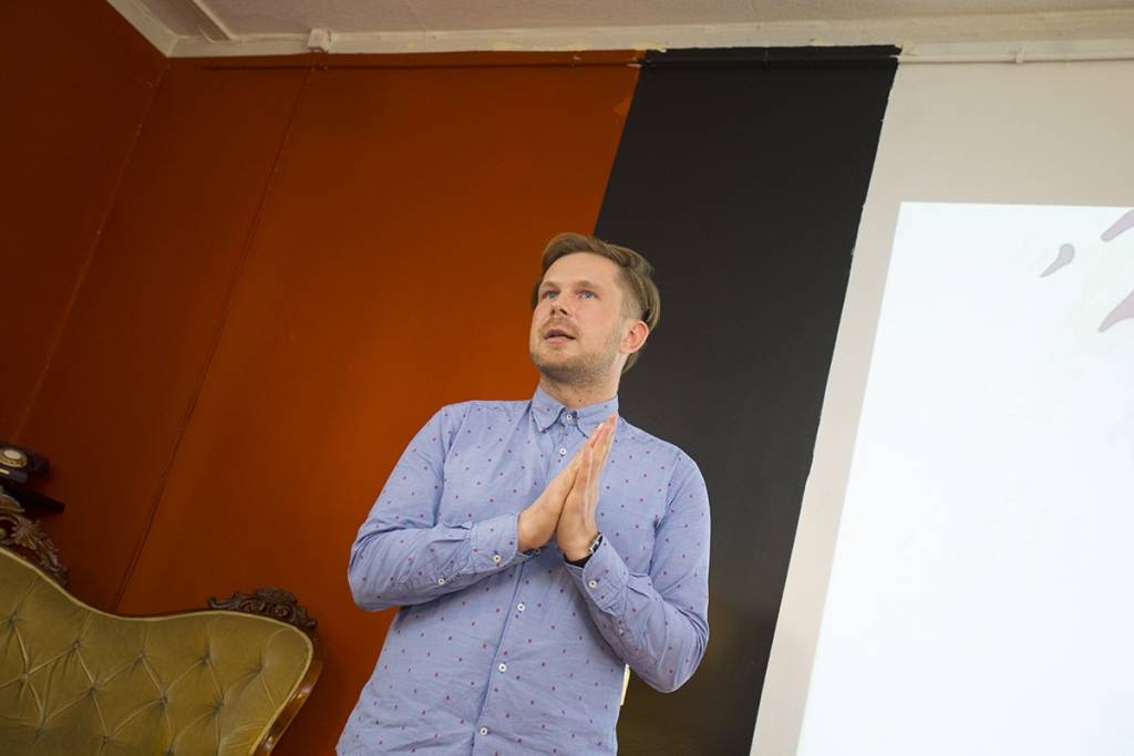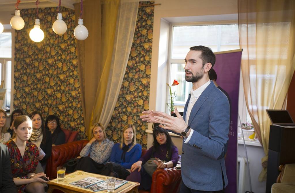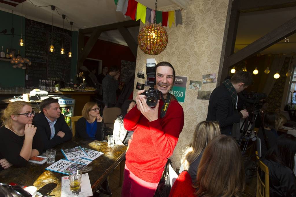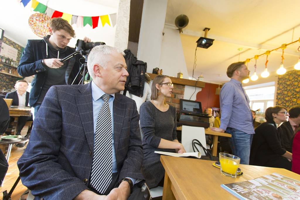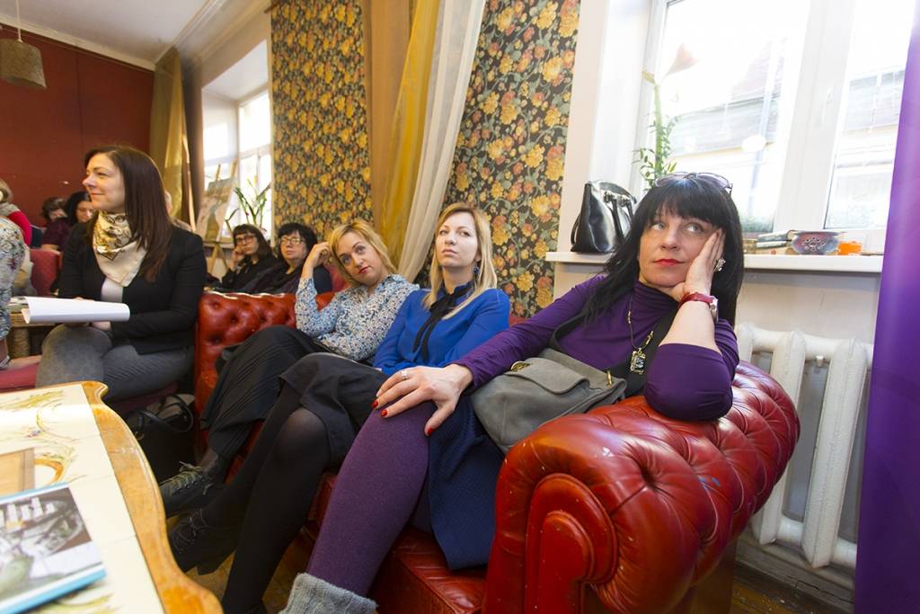 Foto no kafejnīcas “Kursas putni” Fr. Brīvzemnieka ielā 28, kur ceturtdien notika diskusija “Radošā Liepāja – kritiskais saturs”.