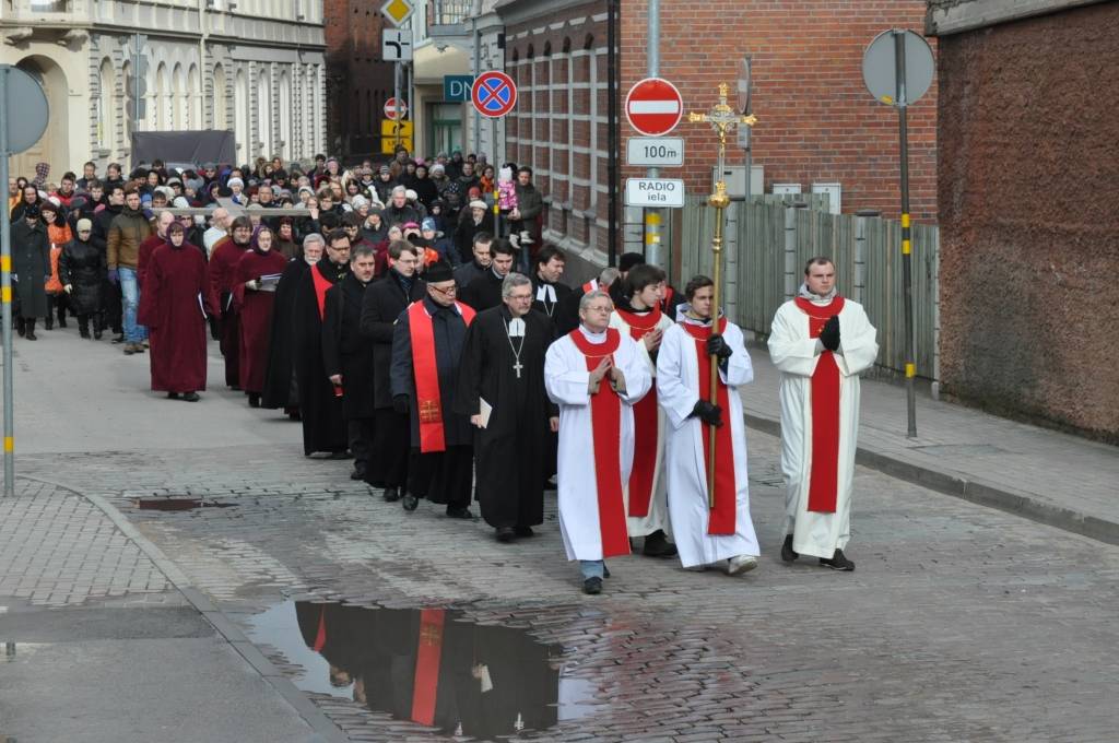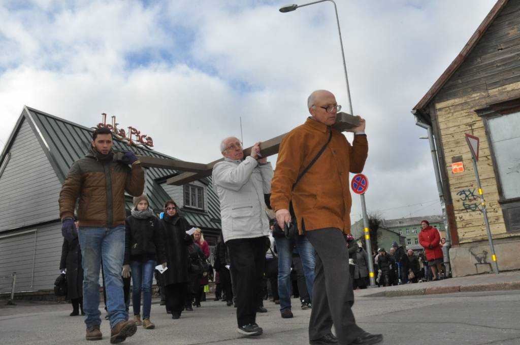 Lielajā Piektdienā Liepājā, tāpat kā daudzviet citur pasaulē, aizvadīts tradicionālais Krusta ceļa gājiens.