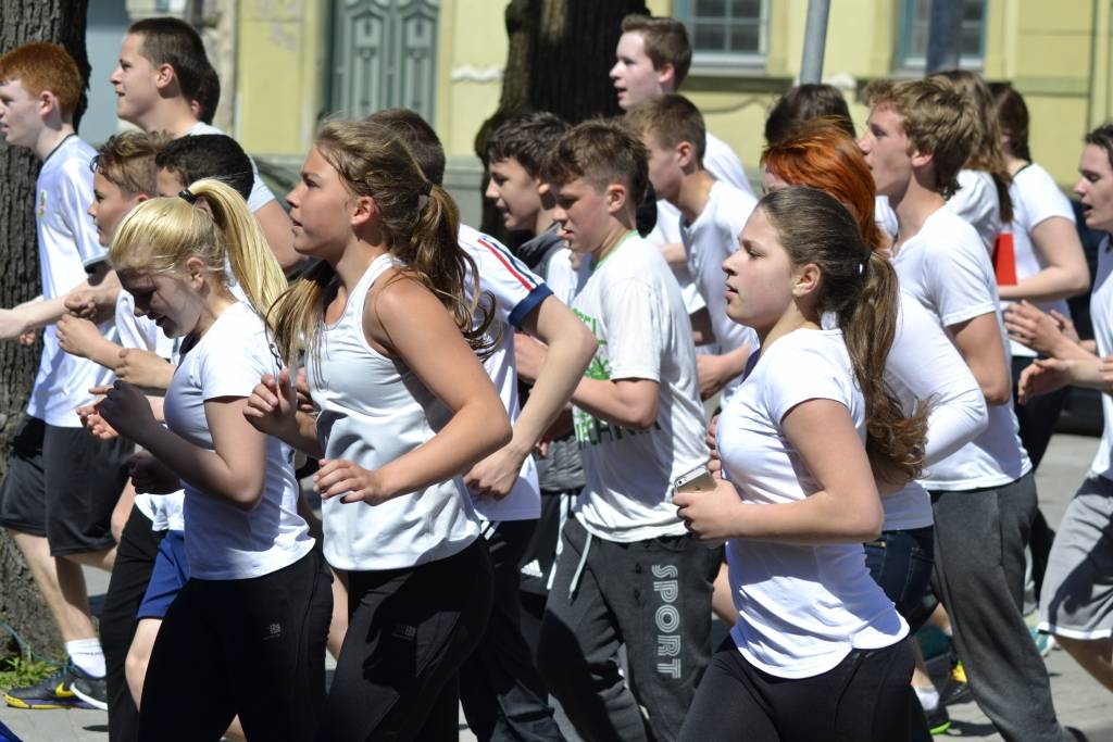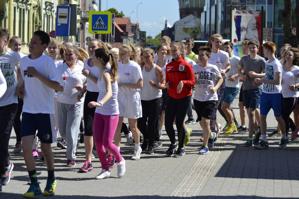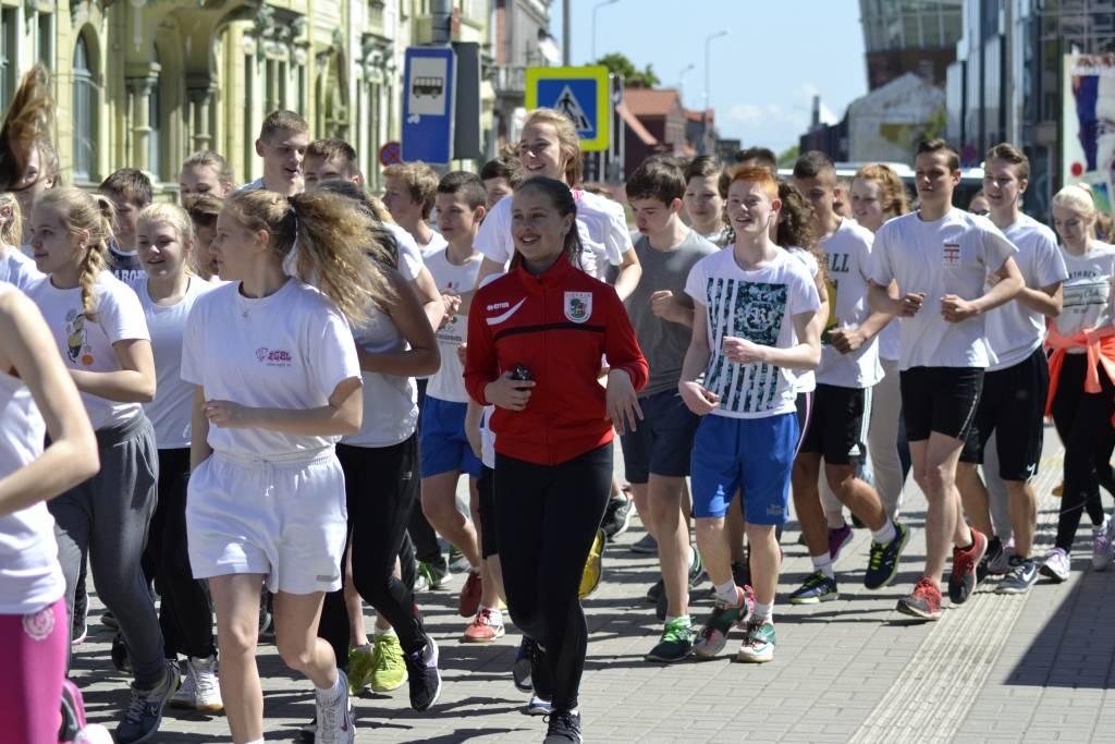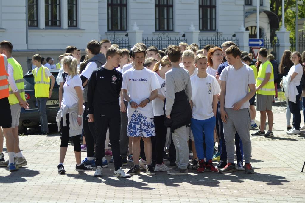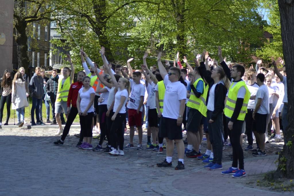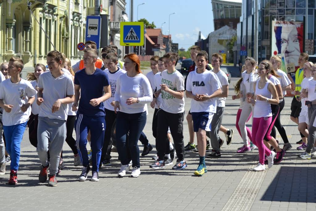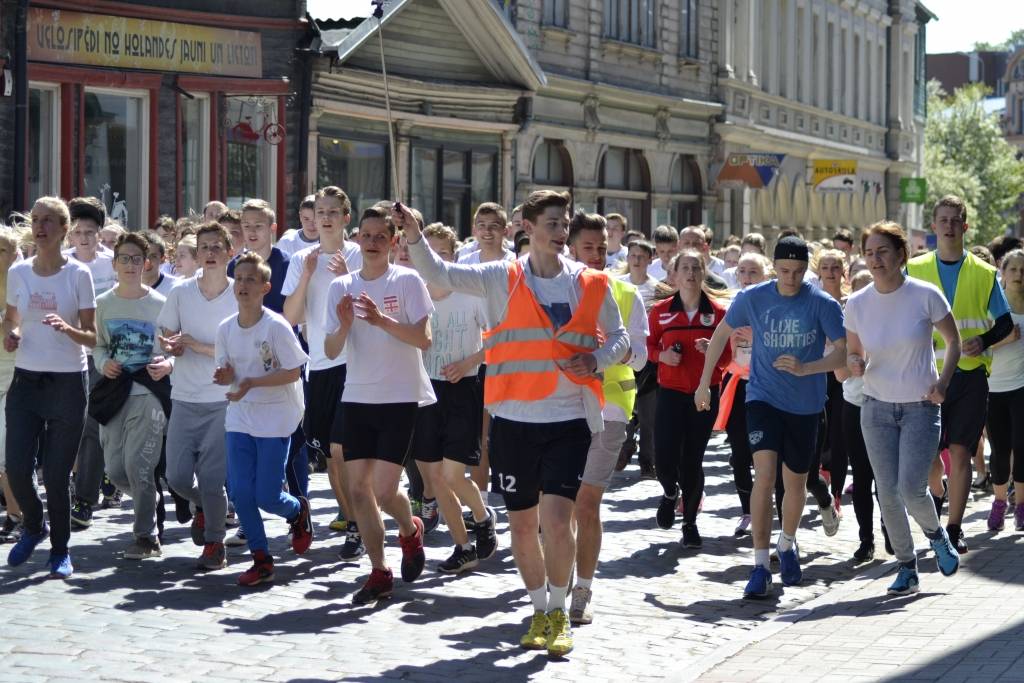Liepājas Valsts 1.ģimnāzijas skolēni, vecāki, skolotāji un absolventi piektdien devās tradicionālajā Vienotības skrējienā.
