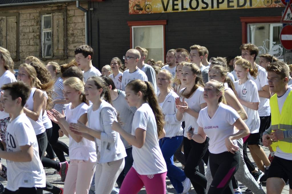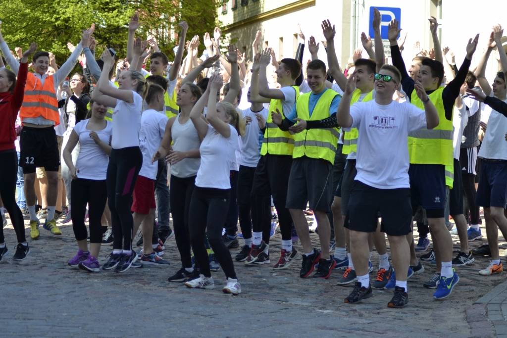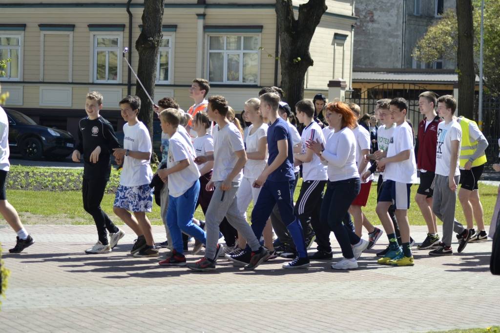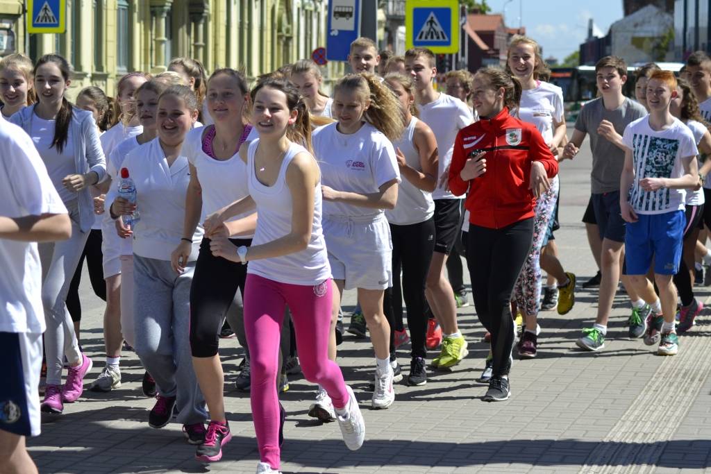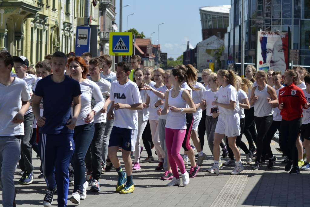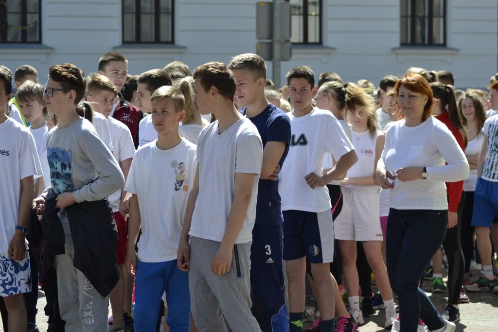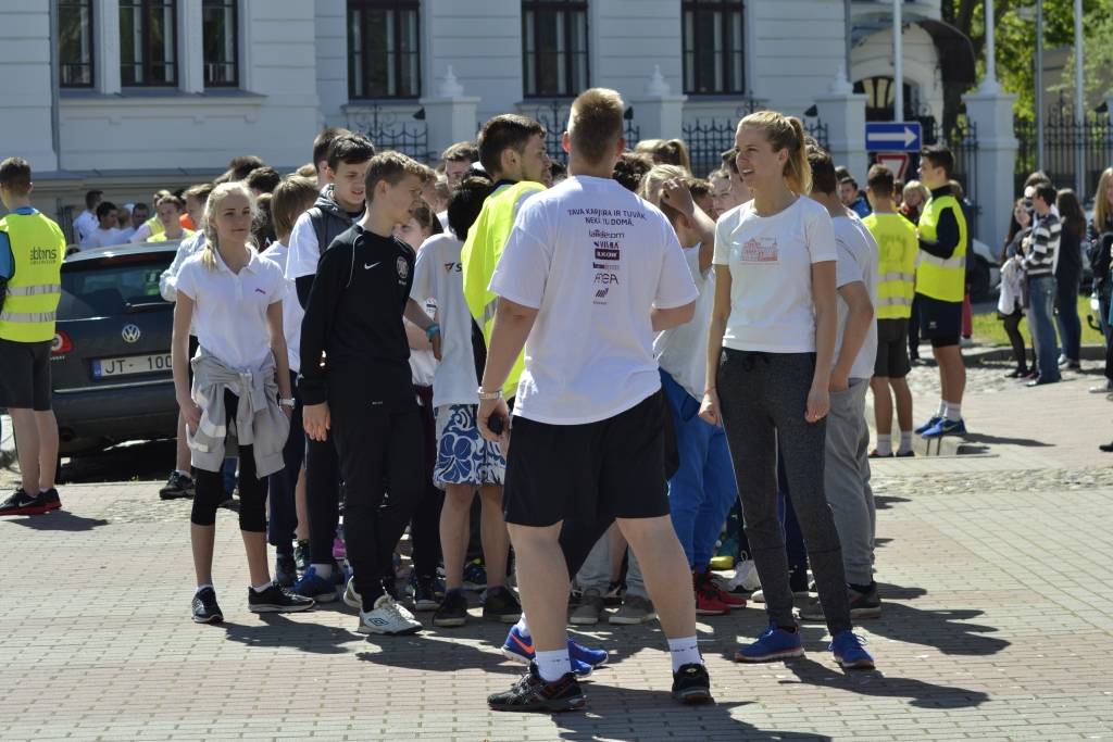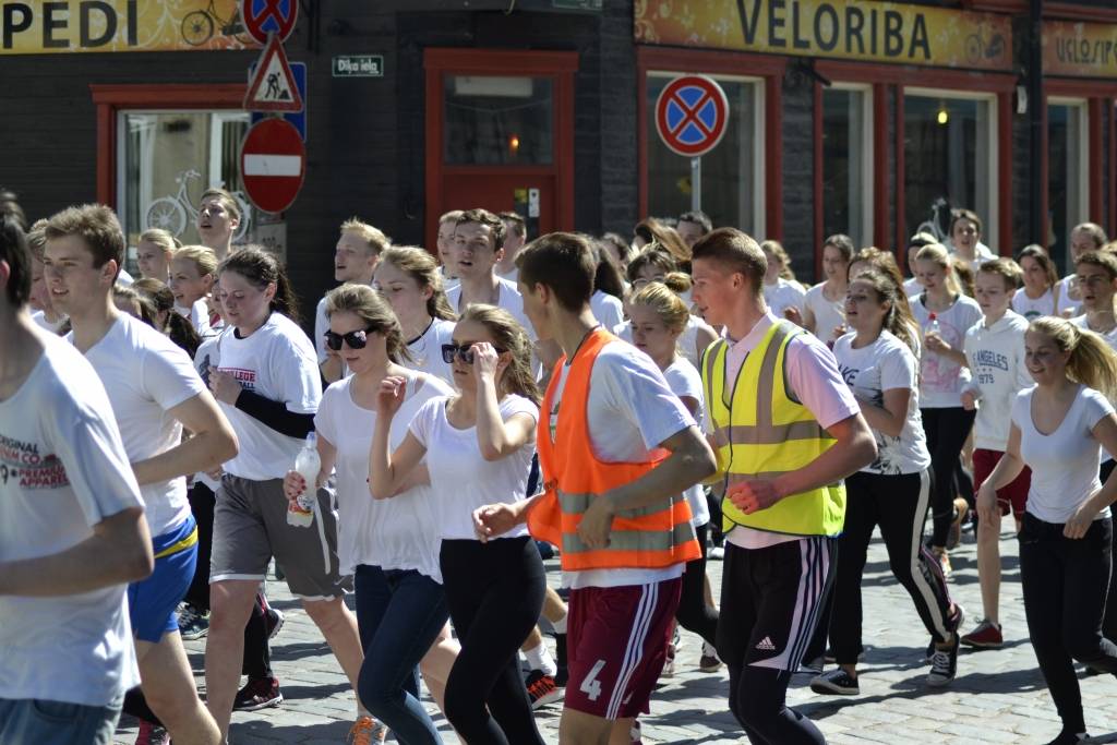 Liepājas Valsts 1.ģimnāzijas skolēni, vecāki, skolotāji un absolventi piektdien devās tradicionālajā Vienotības skrējienā.