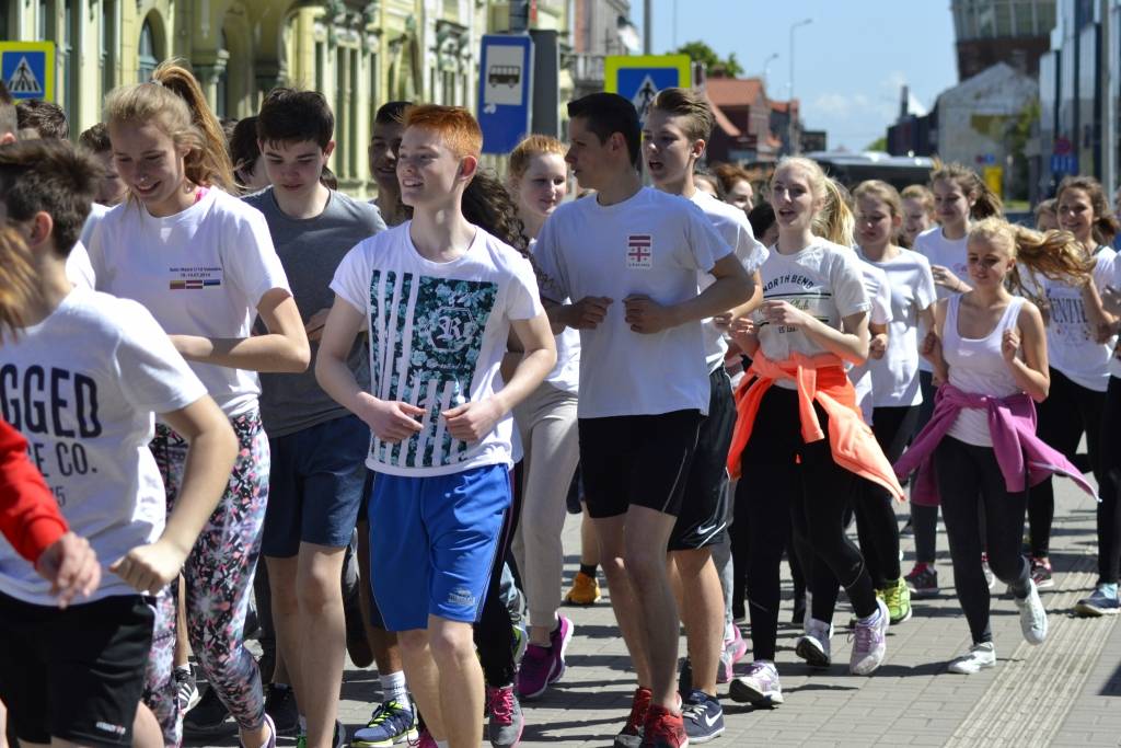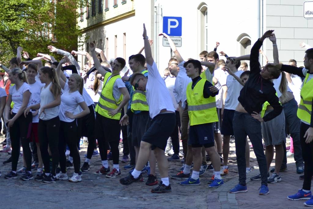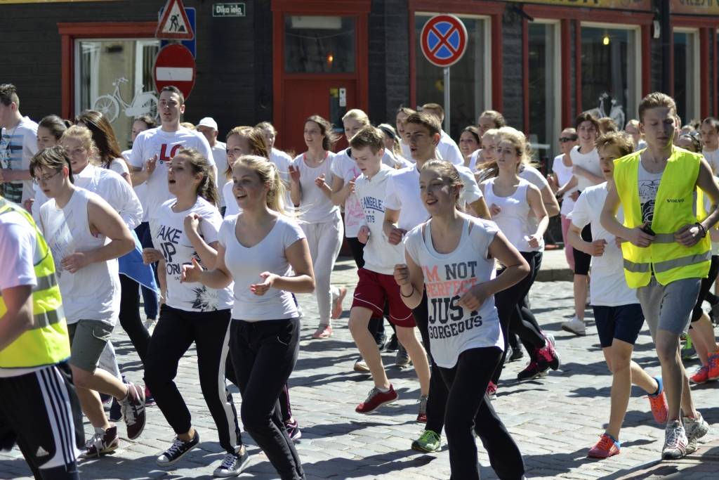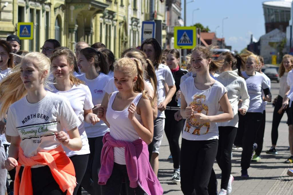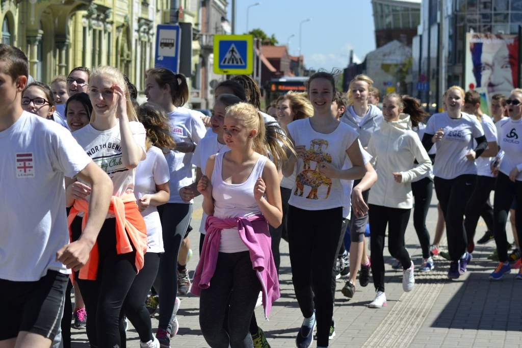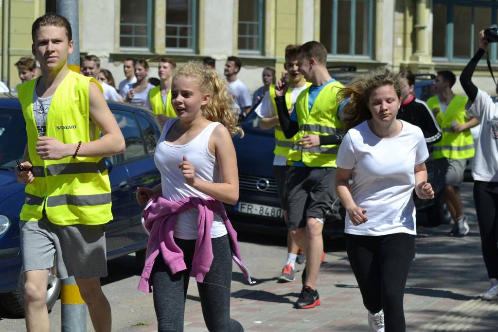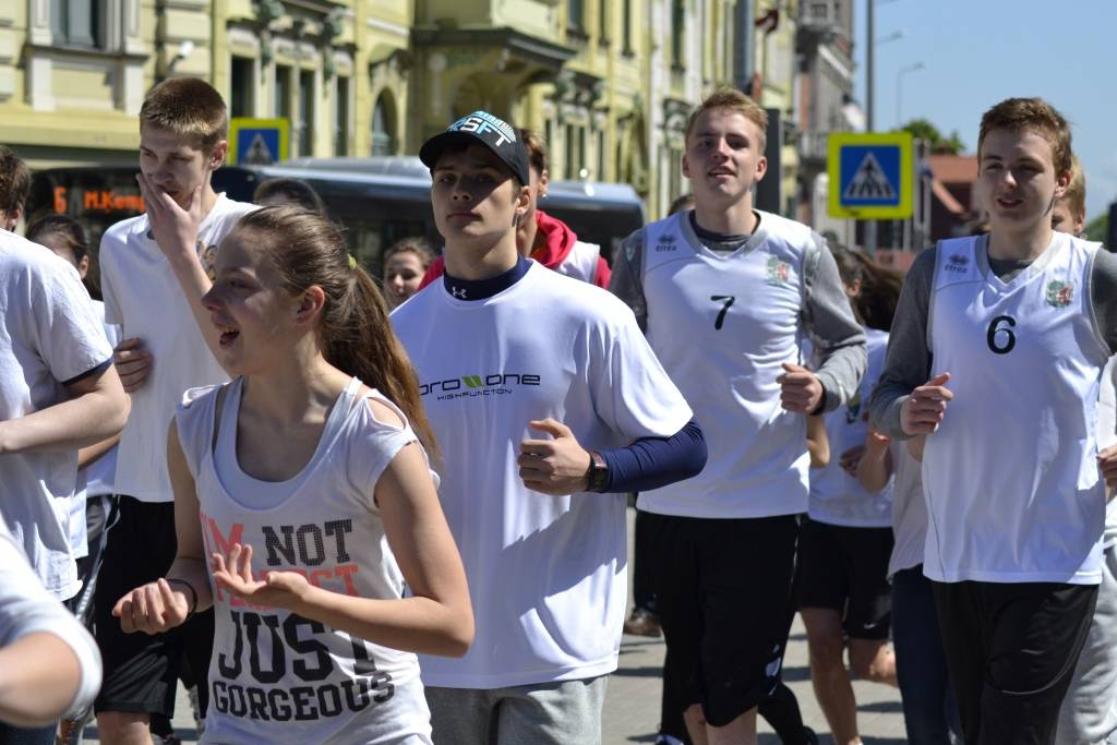 Liepājas Valsts 1.ģimnāzijas skolēni, vecāki, skolotāji un absolventi piektdien devās tradicionālajā Vienotības skrējienā.