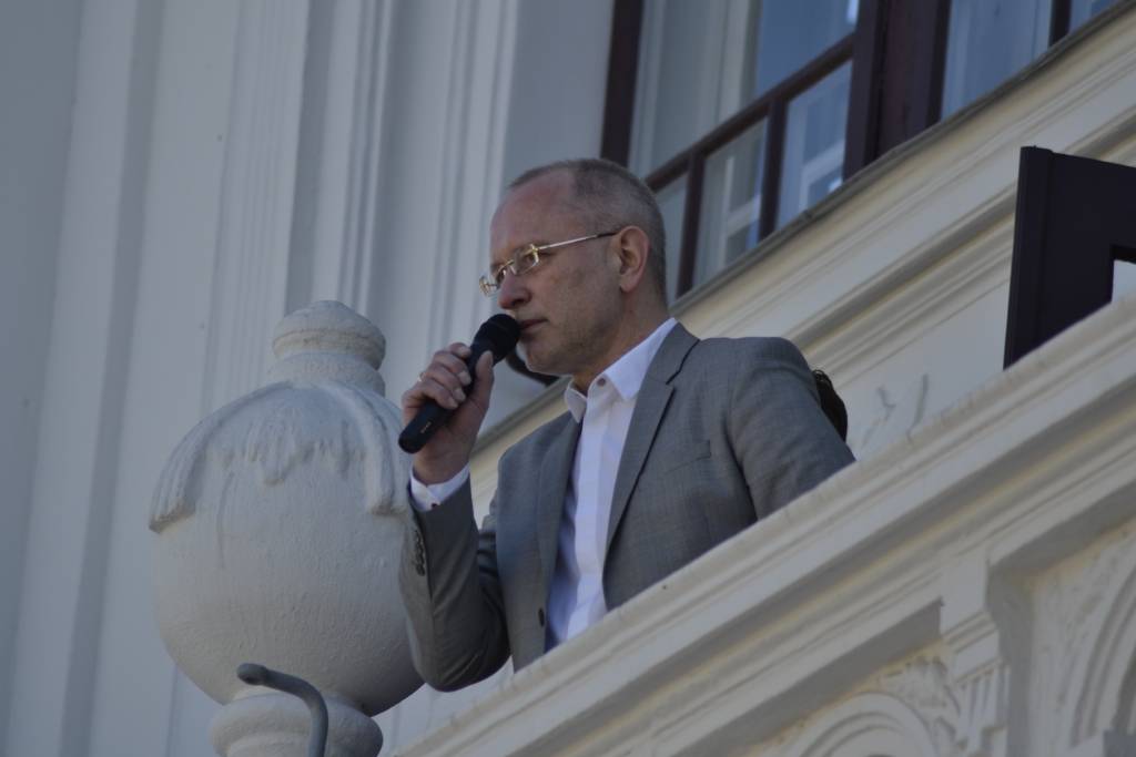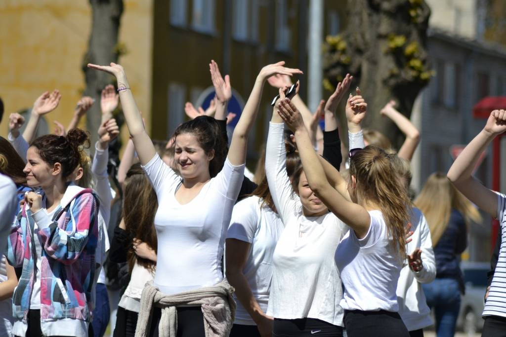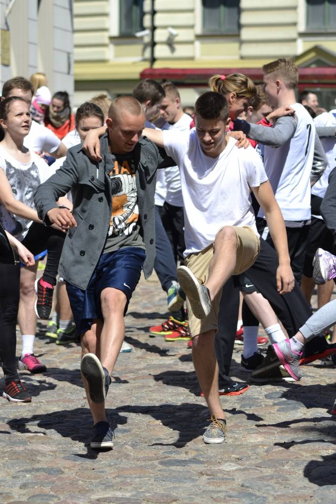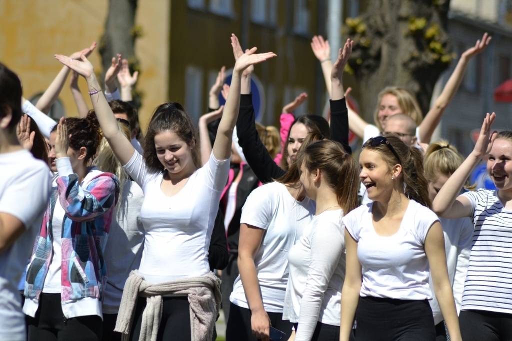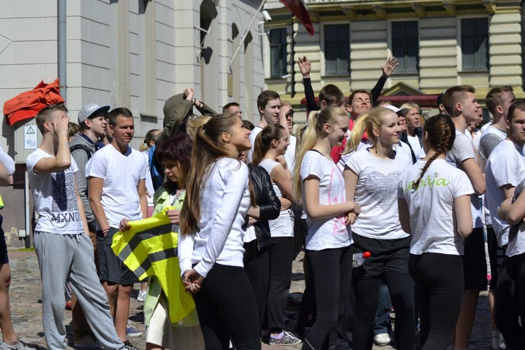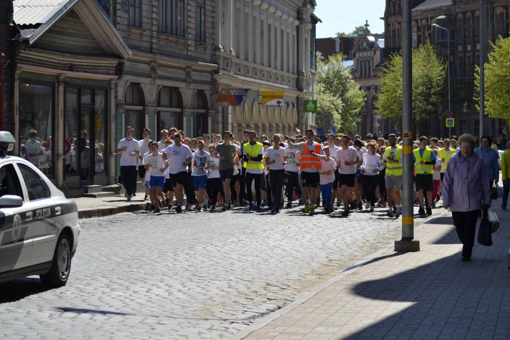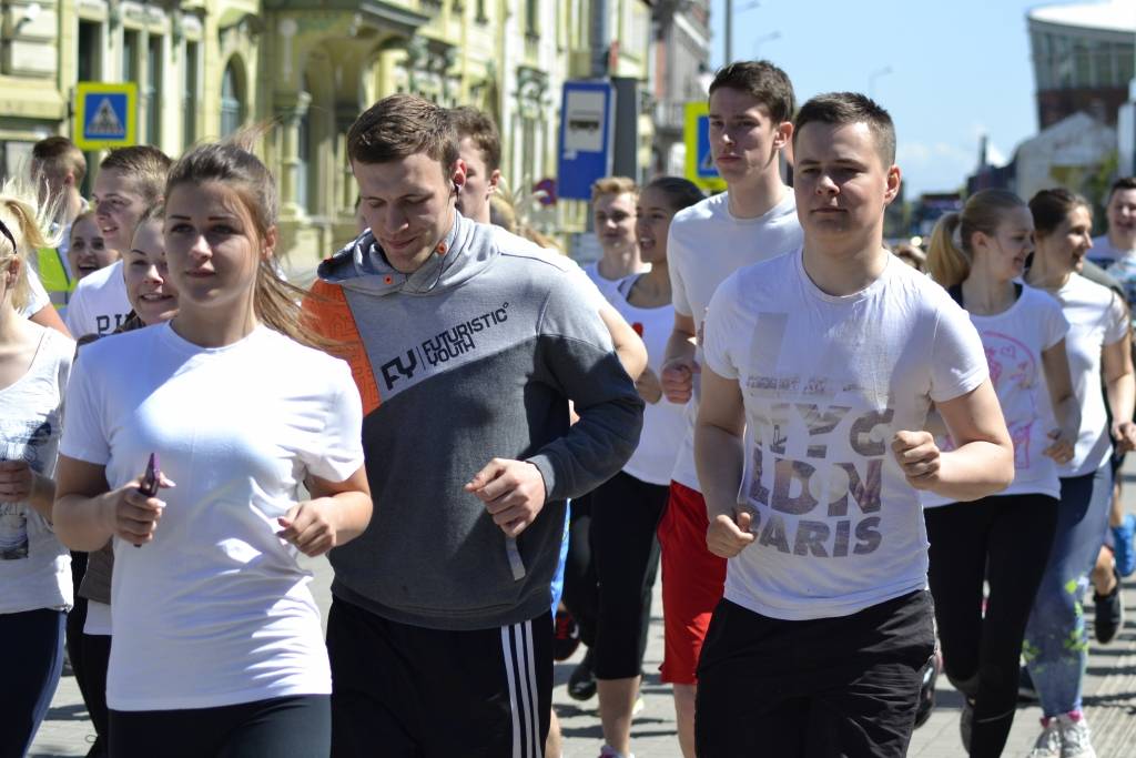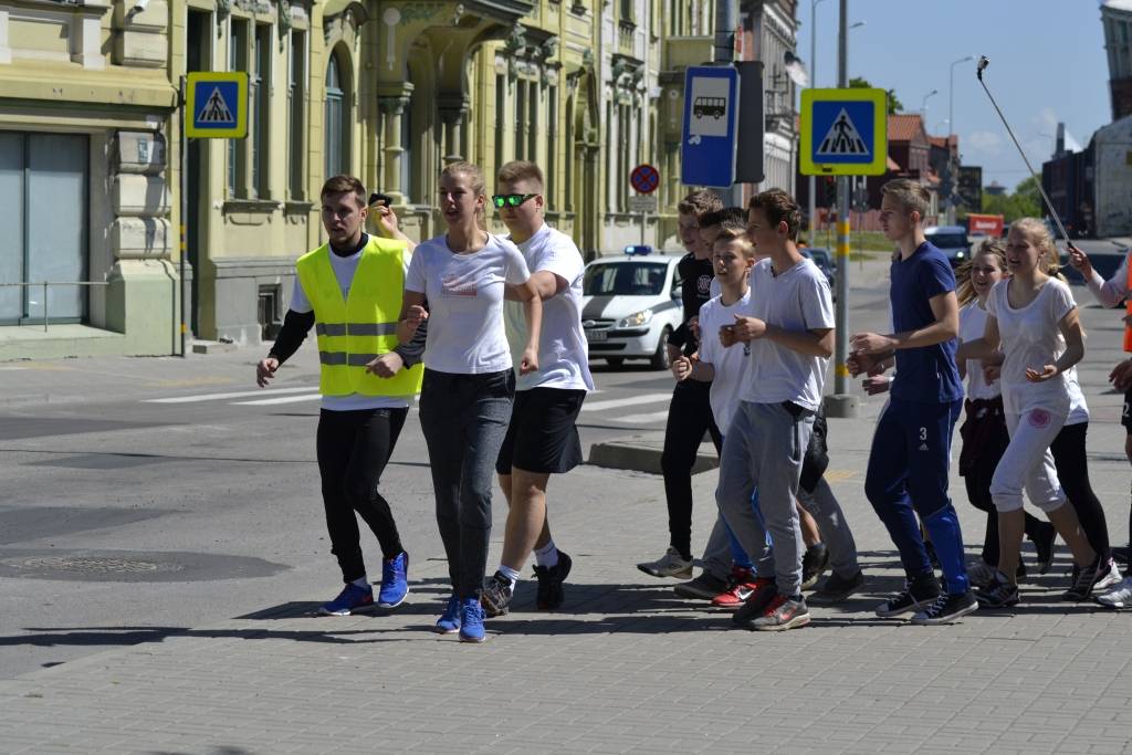 Liepājas Valsts 1.ģimnāzijas skolēni, vecāki, skolotāji un absolventi piektdien devās tradicionālajā Vienotības skrējienā.