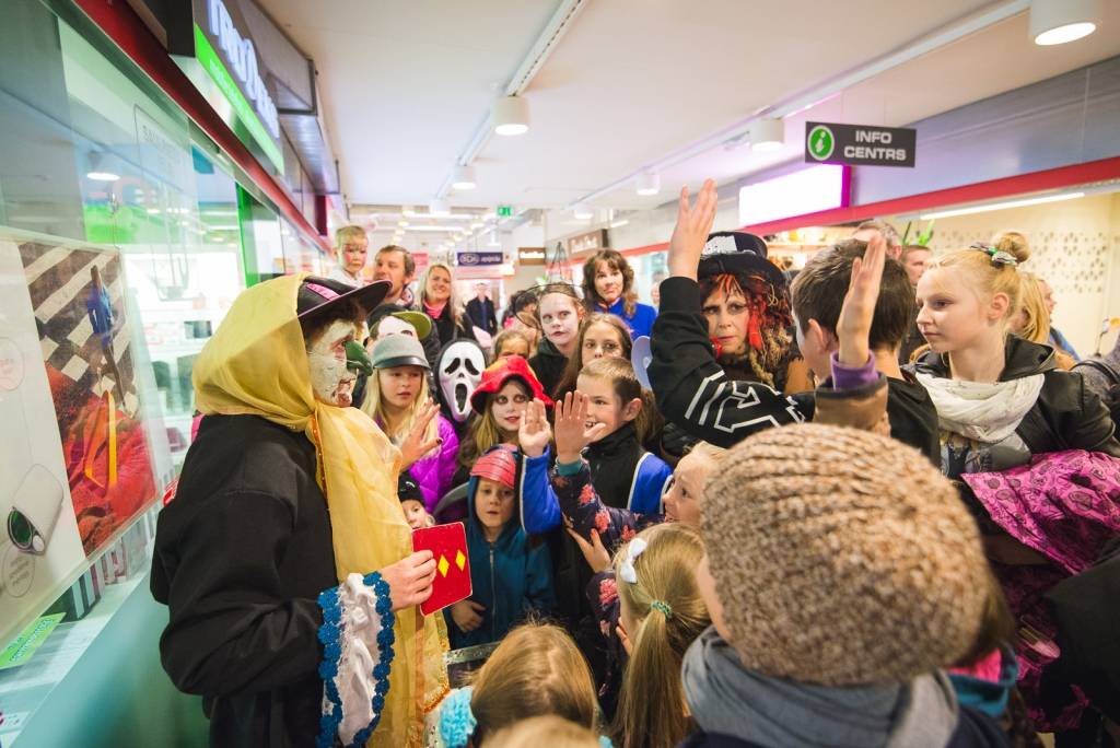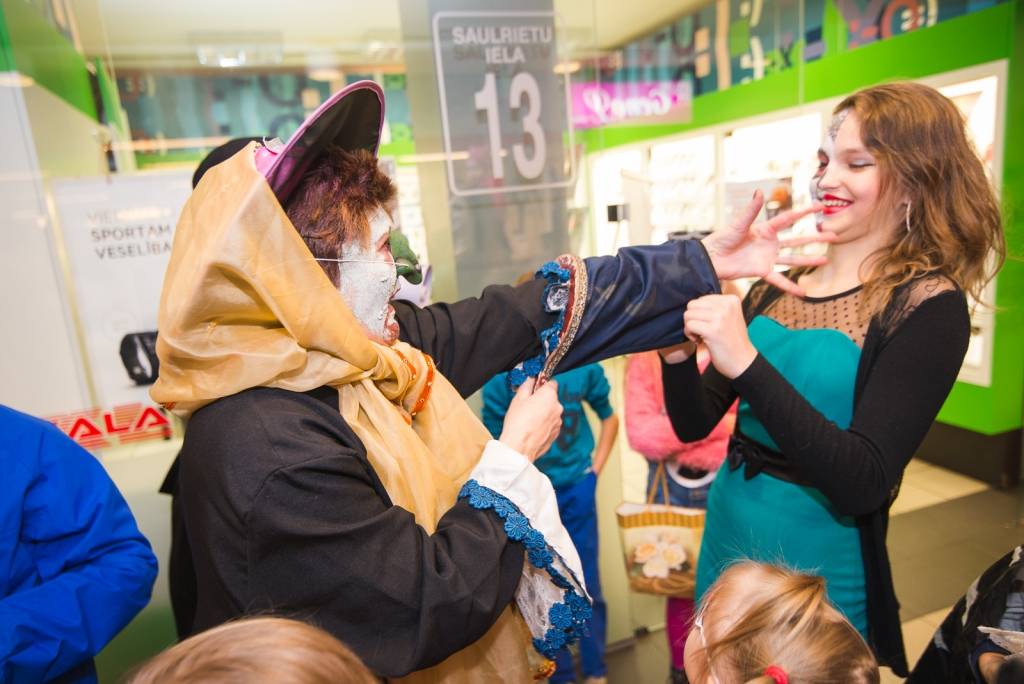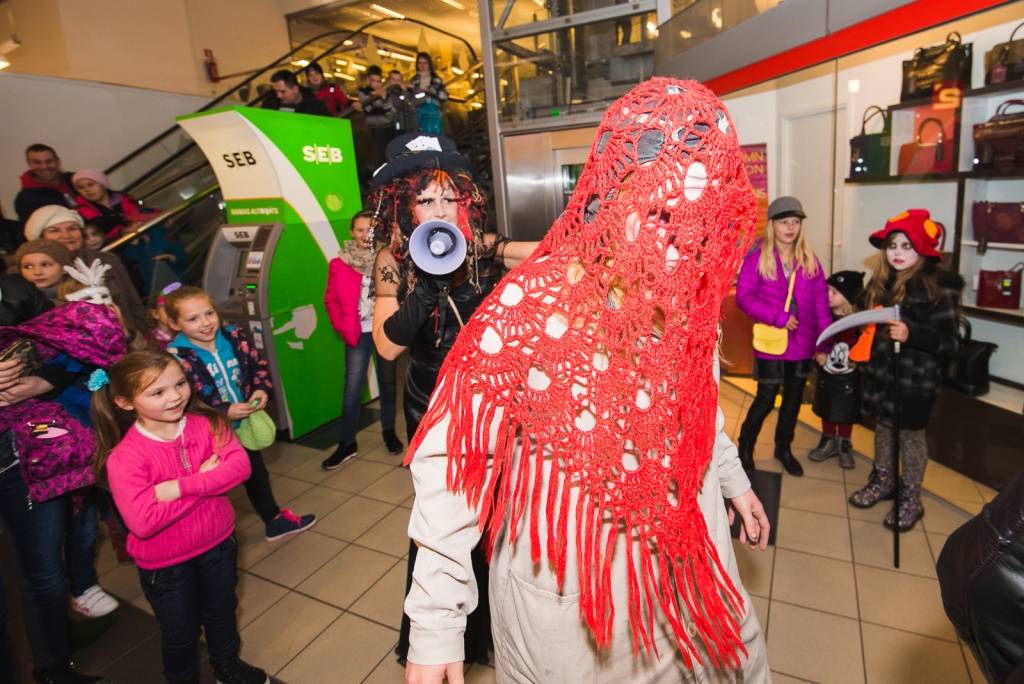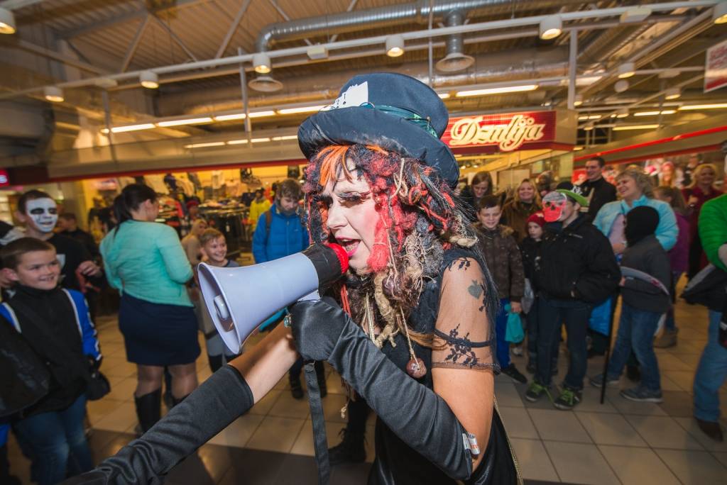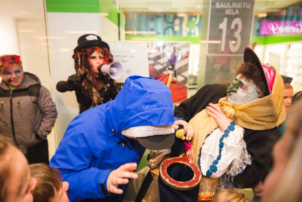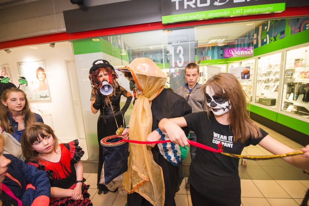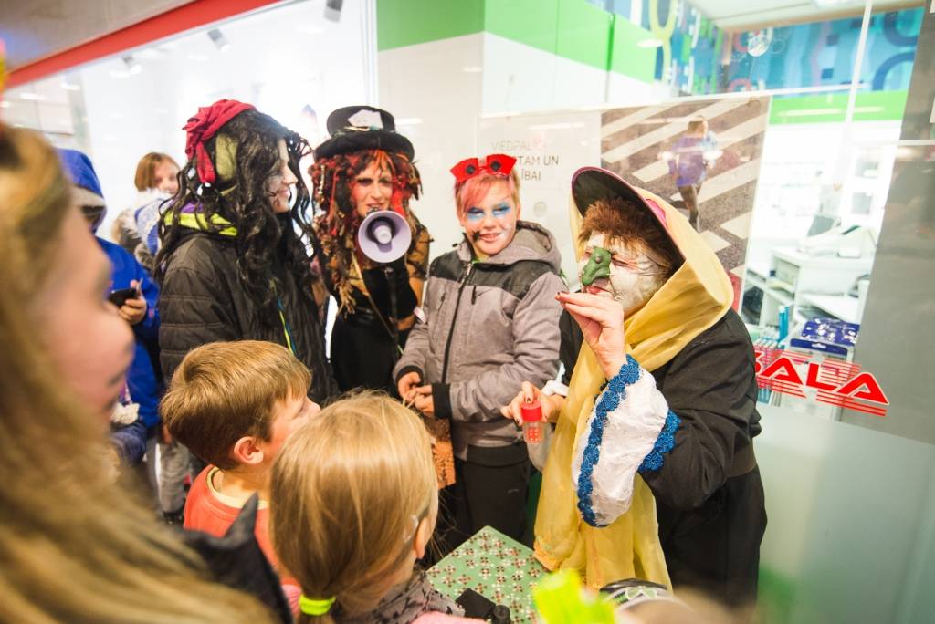 Tāpat tirdzniecības centra „XL SALA” pircēji labprāt palīdzēja atbrīvot ieslodzītu un ievainotu jaunavu un nesteidzīgi gremdējās un dalījās nebeidzamos spoku stāstos kopā ar Vadātāju un Liepājas ceļojošo cirku „Beztemata”.