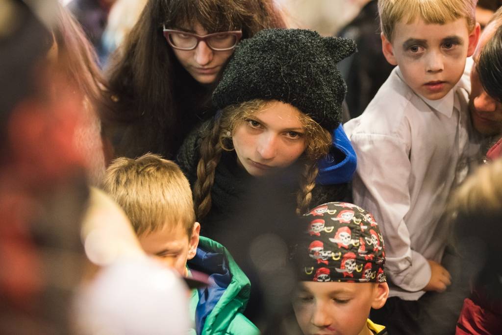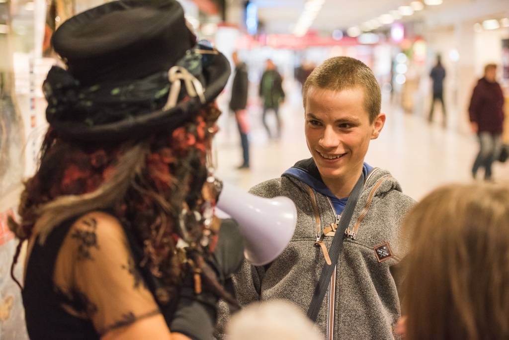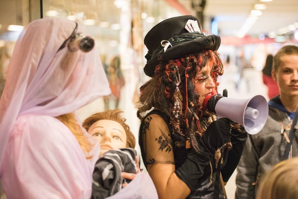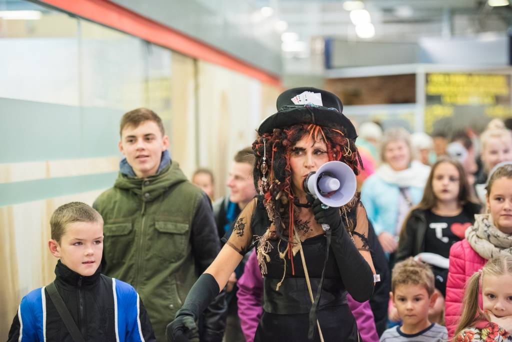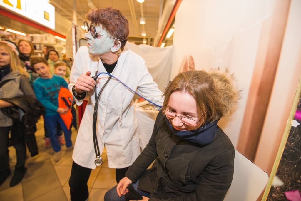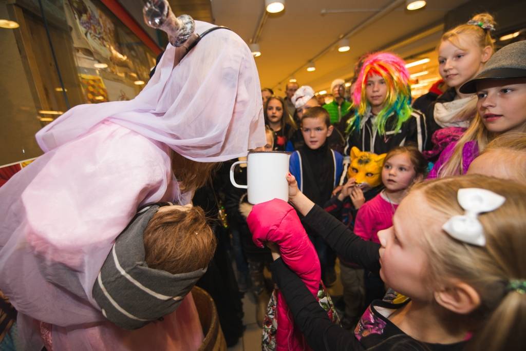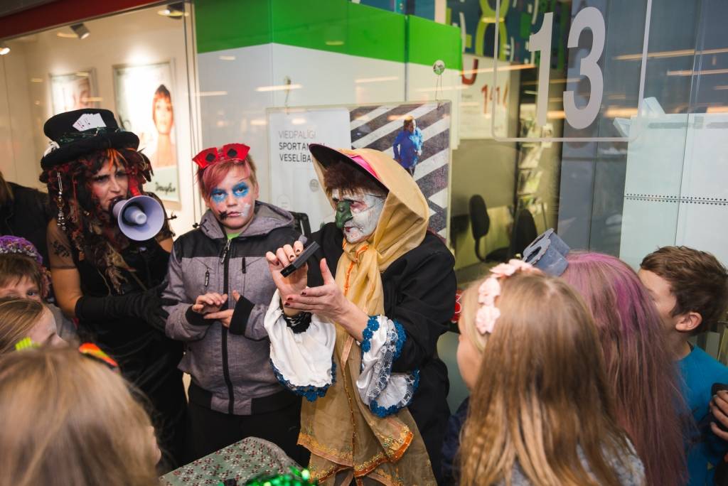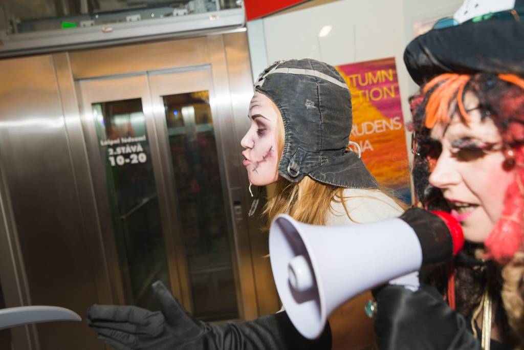 Tāpat tirdzniecības centra „XL SALA” pircēji labprāt palīdzēja atbrīvot ieslodzītu un ievainotu jaunavu un nesteidzīgi gremdējās un dalījās nebeidzamos spoku stāstos kopā ar Vadātāju un Liepājas ceļojošo cirku „Beztemata”.