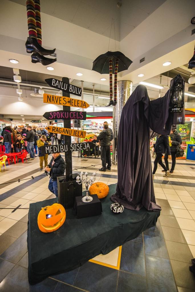 Liepājas tirdzniecības centrā „XL Sala” sestdien, 31. oktobrī, bija nolaidušies dažādi mošķi, raganas, staigājoši skeleti, vampīri un citi monstri, kas vienkopus pulcējās Helovīndienas pasākumā „Visu zemo cenu nakts”, ko organizēja pasākumu aģentūra „Lemon Pepper Events”. Īpašu Visu svēto dienas priekšvakara noskaņu piešķīra tirdzniecības centra apmeklētāji, kas uz svētkiem bija ieradušies tērpti visdažādākajās maskās, informē pasākumu aģentūras “Lemon Pepper Events” vadītāja Laura Škuberte-Sudmale.