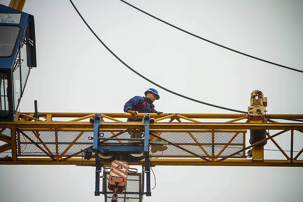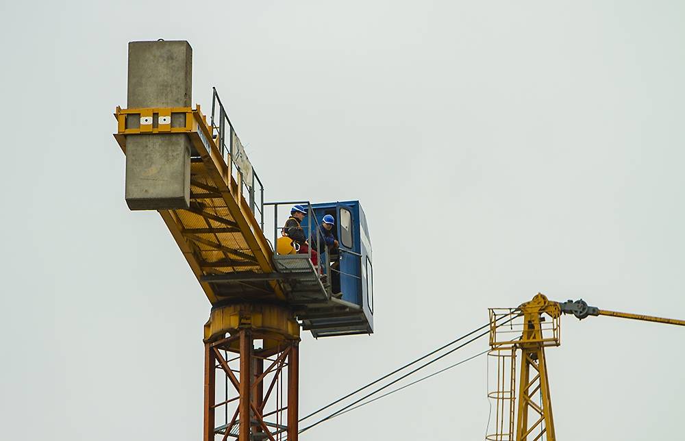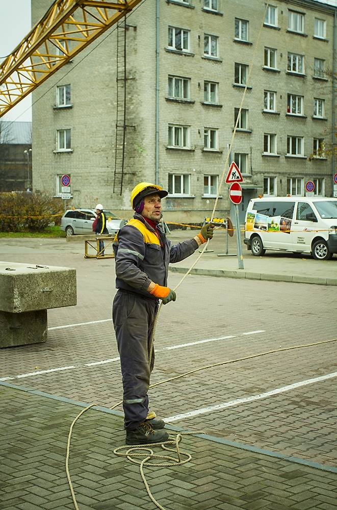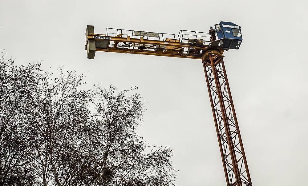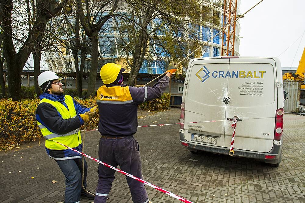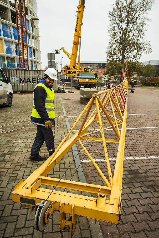 FOTO: "Lielā dzintara" būvlaukumā demontē pirmo ceļamkrānu