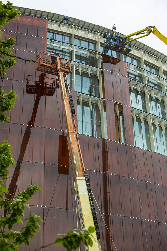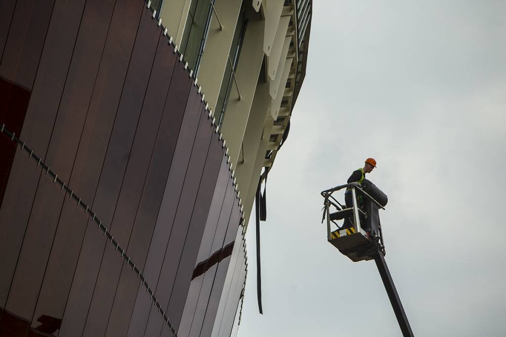 Liepājā noslēguma fāzē iegājuši koncertzāles “Lielais dzintars” iestiklošanas darbi. Piedāvājam fotoieskatu!